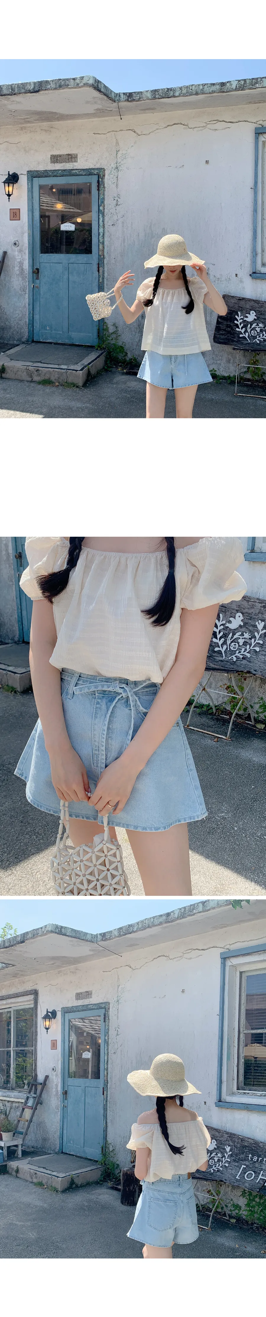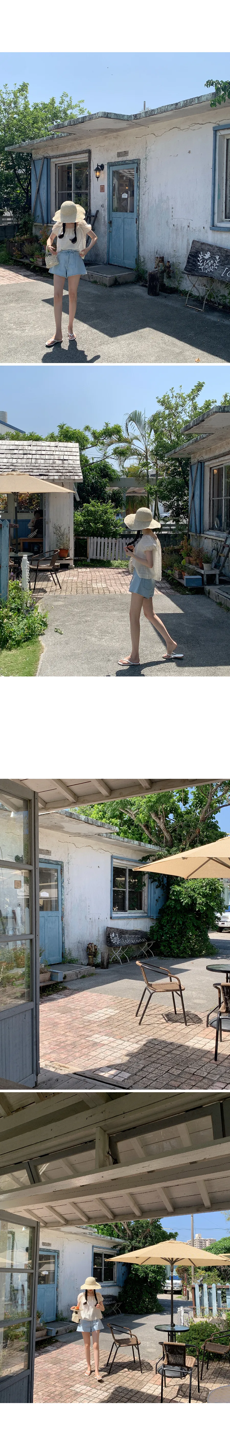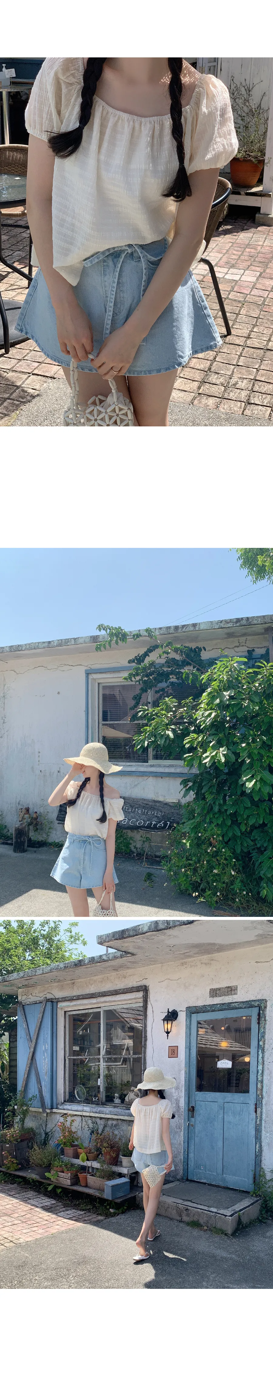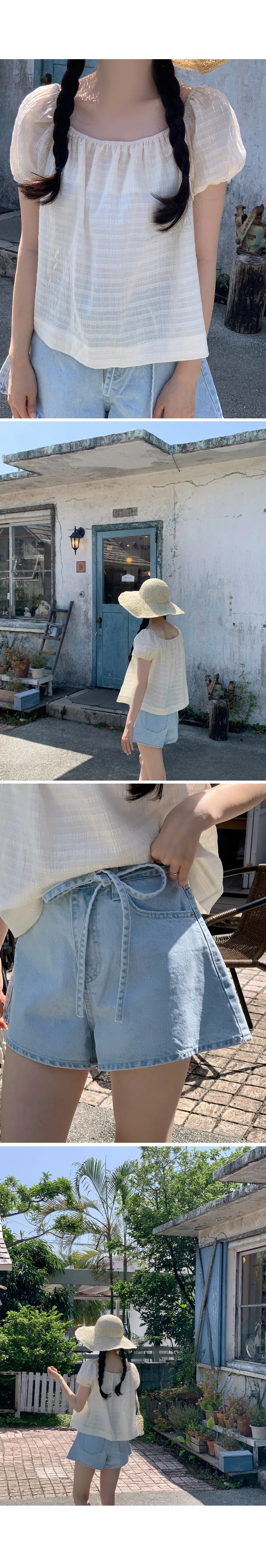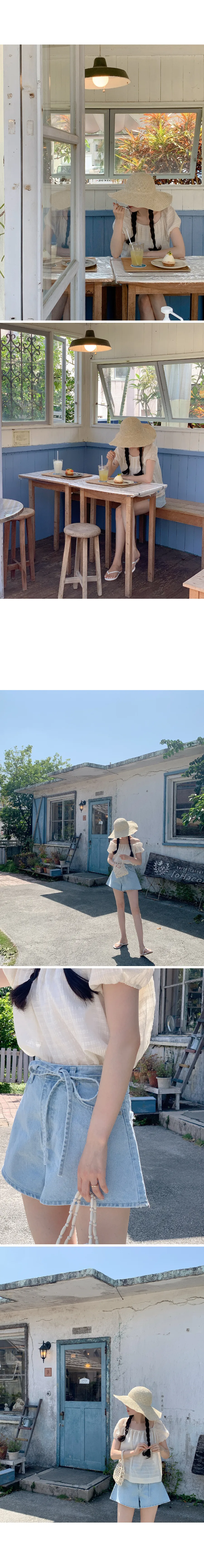 獨特情調腰綁帶寬A字線條修身牛仔短褲