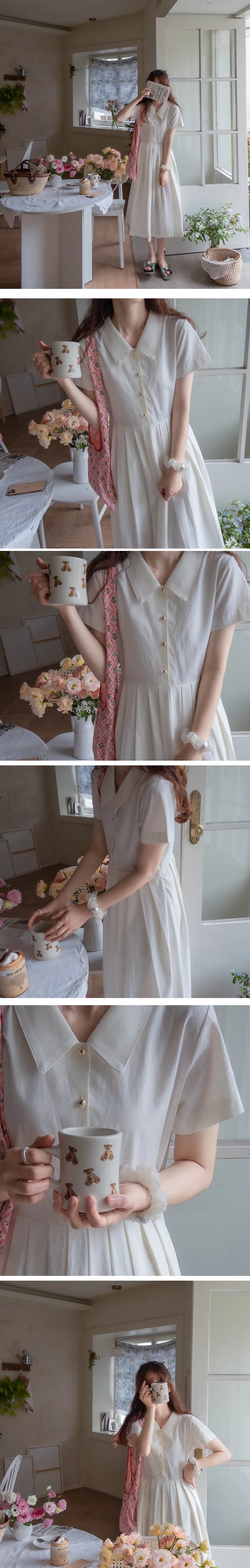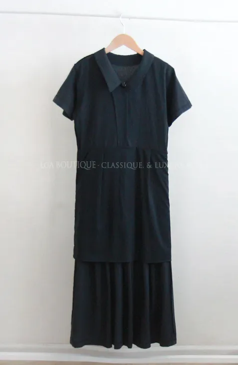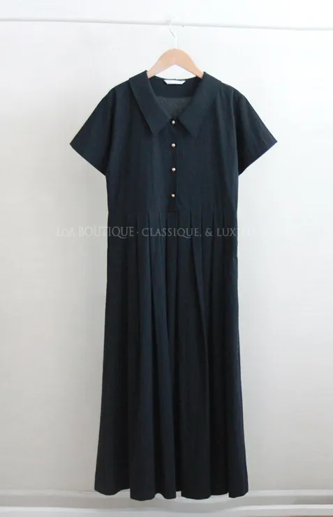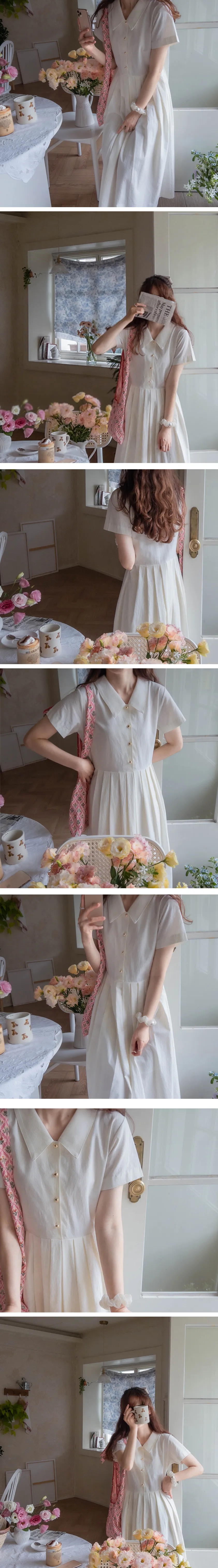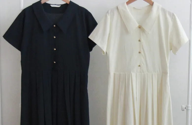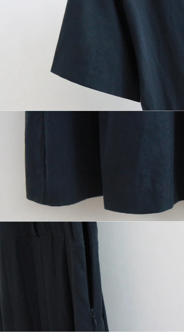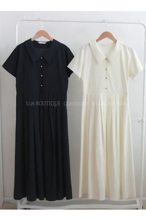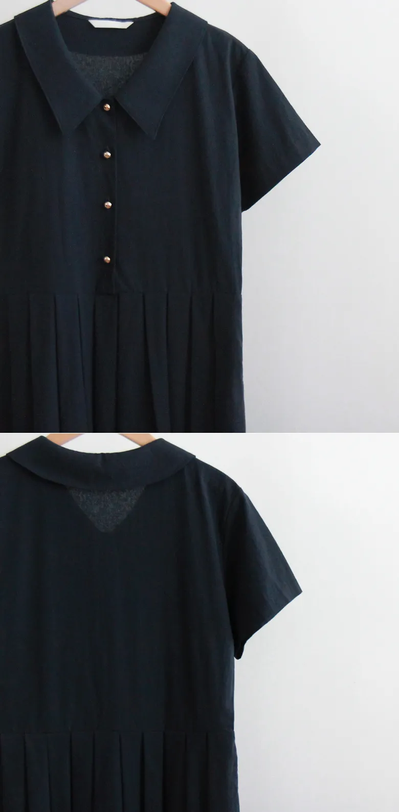 [僅限裙子襯裡:聚酯纖維] [可使用鈕扣閉合] [側拉鍊配置] [一體式金色鈕扣和褶皺,時尚合身] [獨特設計,優雅領子]