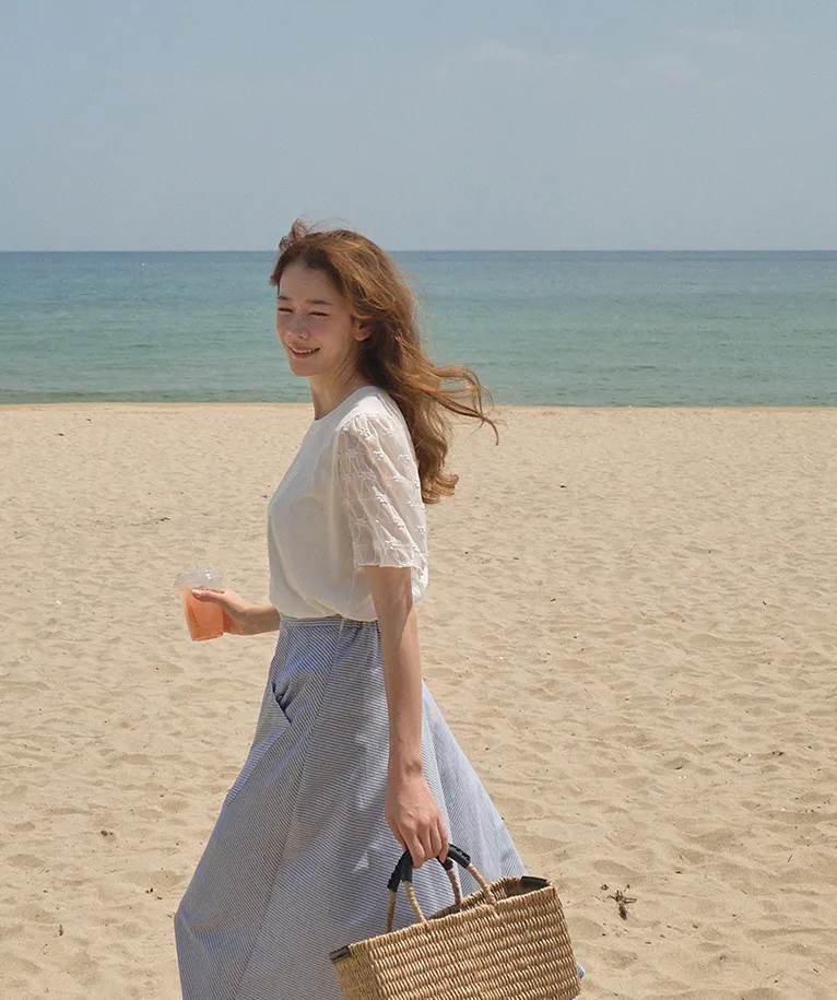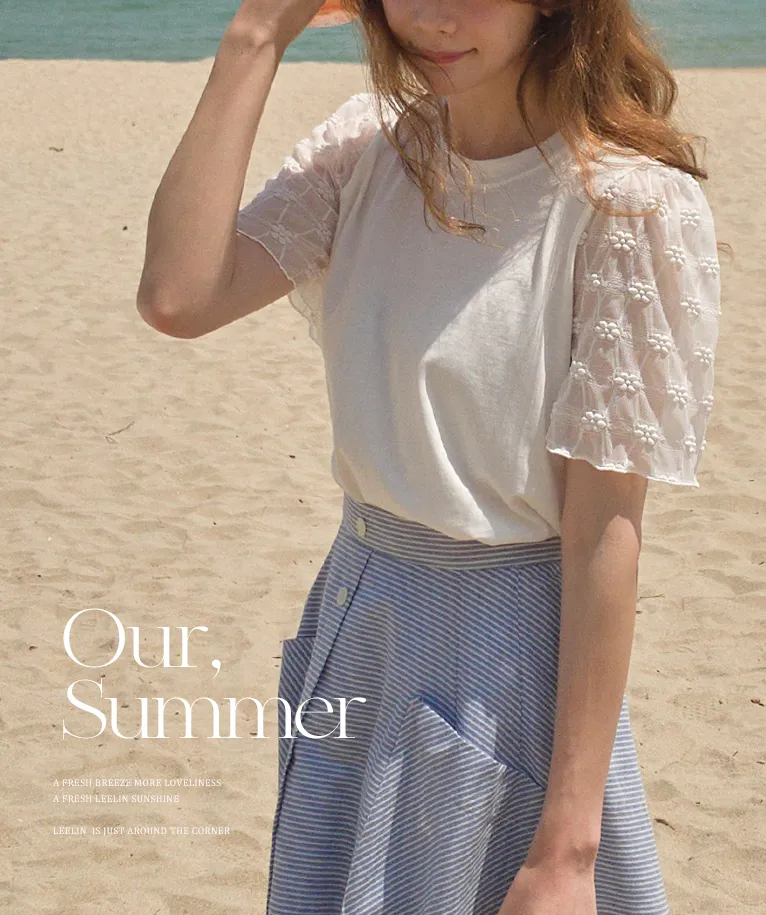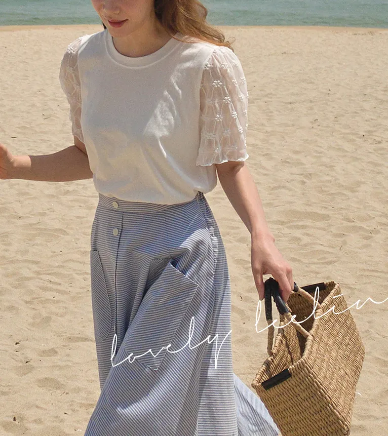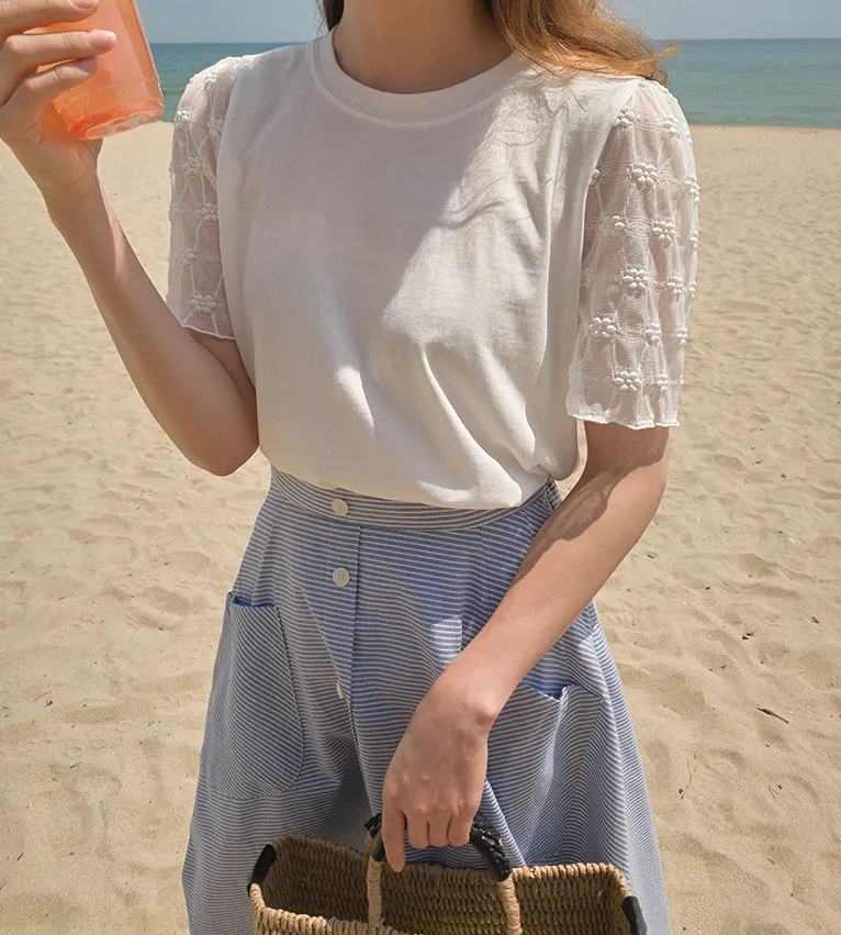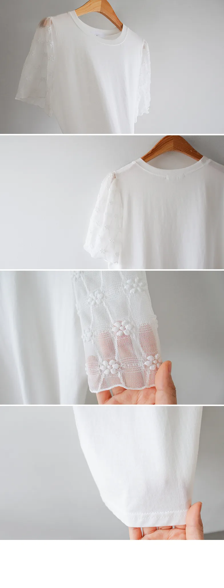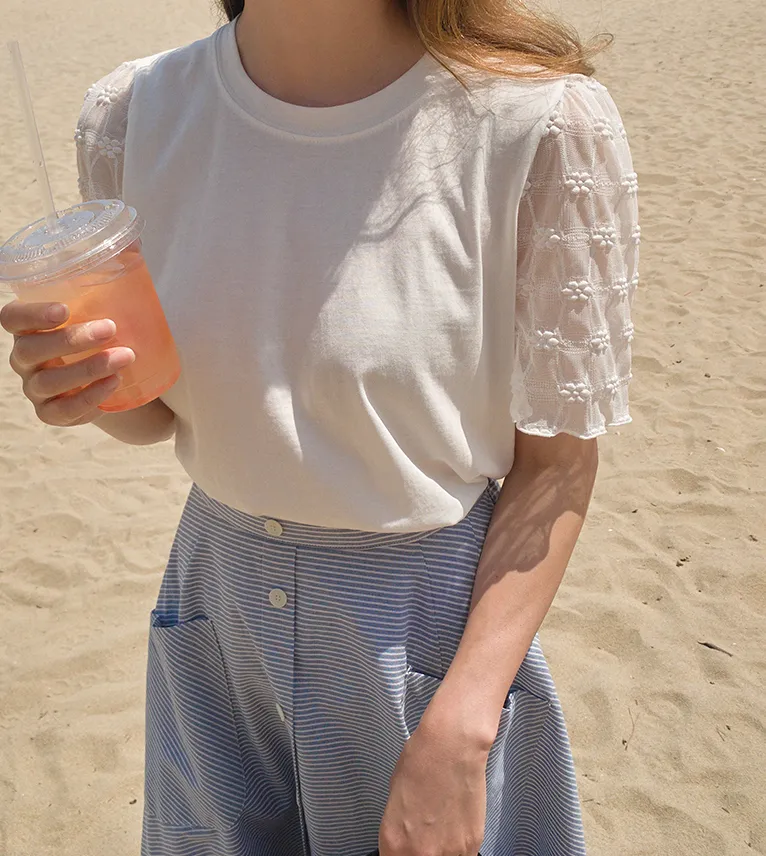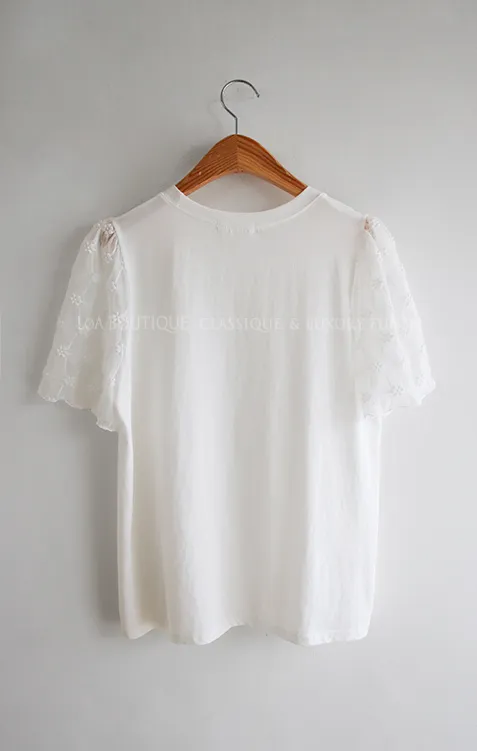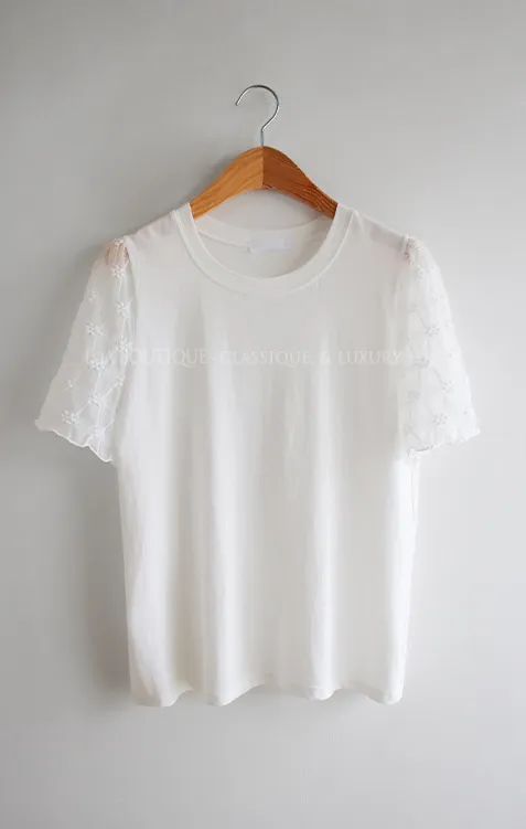 柔美立體刺繡花朵蕾絲袖柔軟上衣