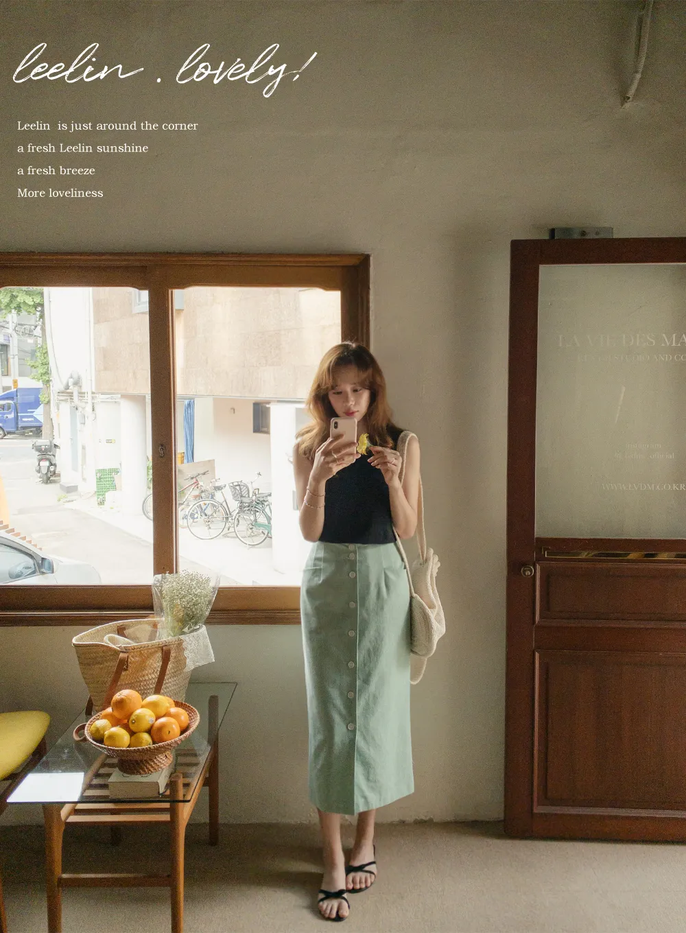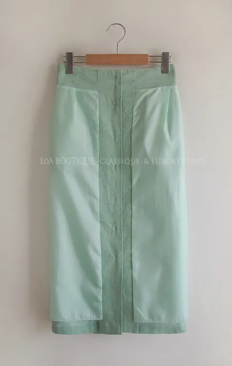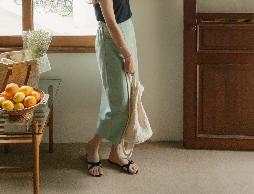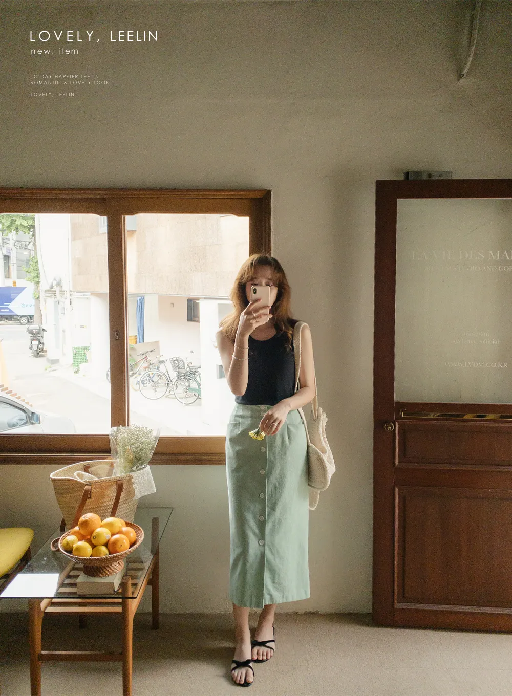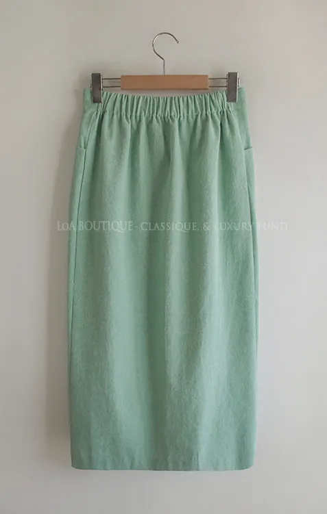 柔和色彩感精緻排扣設計直筒修身中長裙 薄荷色