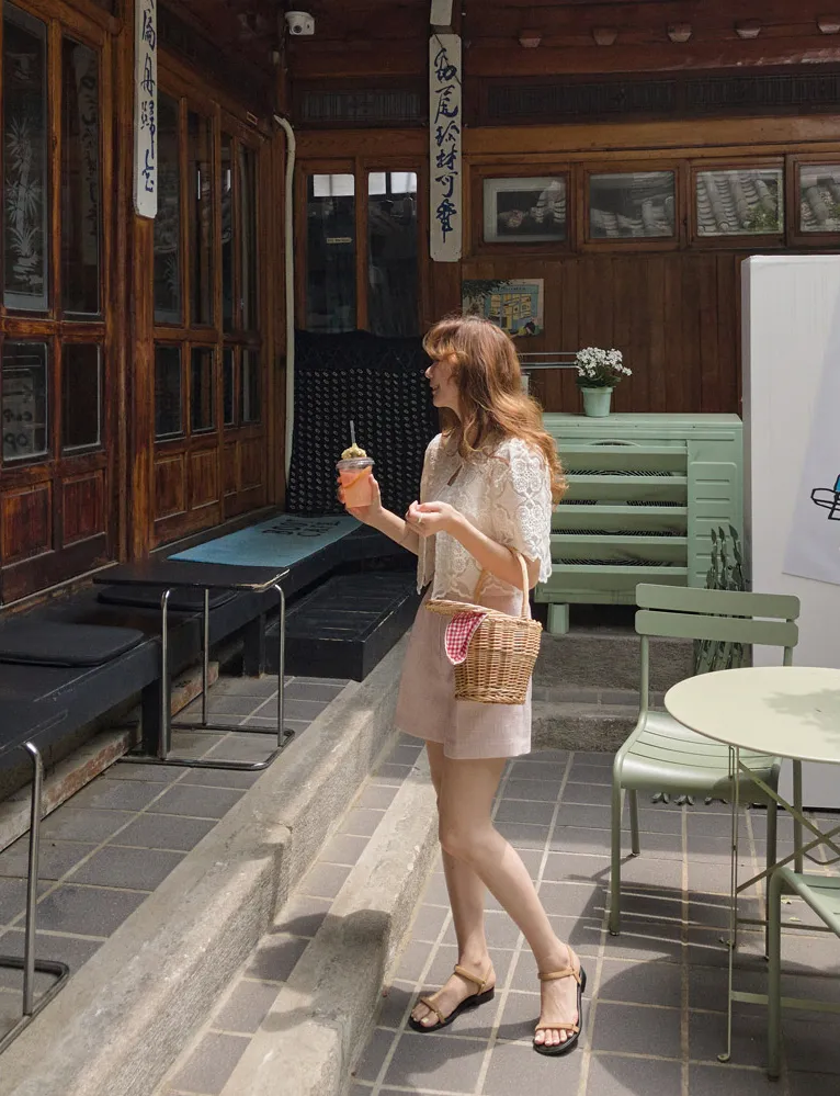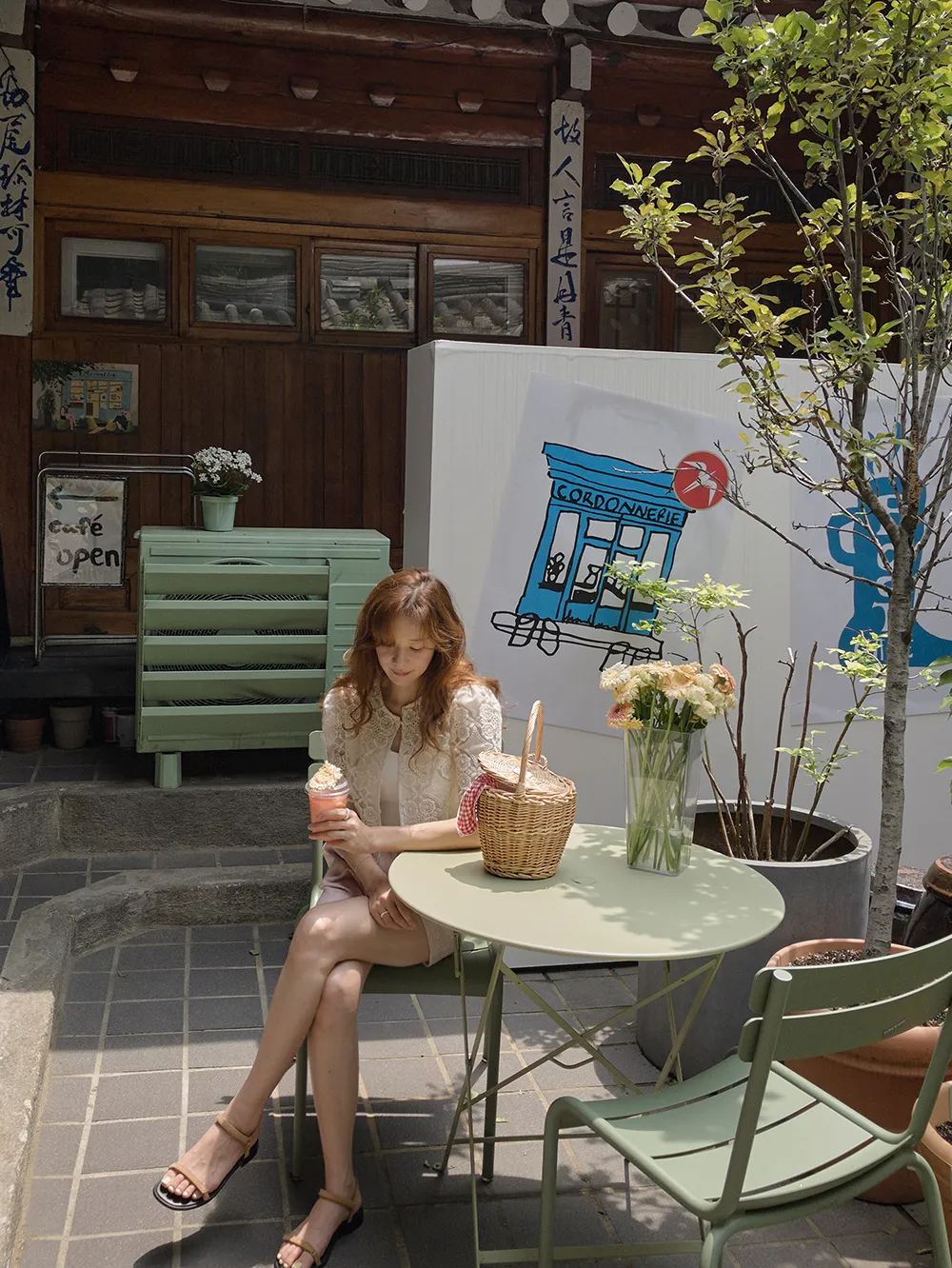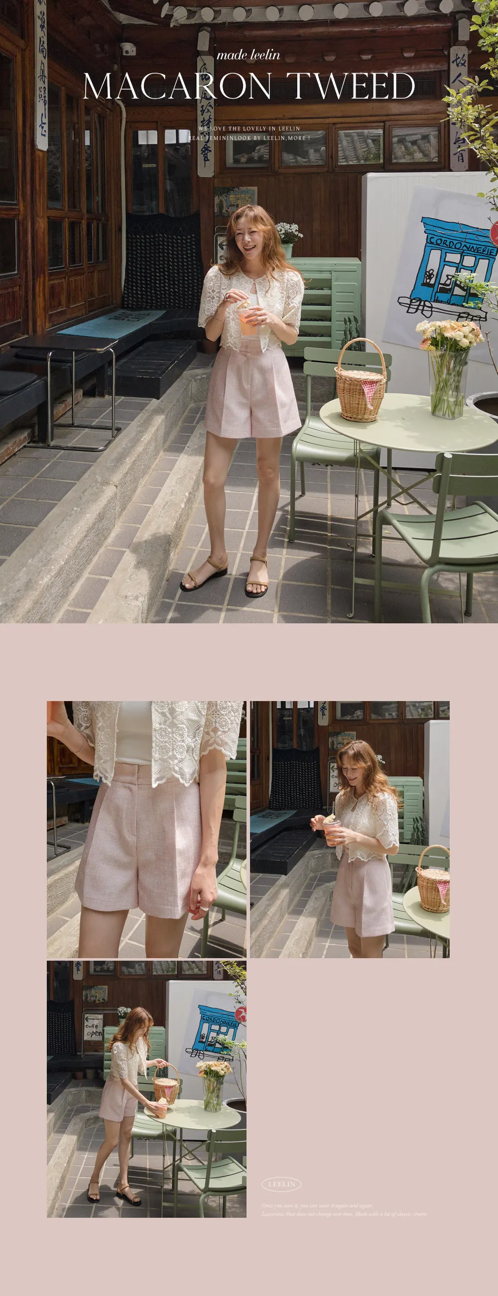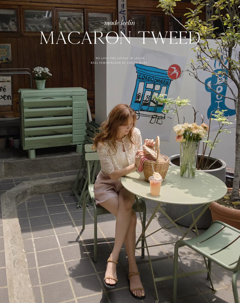 優雅蕾絲緹花刺繡波浪下擺短袖開衫