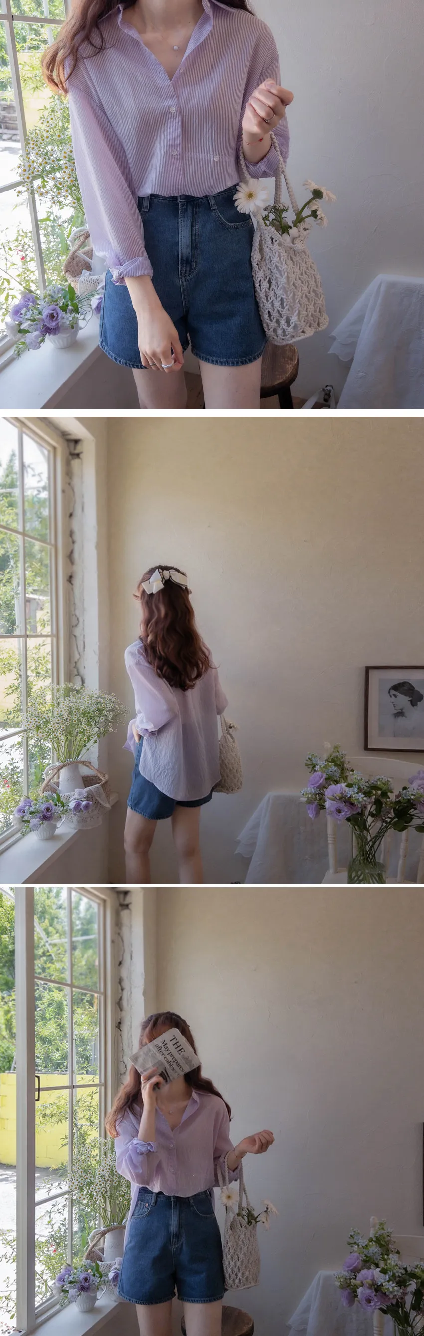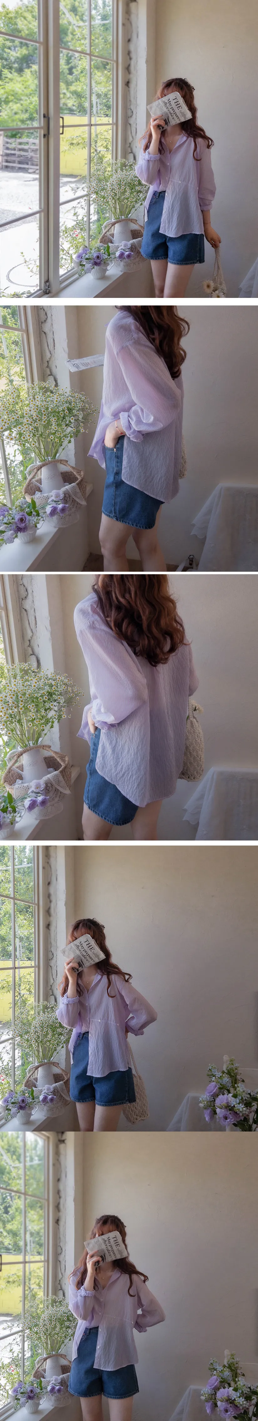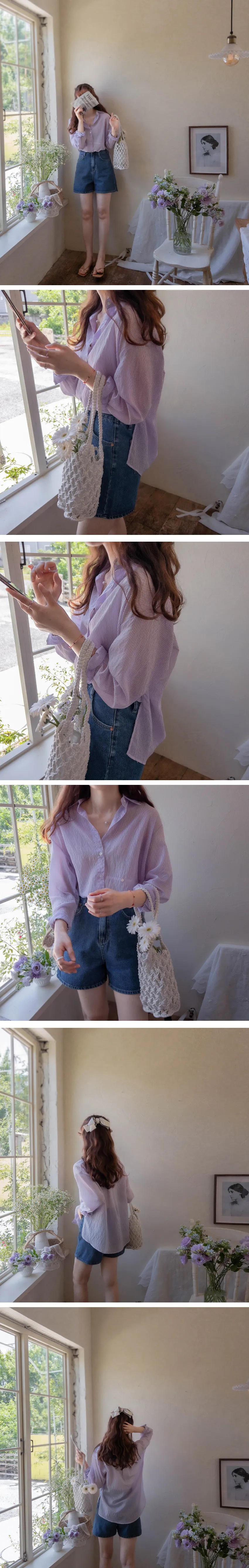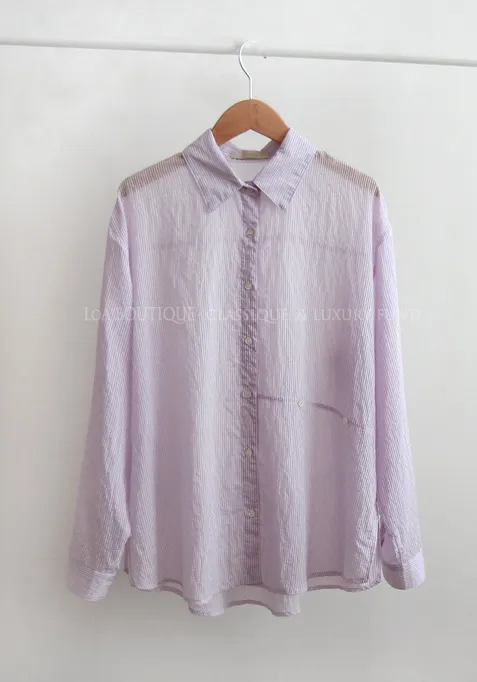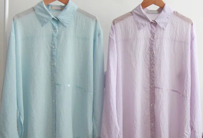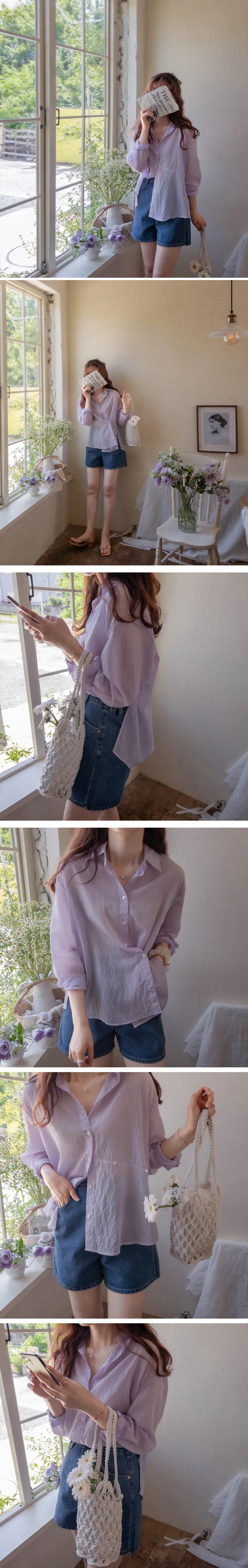 [輕薄夏季襯衫][鮮豔的條紋單品][作為夏季開衫,防曬、空調、風衣都很適合][用鈕扣移動並鎖定,你就會擁有獨特的服裝] 【作為夏天的穿搭,太棒了】