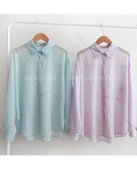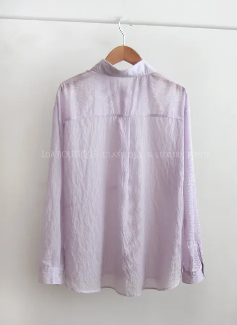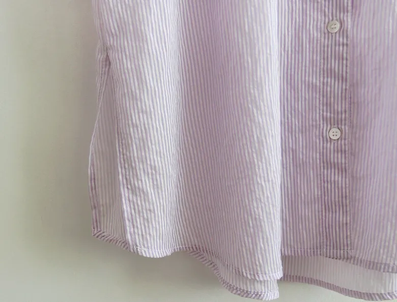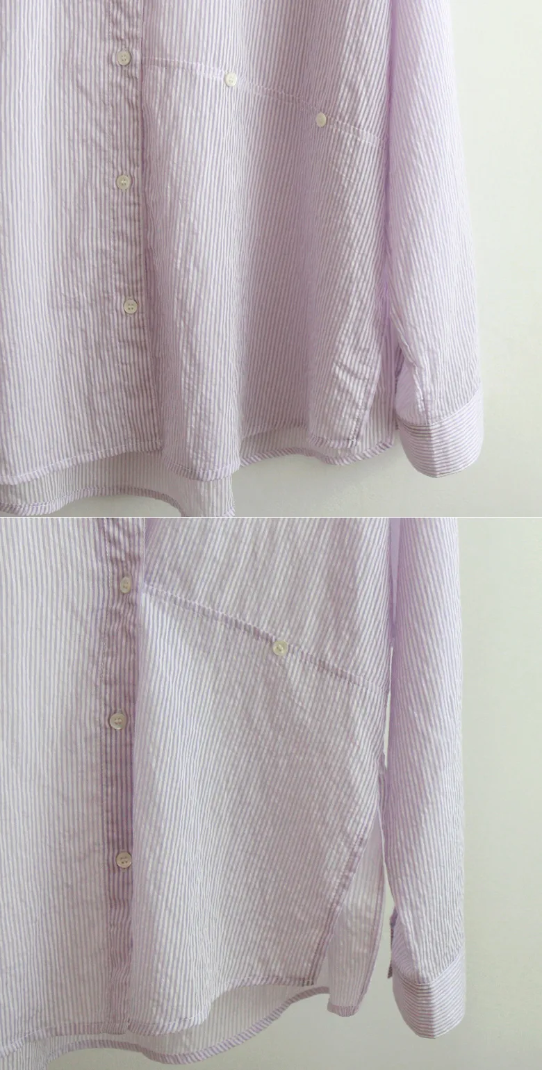 夏日輕款獨特側釦設計自然褶皺條紋襯衫