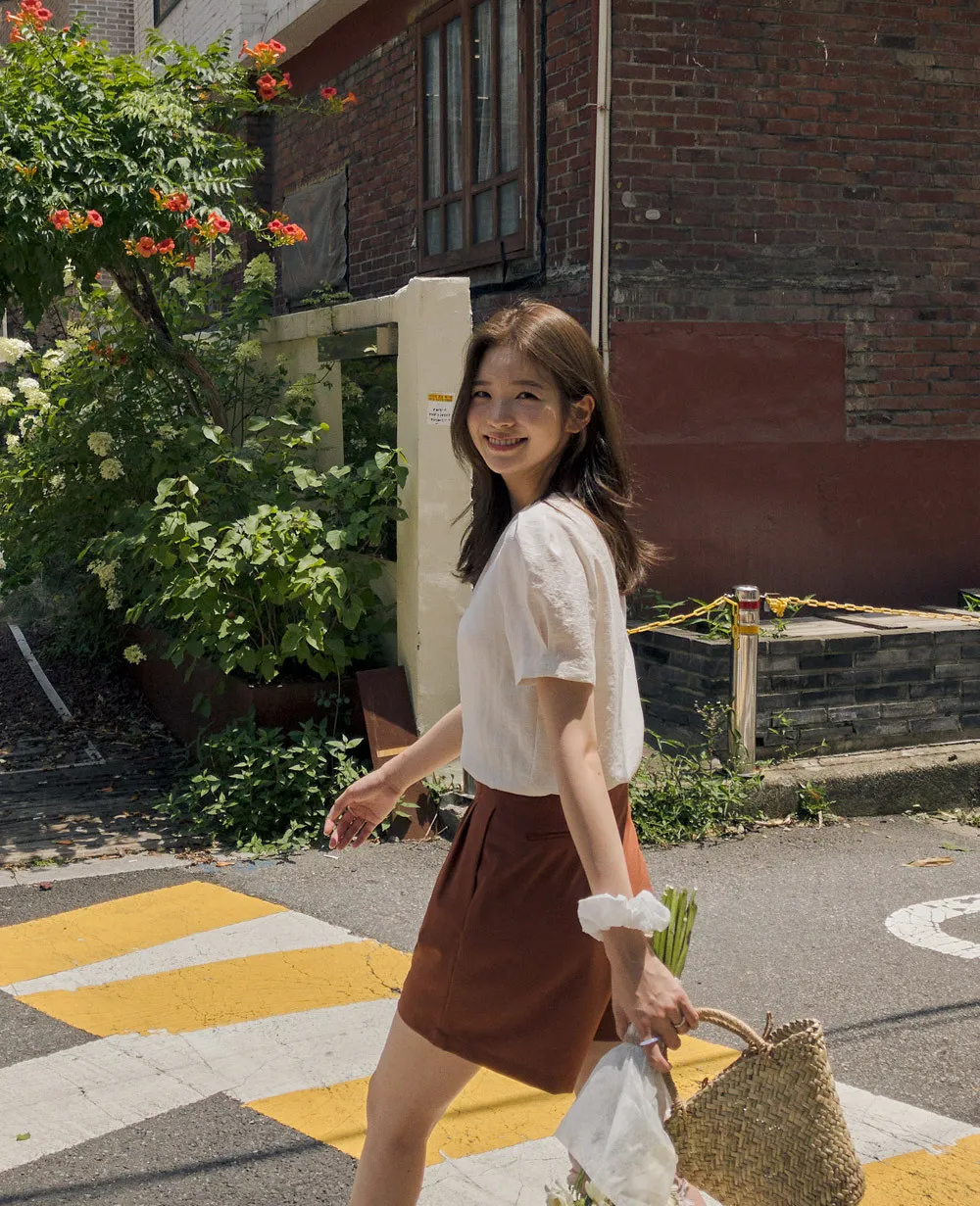 漂亮高腰修長線條細摺休閒短褲