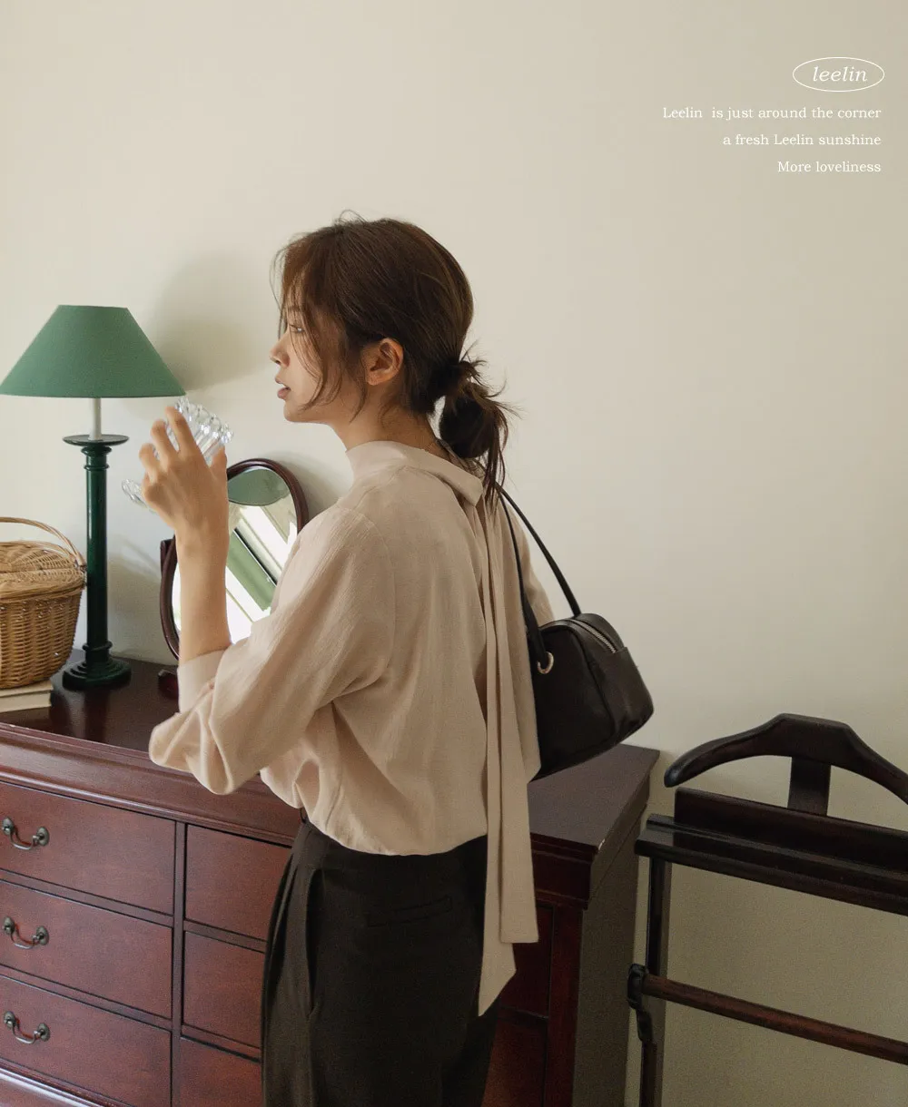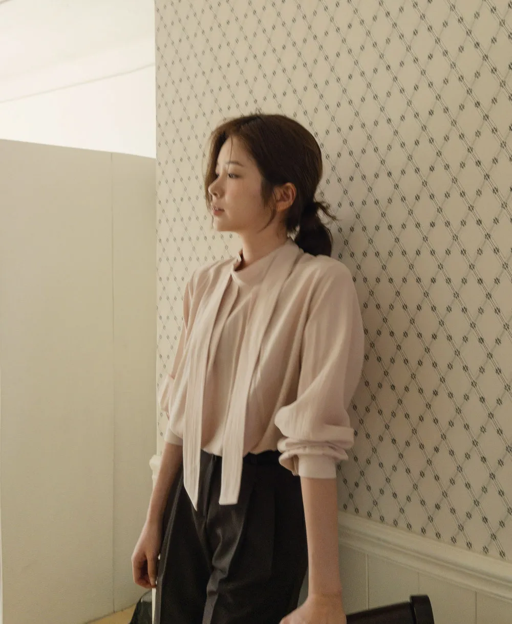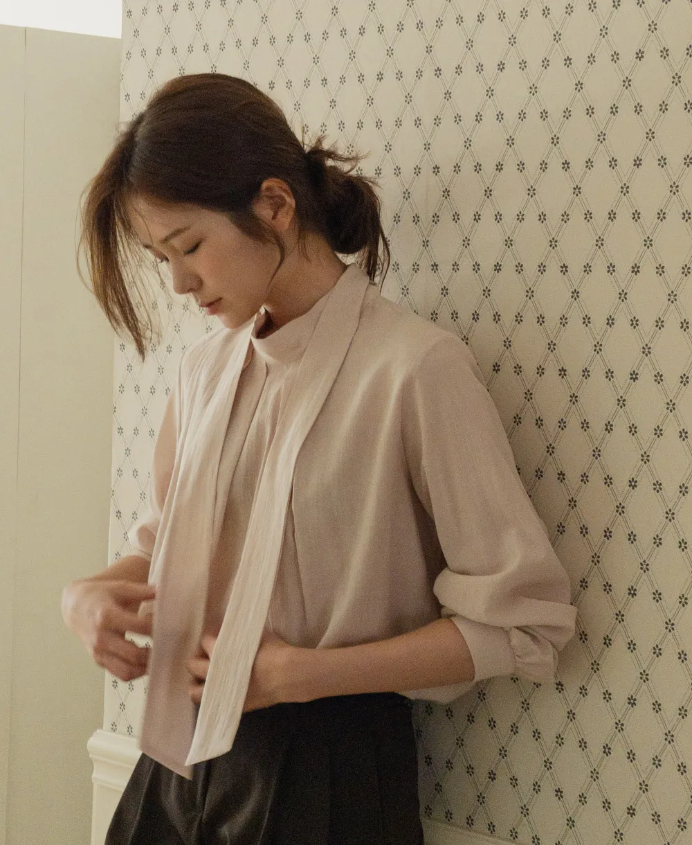 優雅兩穿漂亮細摺設計綁帶排扣上衣