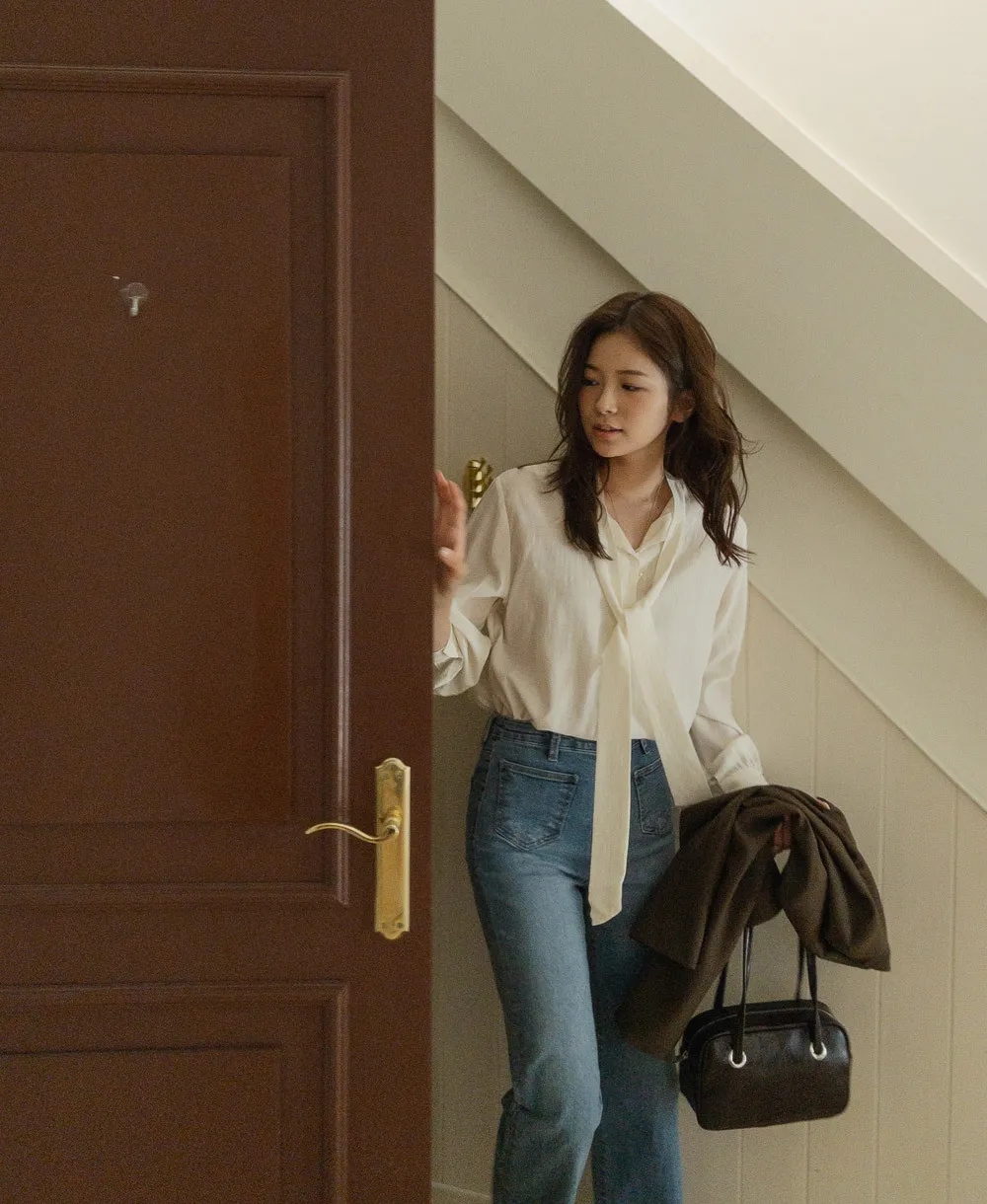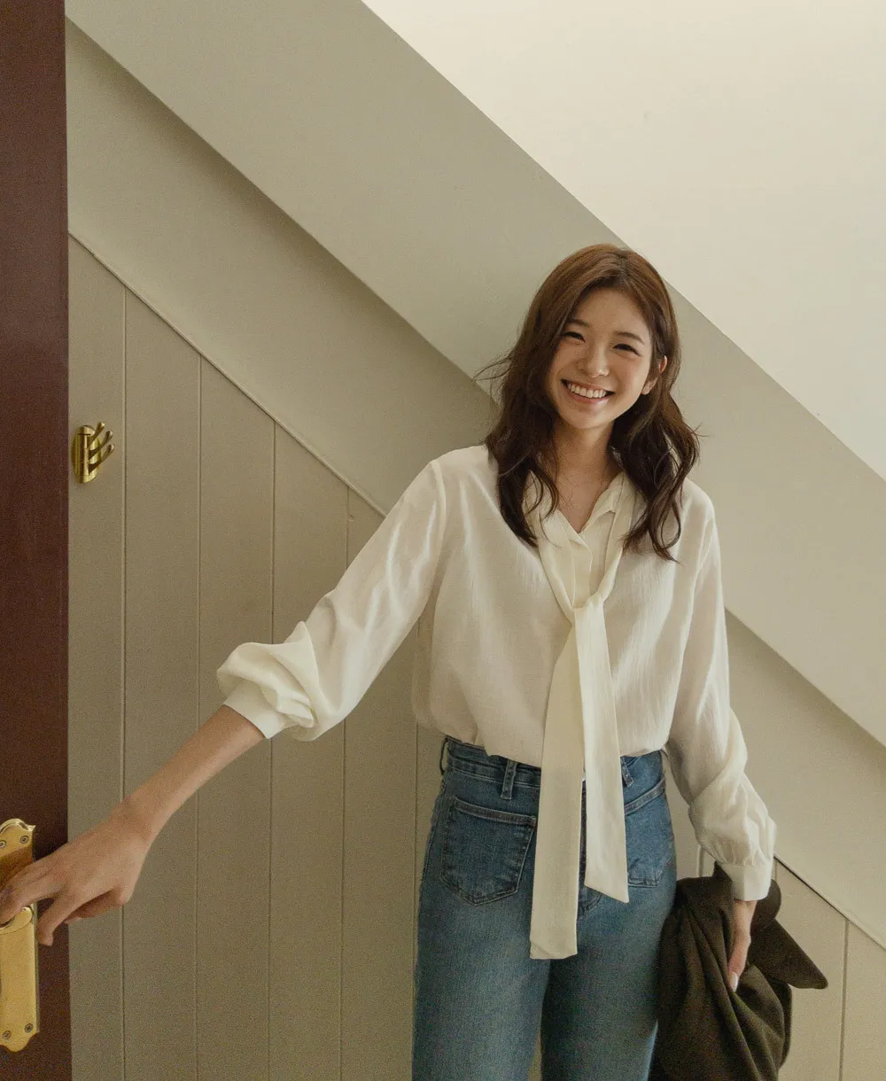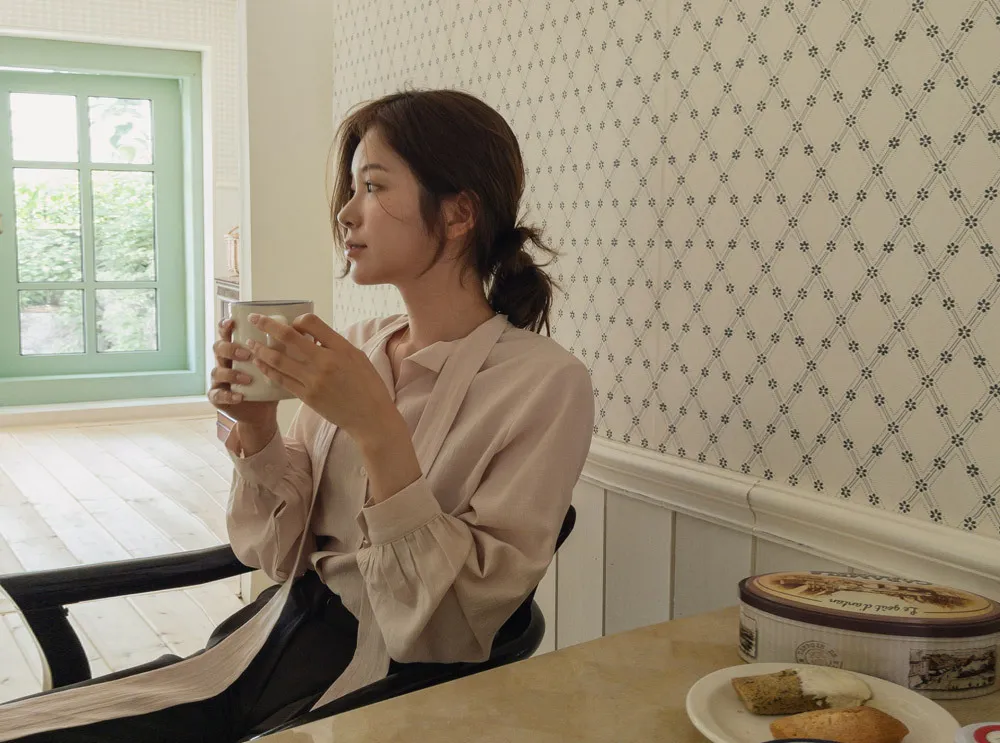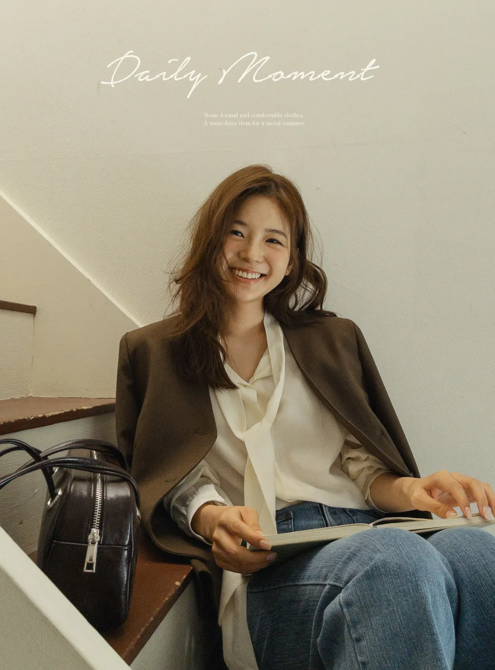 優雅兩穿漂亮細摺設計綁帶排扣上衣