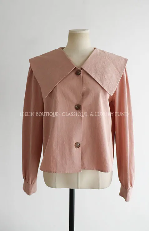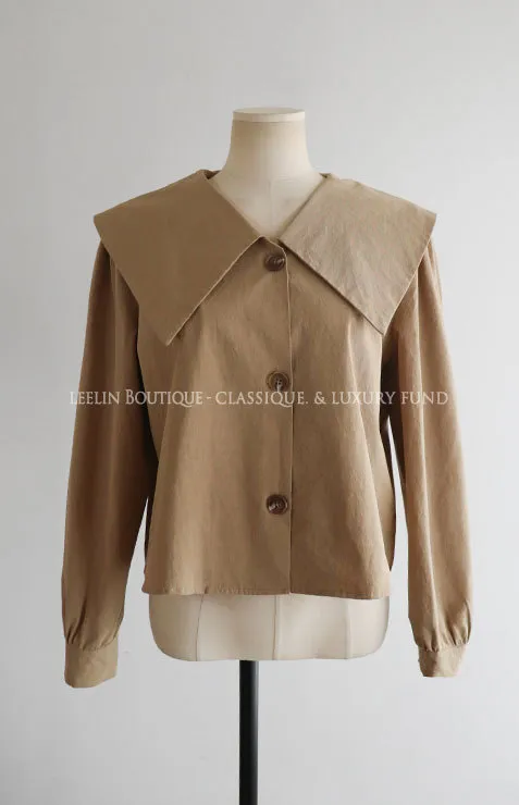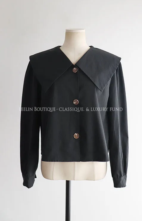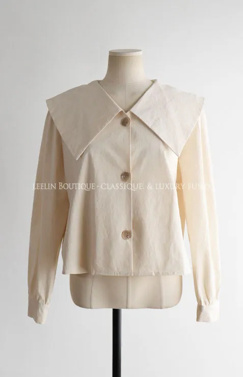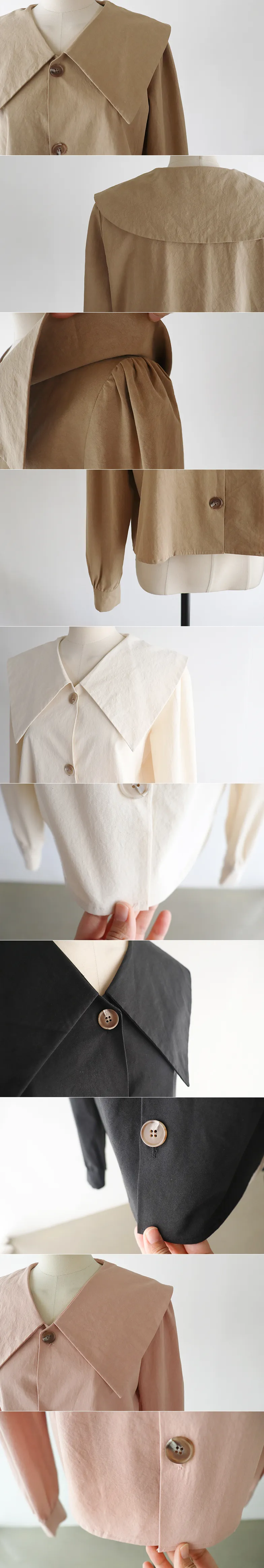 【可愛的水手三角領排扣上衣】【泡泡袖營造出寬鬆的輪廓!