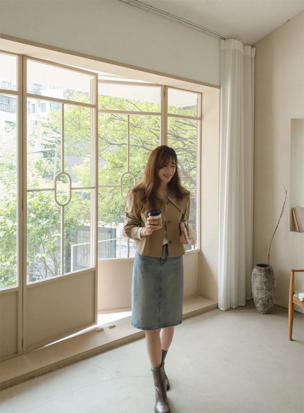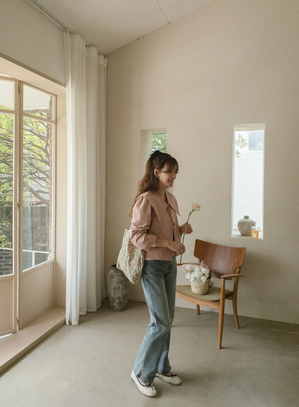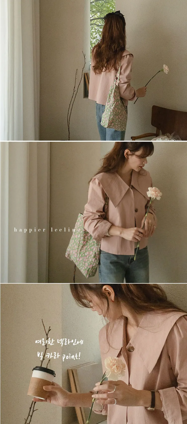 【可愛的水手三角領排扣上衣】【泡泡袖營造出寬鬆的輪廓!