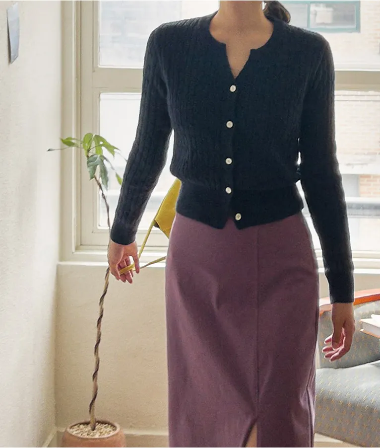 [柔軟舒適的羊絨混紡面料] [豐盈細膩的扭紋編織] [頸部細節的時尚輪廓♡]