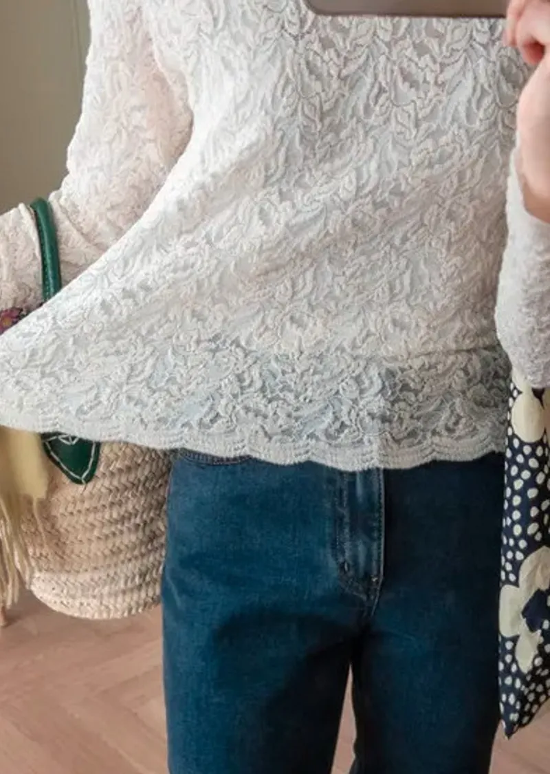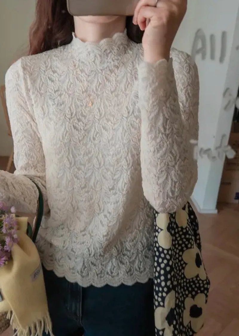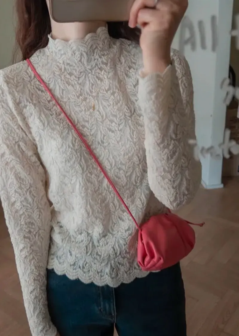 優雅蕾絲花朵波浪邊彈性內搭上衣