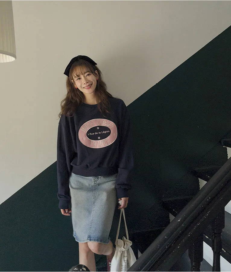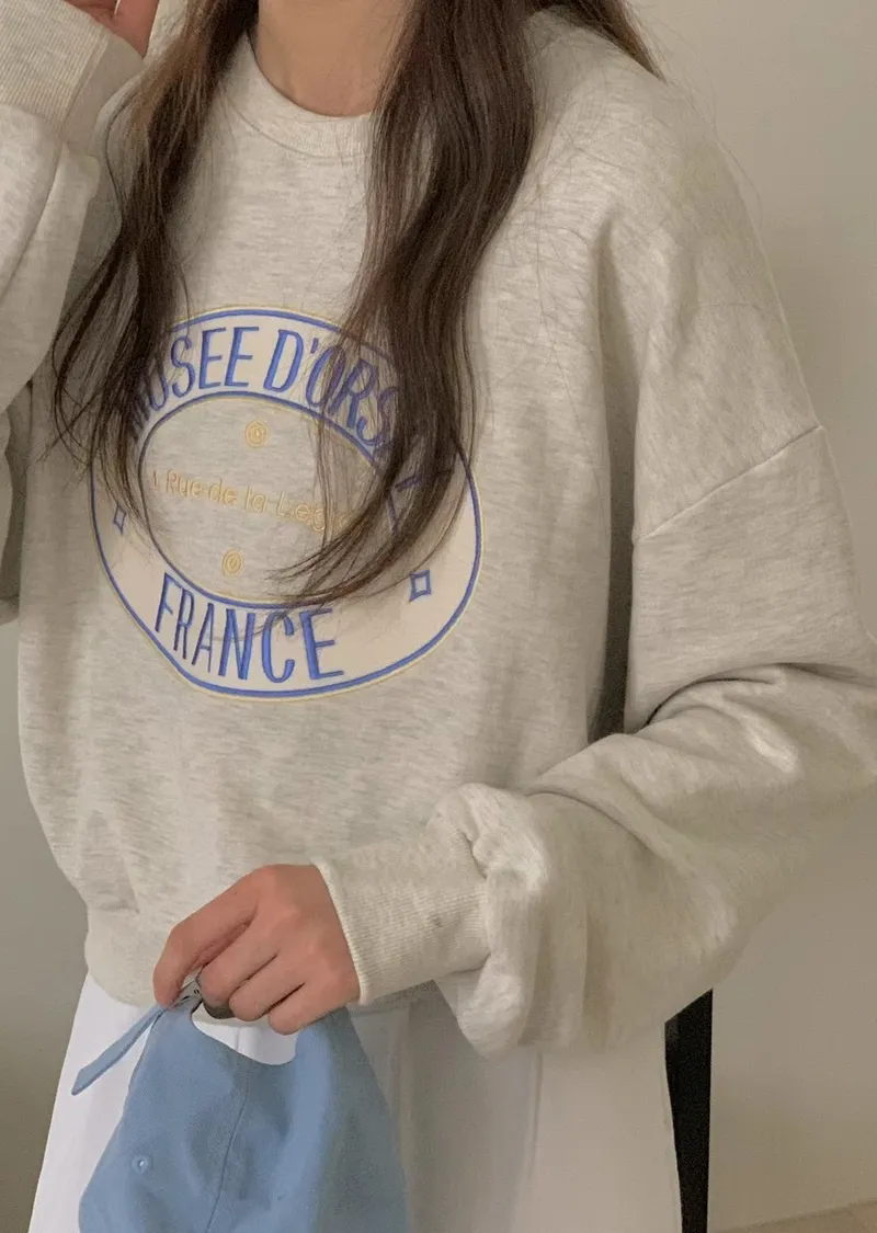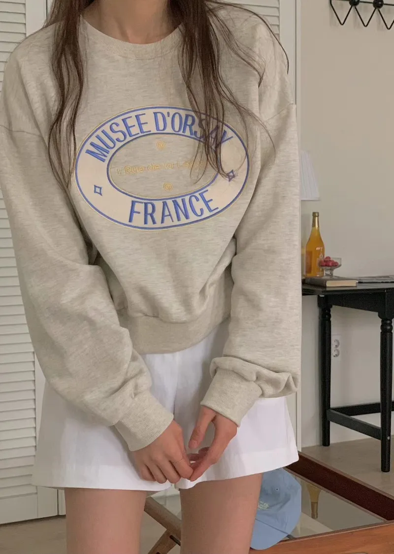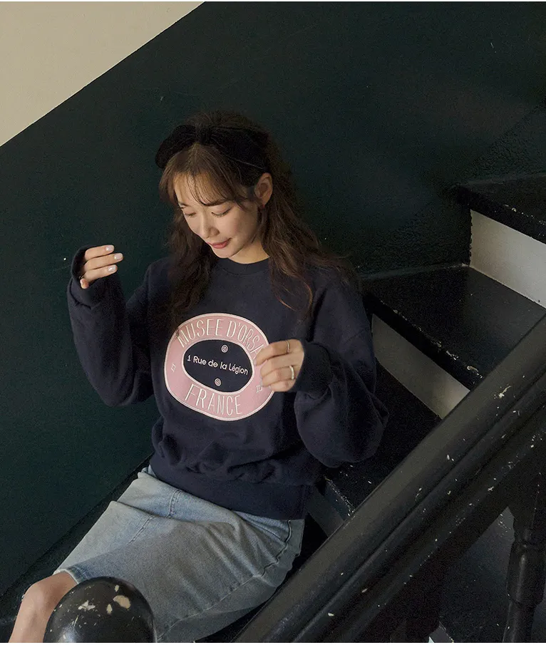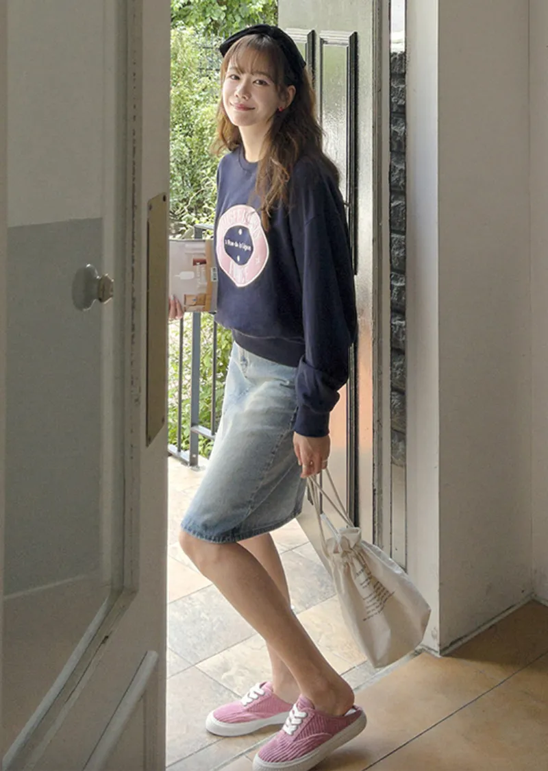 可愛甜甜圈形狀配色刺繡字母大學T