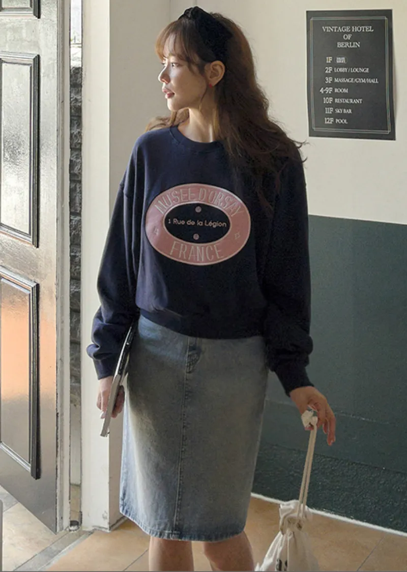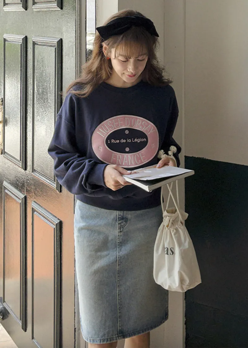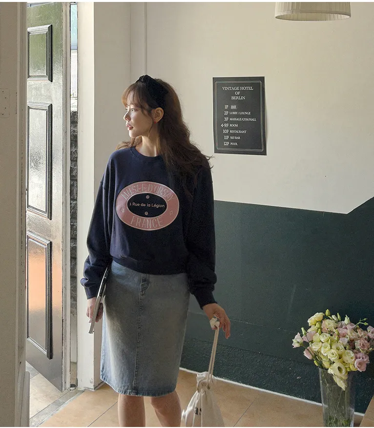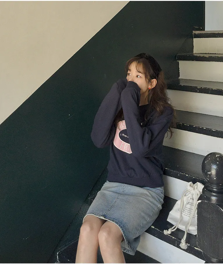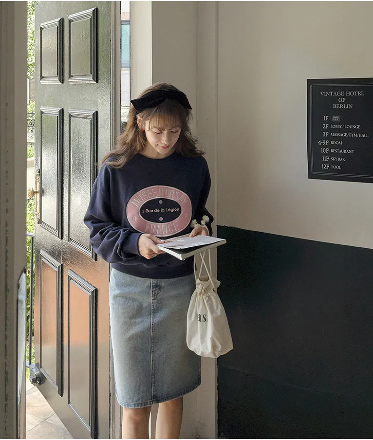 可愛甜甜圈形狀配色刺繡字母大學T
