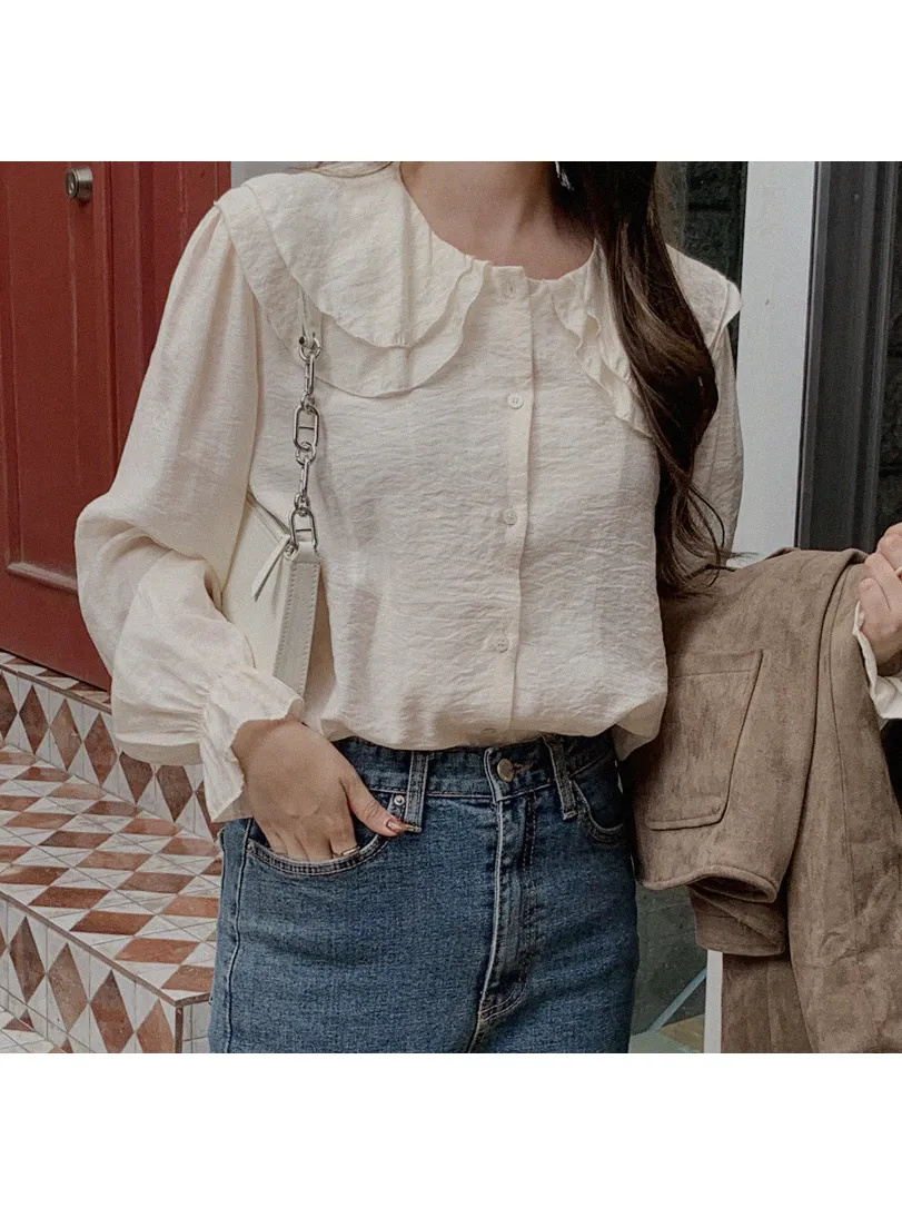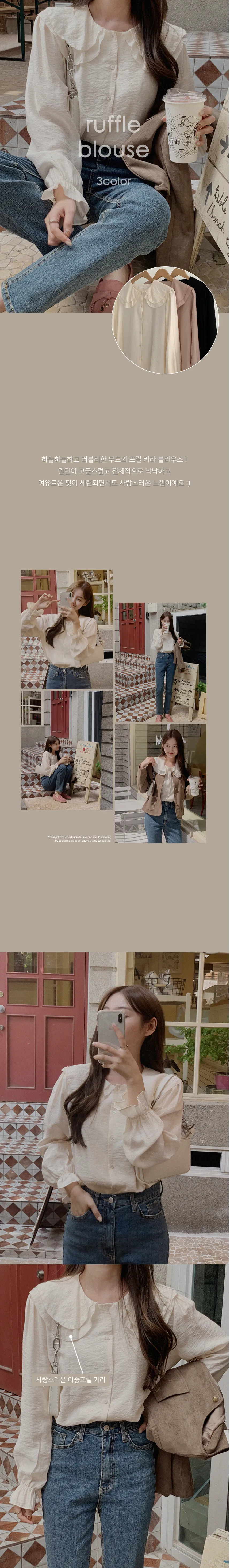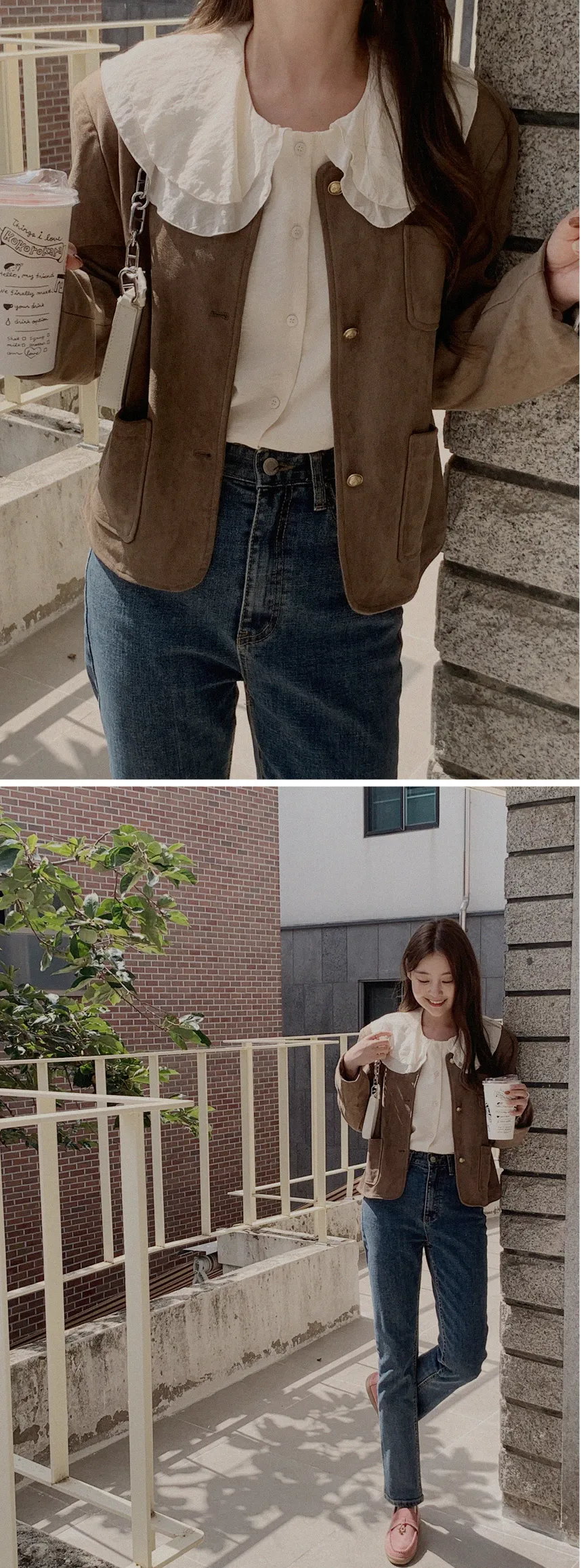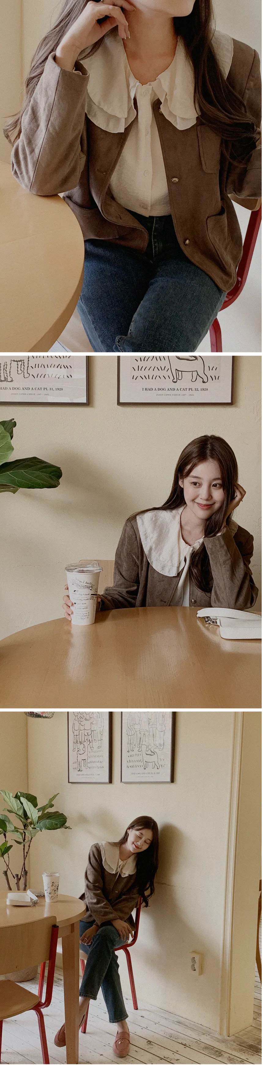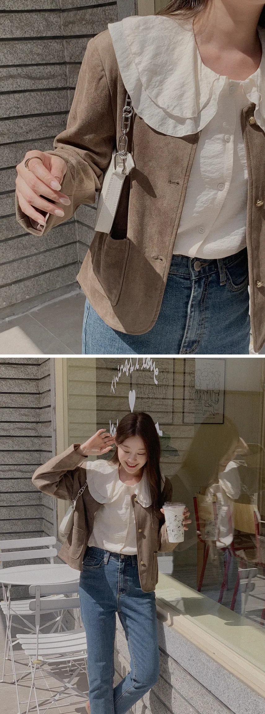 漂亮雙褶邊領袖口束摺邊排扣上衣