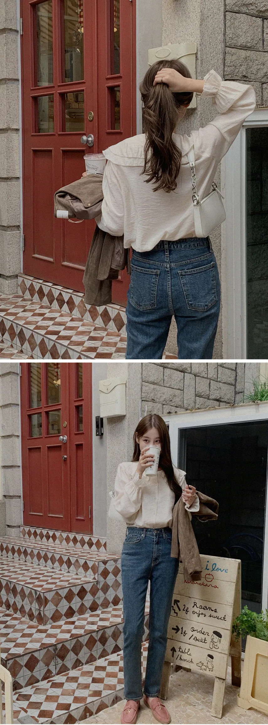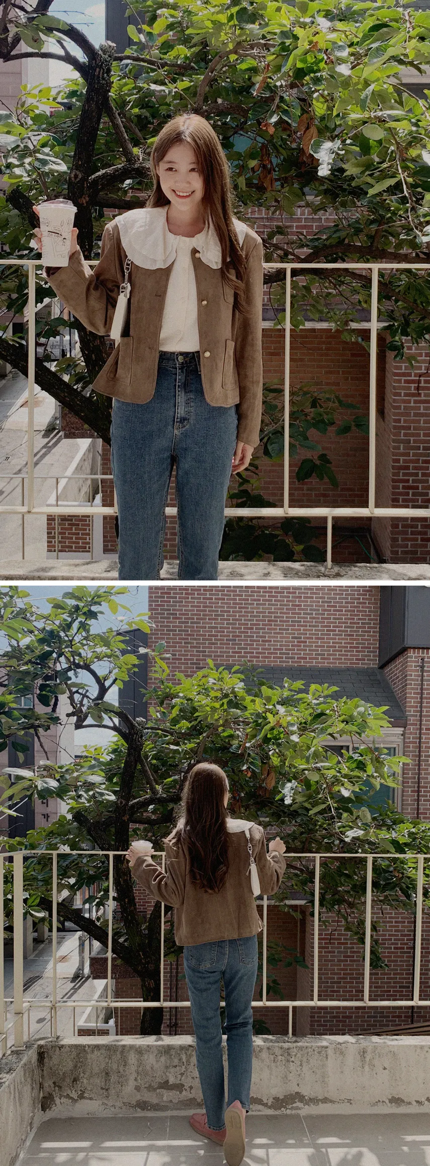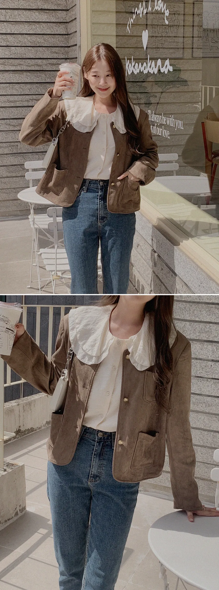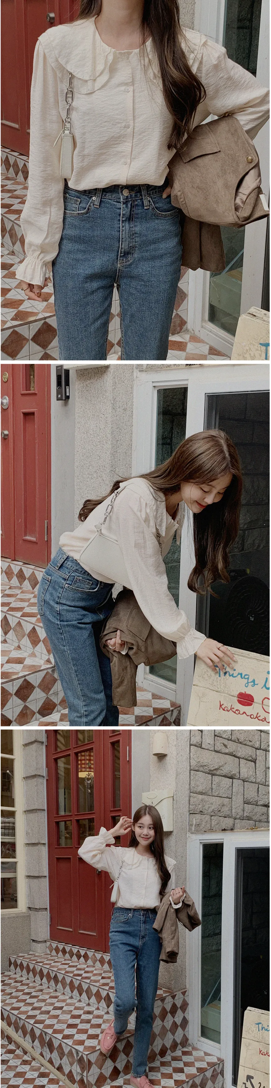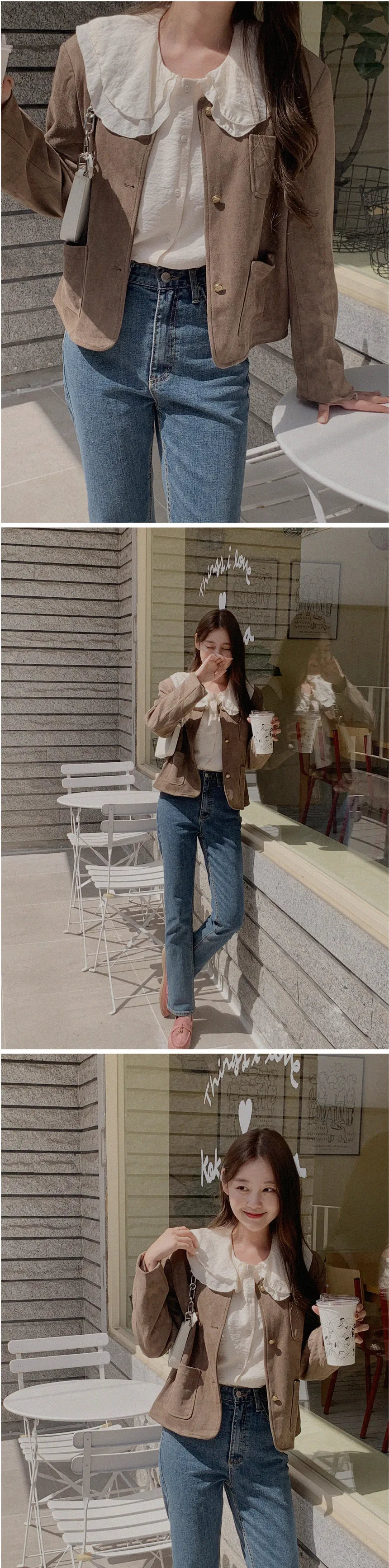 漂亮雙褶邊領袖口束摺邊排扣上衣