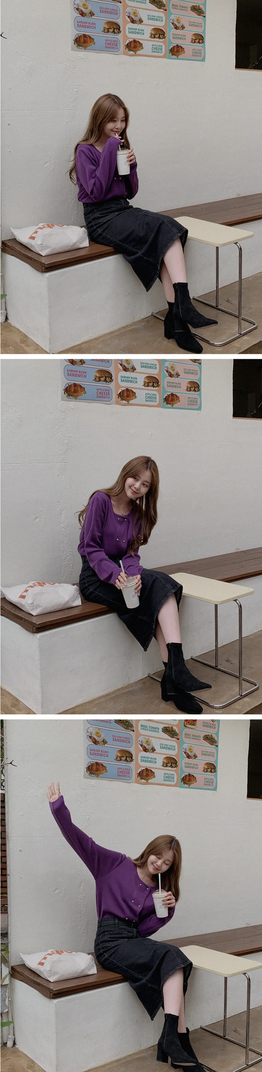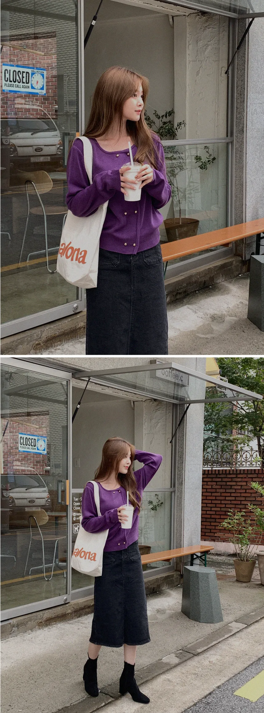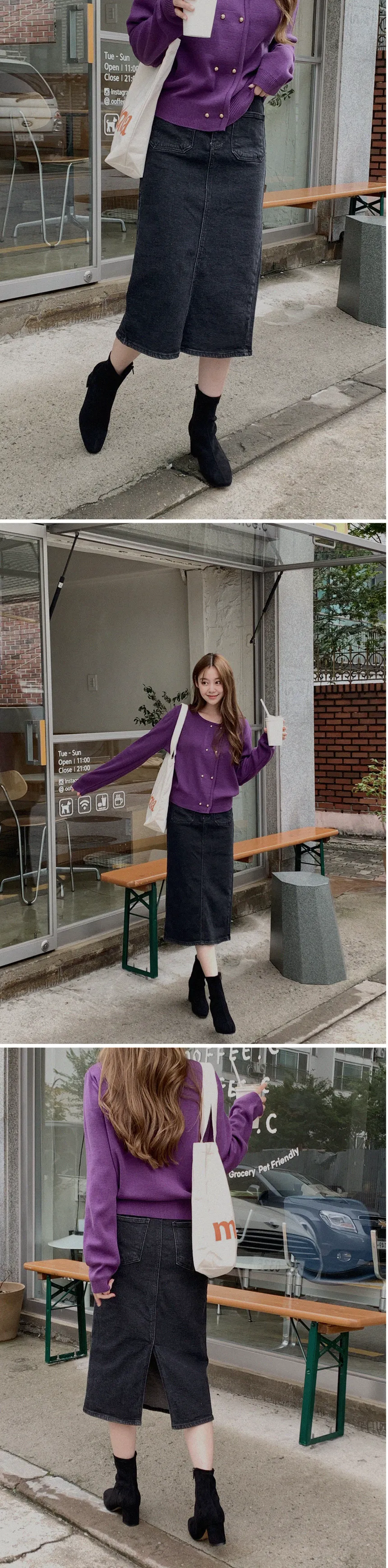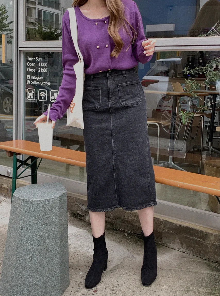 因雙鈕扣而具有特殊情調的針織開衫。開衫閉合非常漂亮。採用修身的針織面料,適度寬鬆的版型和下擺穿起來,肩線和手臂線條看起來很精緻。金色鈕扣帶賦予它閃亮的氣息,使其看起來奢華而女性化。它與模特一樣舒適的牛仔下身ㄉ很相配,也與滌綸面料製成的女性化裙子完美搭配。顏色精緻又不失女人味和奢華,非常推薦。即使只是搭配牛仔褲也會閃閃發光♡