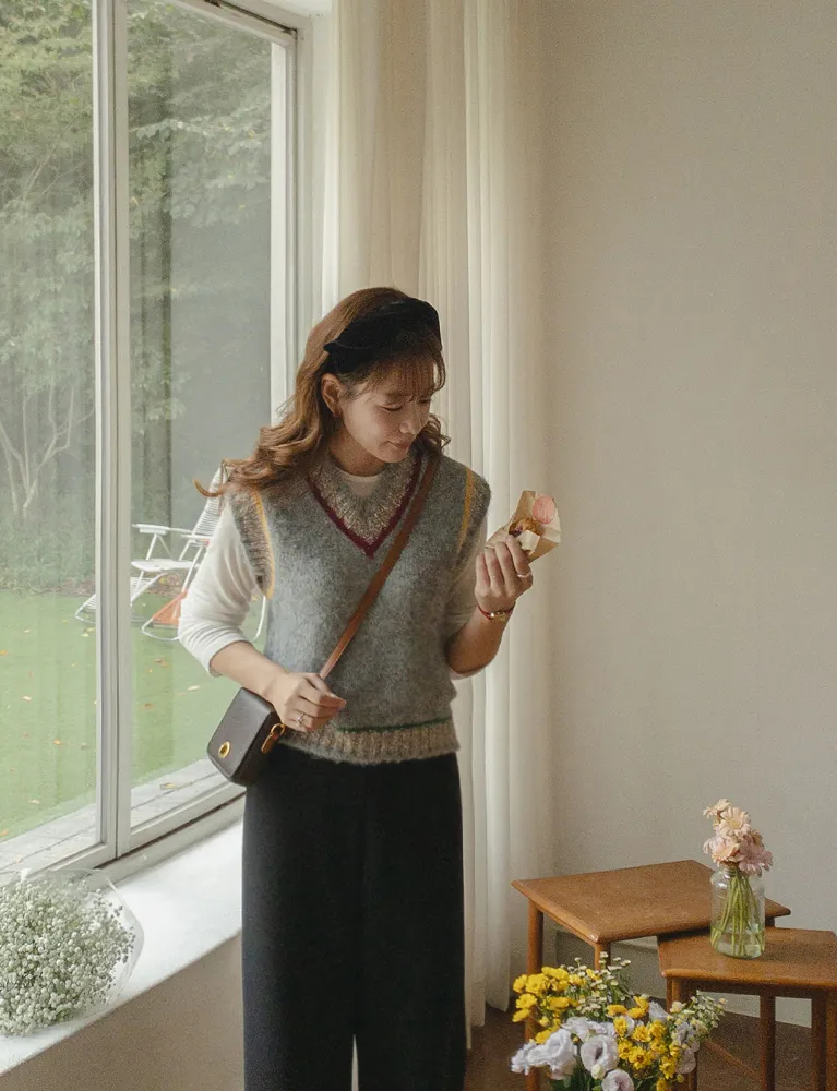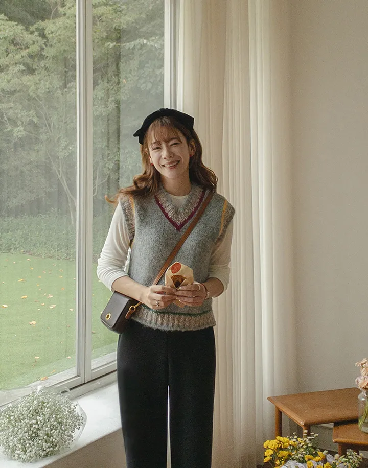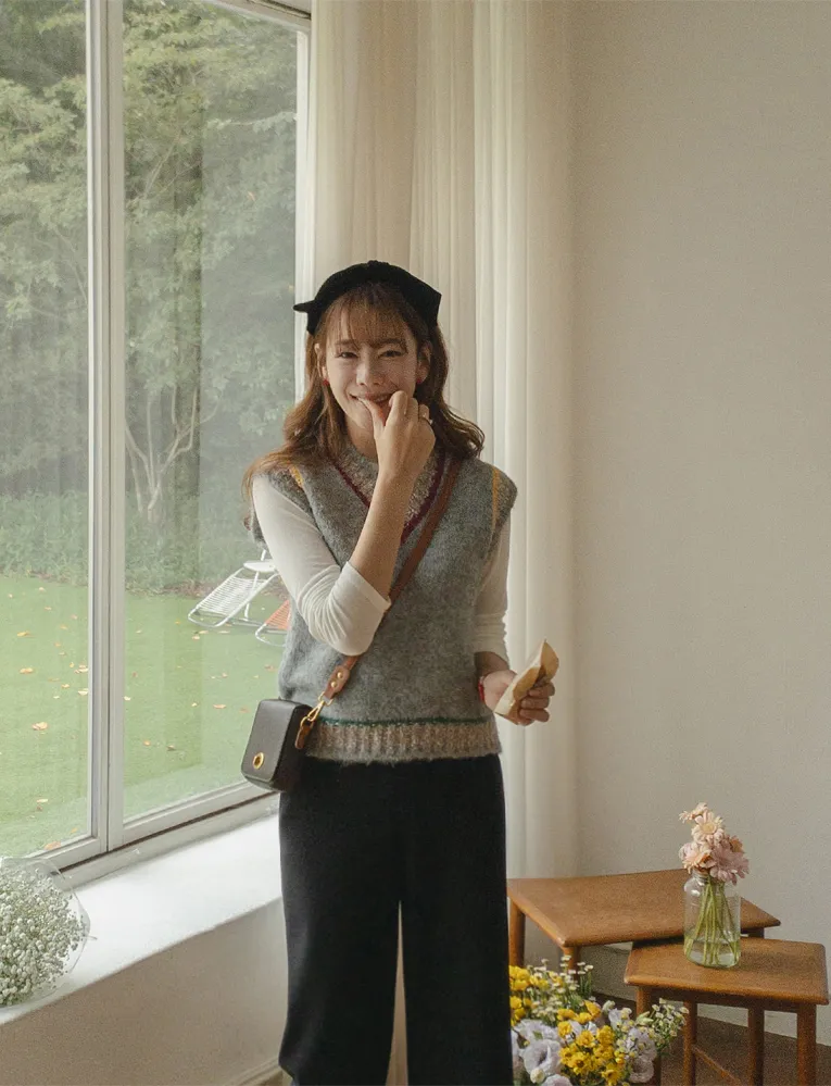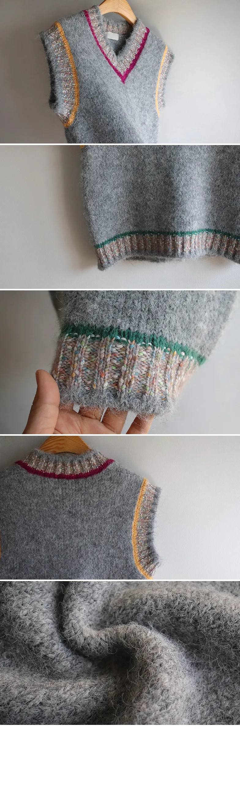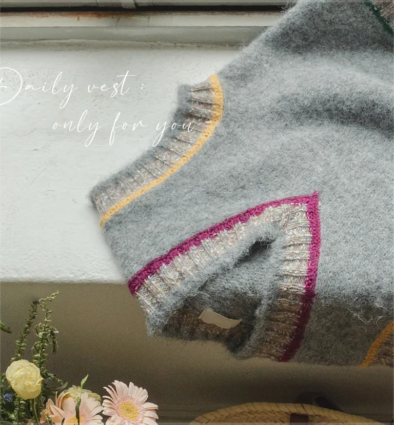 [獨特的色彩細節背心♡][柔軟的質感,有毛感][牛仔褲+休閒褲+裙子都好搭~][推薦作為季節之間的疊搭單品!