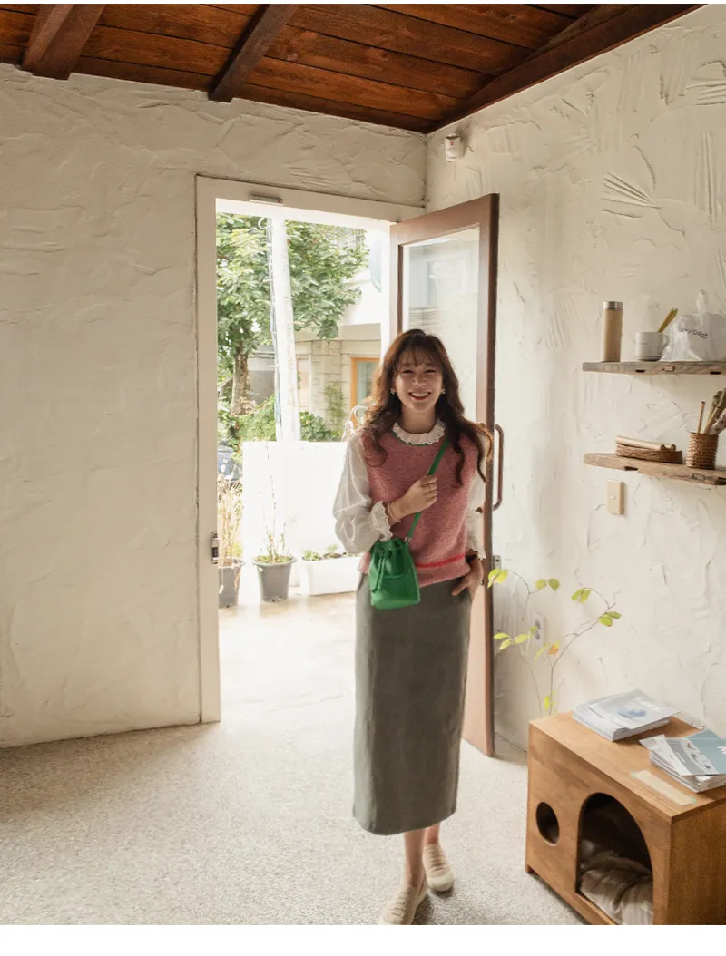 漂亮色彩舒適H型剪裁後開衩中長裙