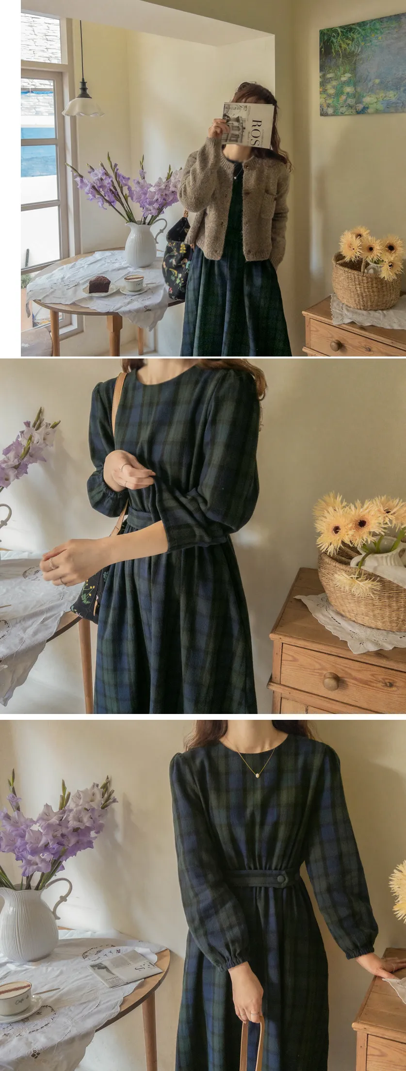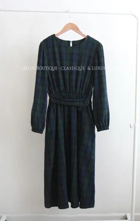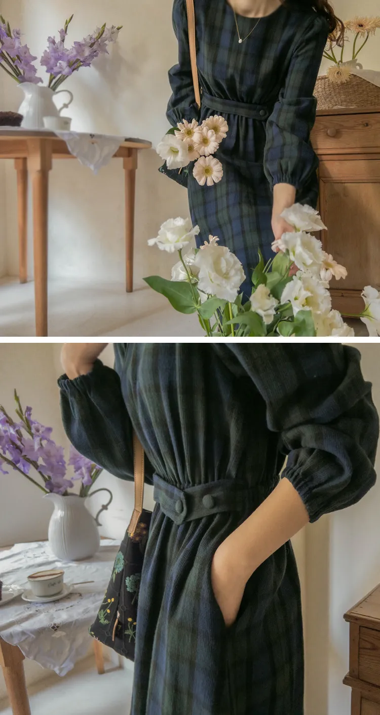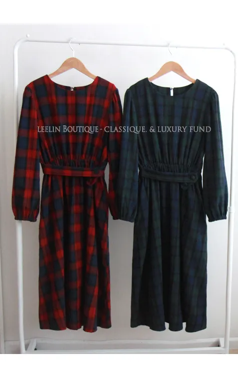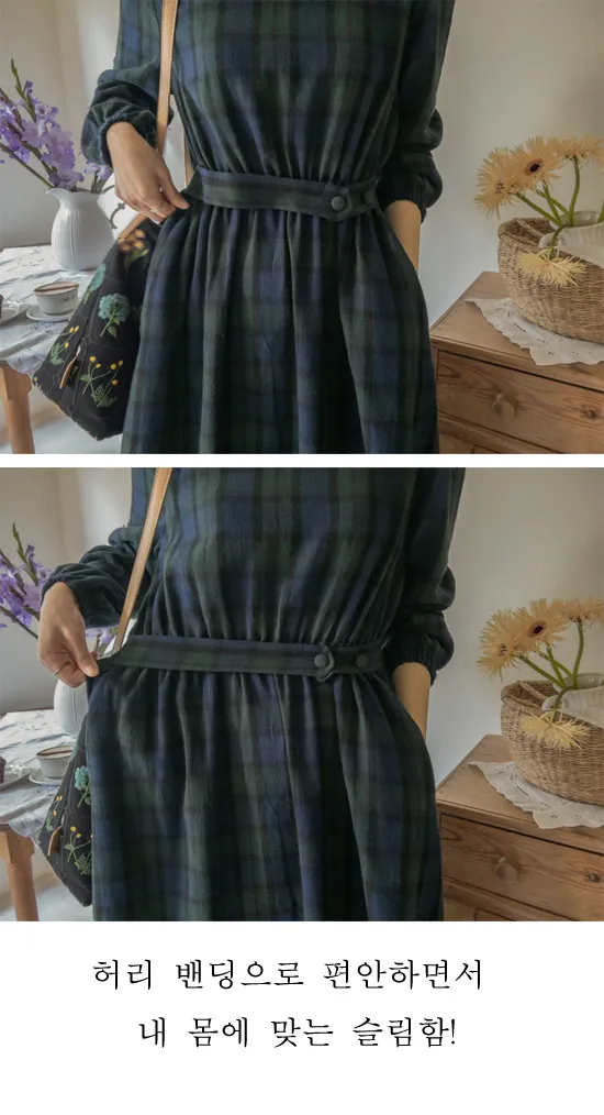 [抓絨襯裡] [腰部舒適纖細,彈性帶貼合身形! ] [拉絨布料冬季專用洋裝] [腰部鈕扣帶可愛舒適,穿著很舒服! ]