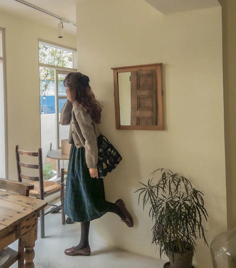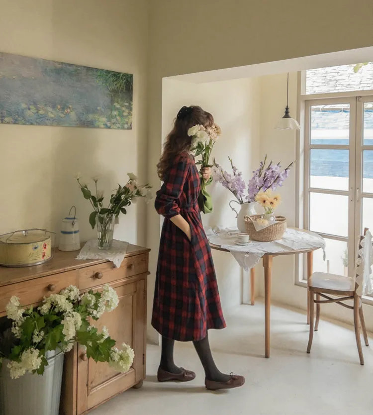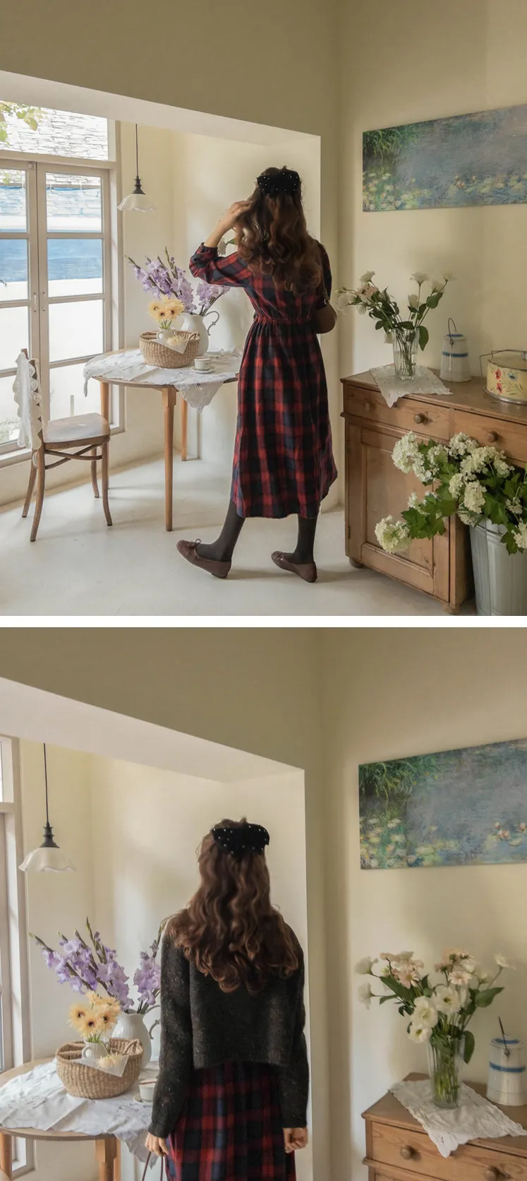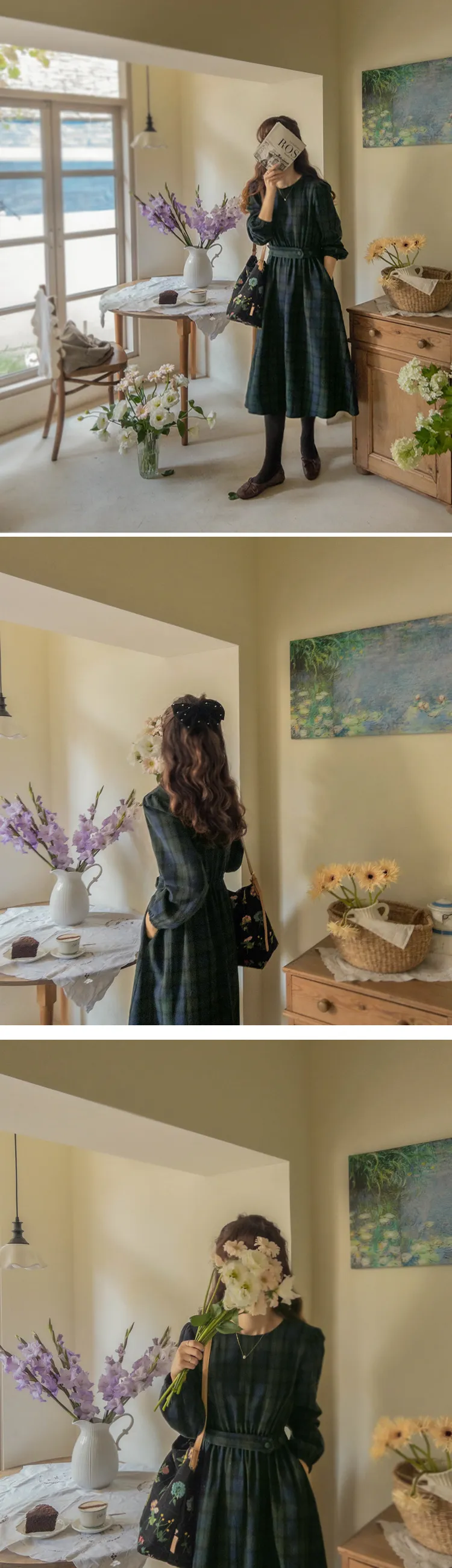 [抓絨襯裡] [腰部舒適纖細,彈性帶貼合身形! ] [拉絨布料冬季專用洋裝] [腰部鈕扣帶可愛舒適,穿著很舒服! ]