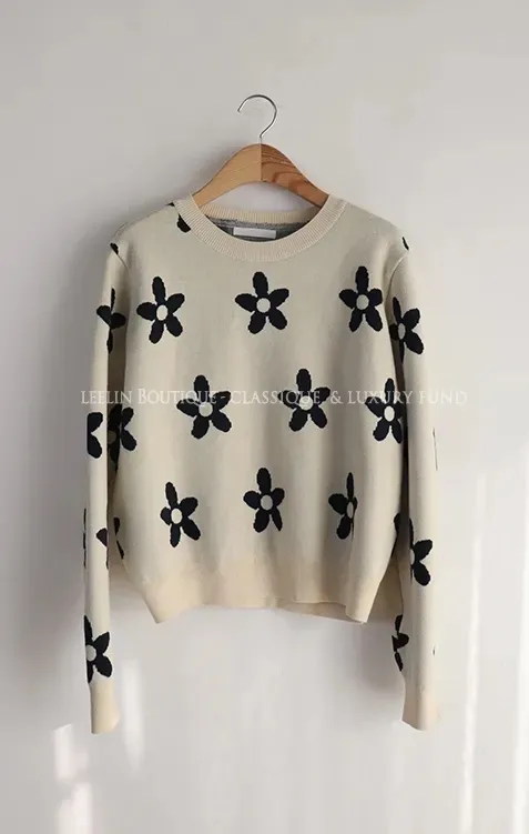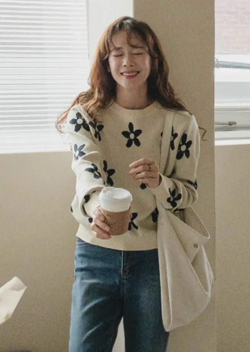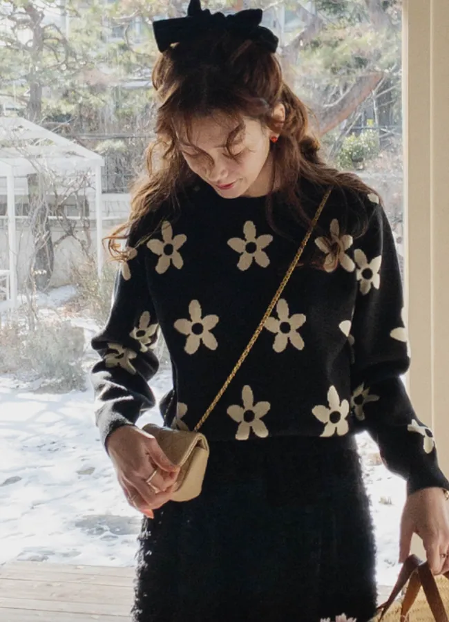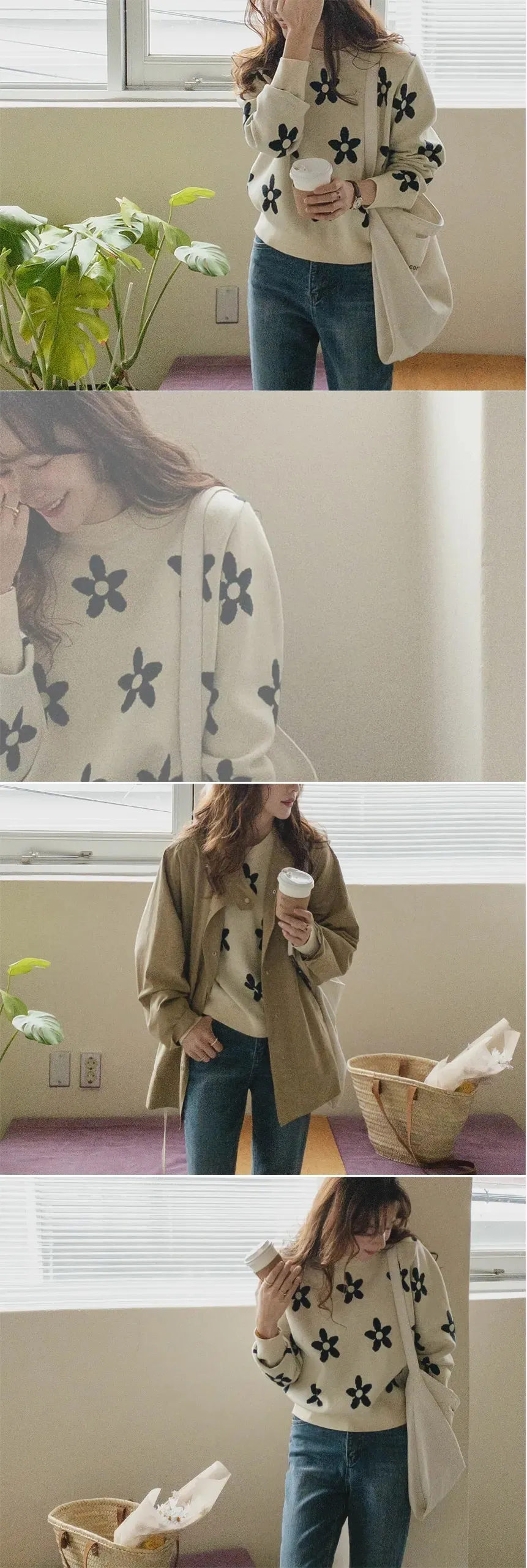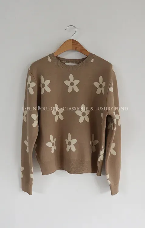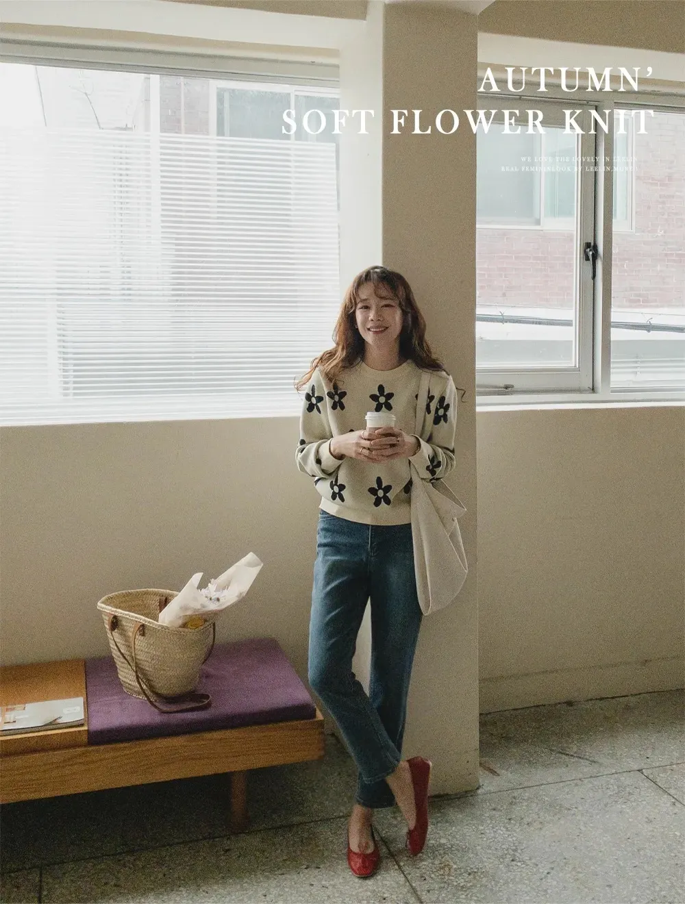 [針織可愛豐滿的花朵圖案] [材質強而柔軟,無拉伸] [非常適合用作單品!