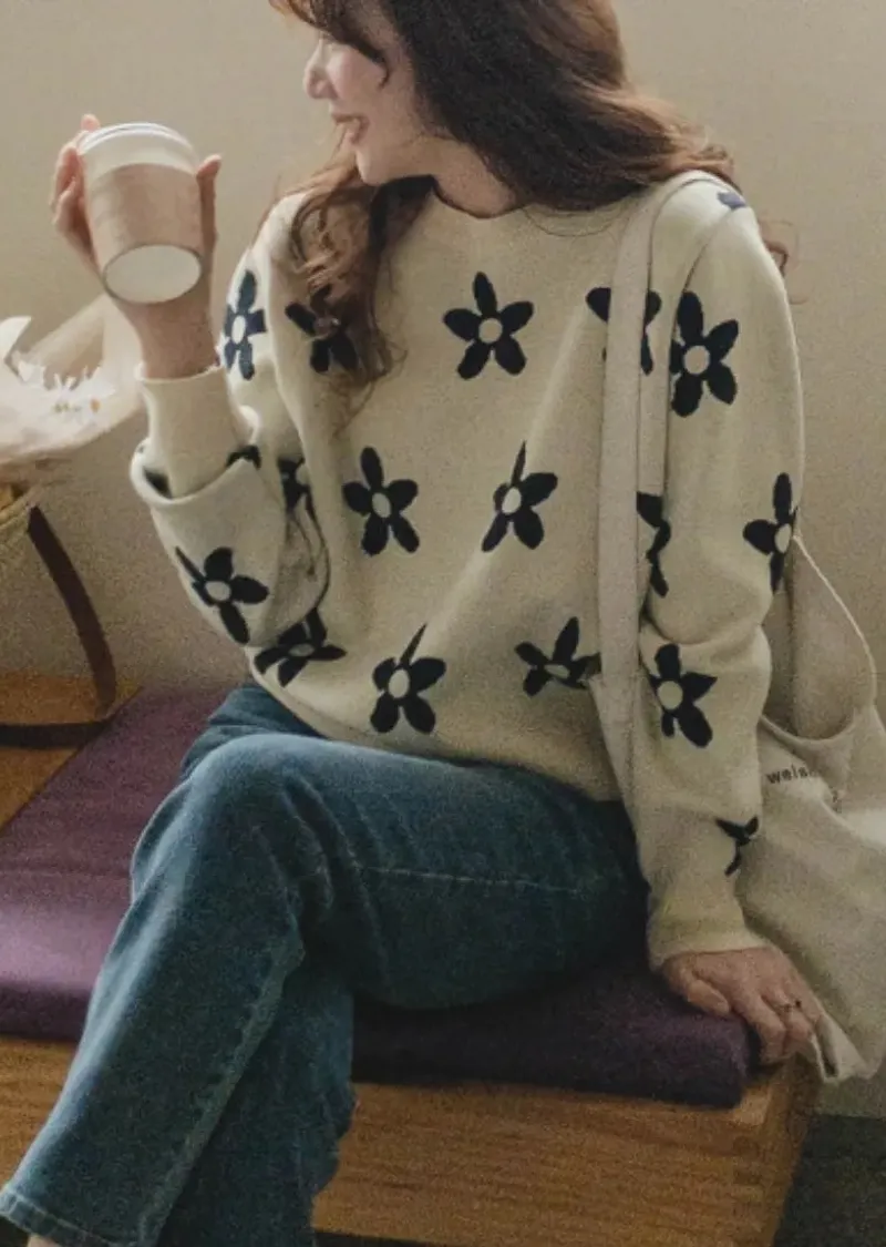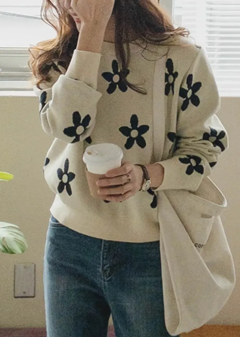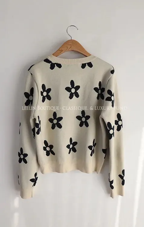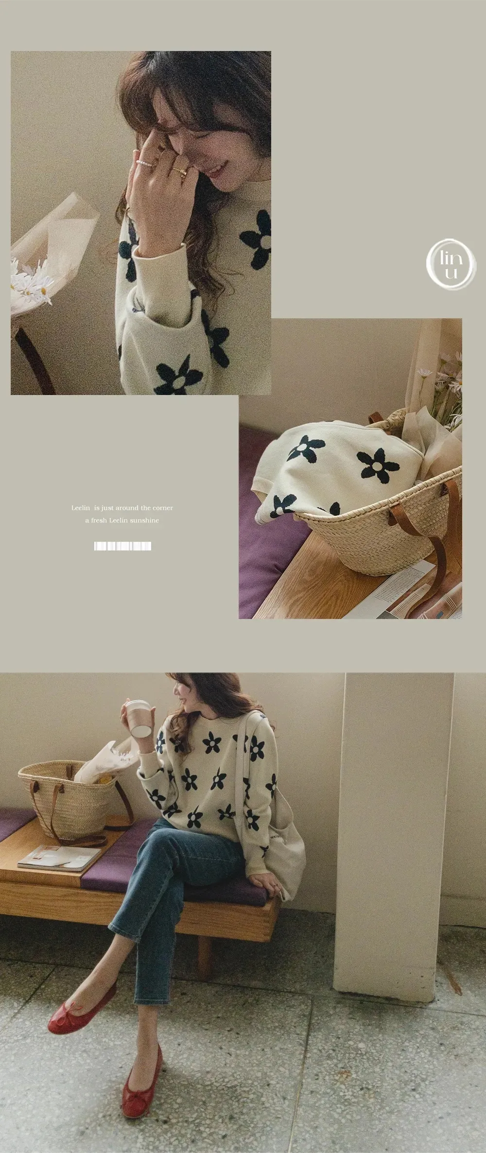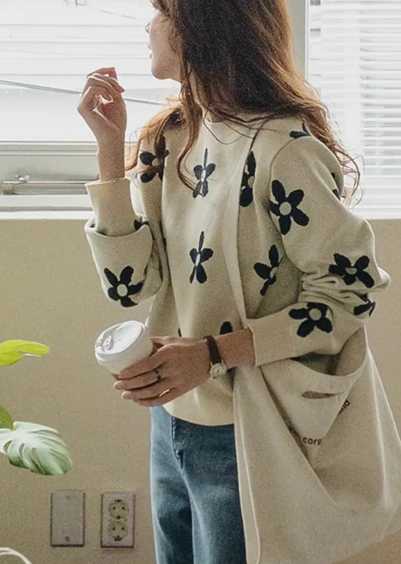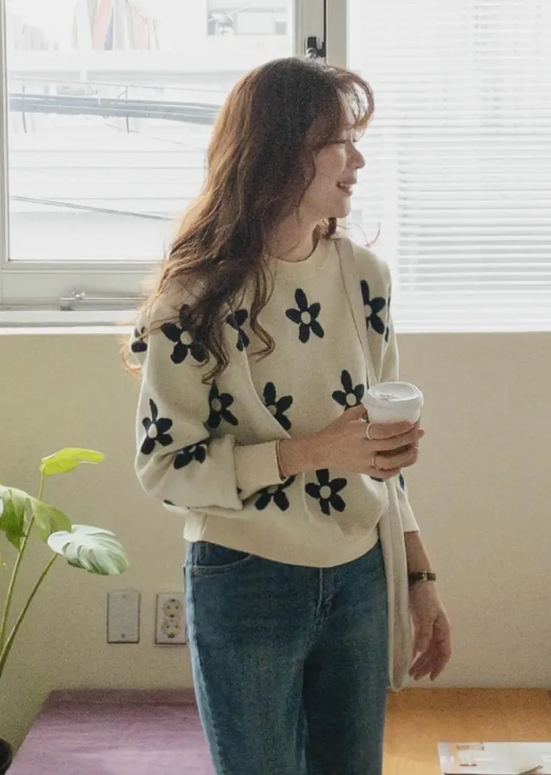 [針織可愛豐滿的花朵圖案] [材質強而柔軟,無拉伸] [非常適合用作單品!