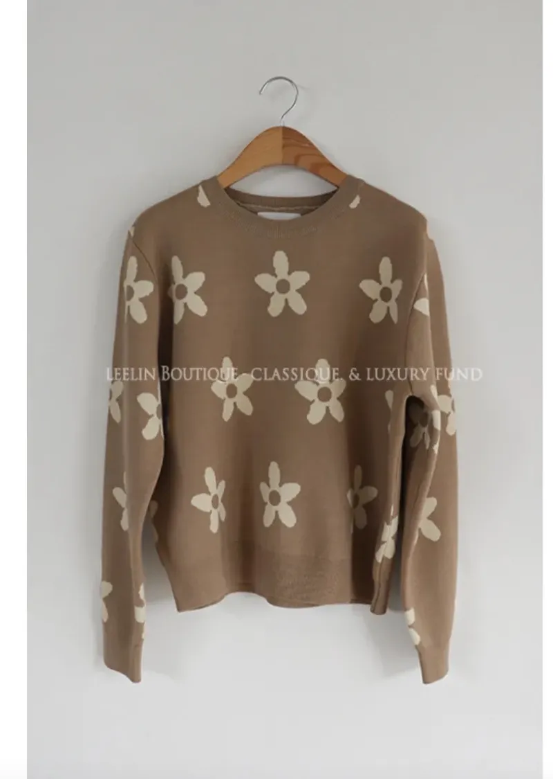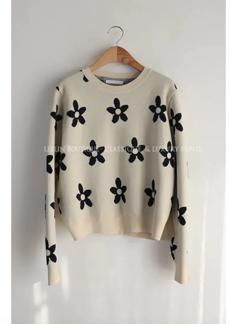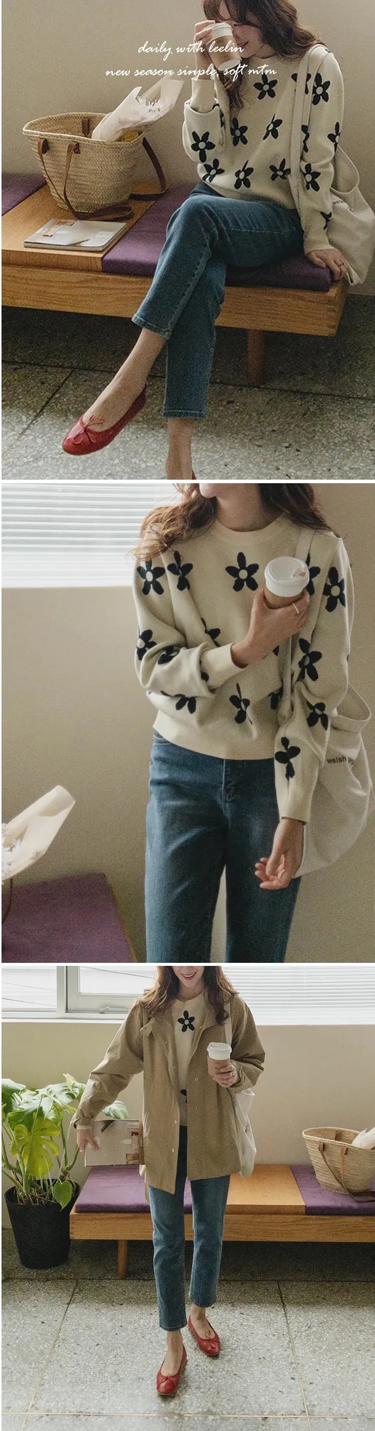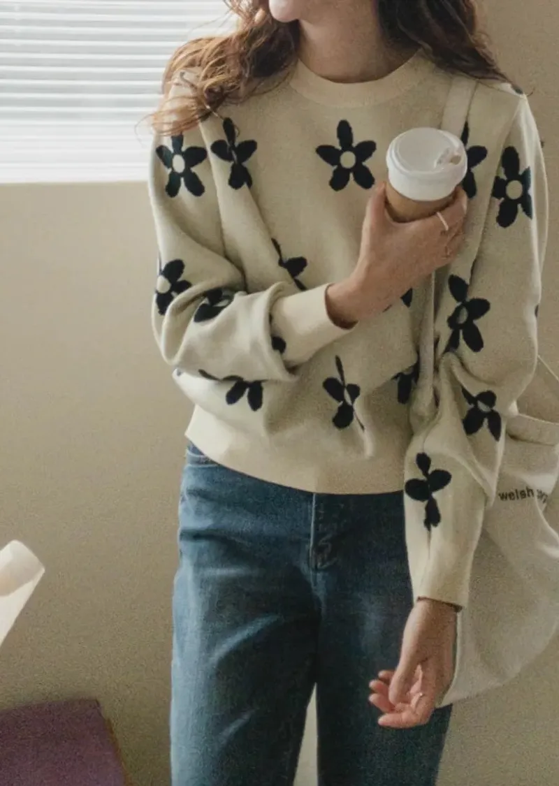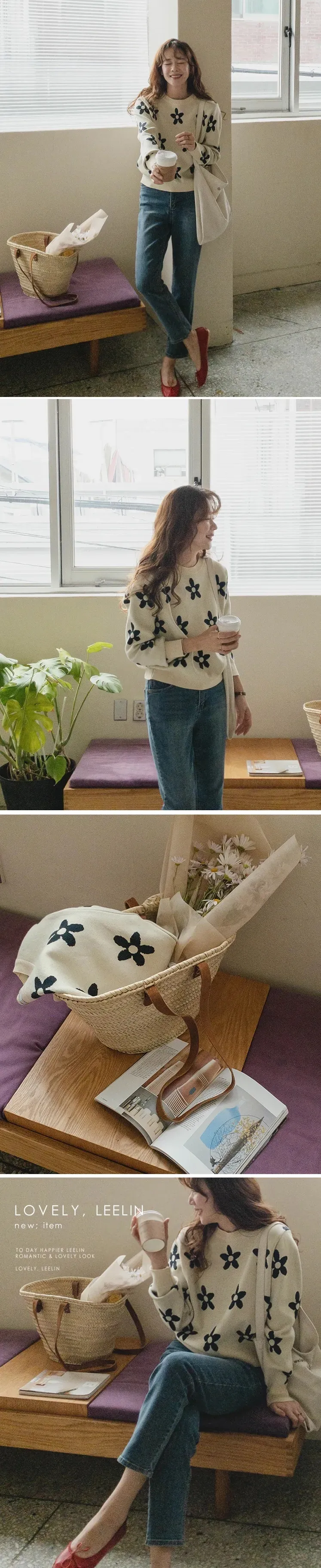 [針織可愛豐滿的花朵圖案] [材質強而柔軟,無拉伸] [非常適合用作單品!