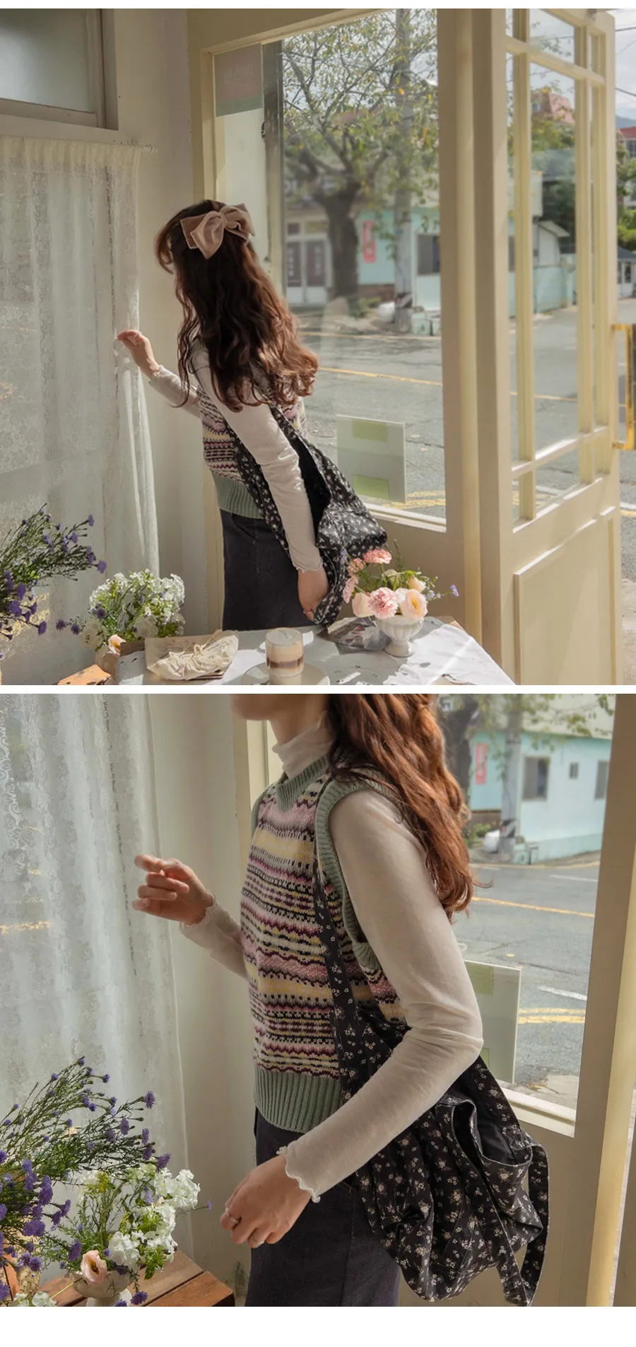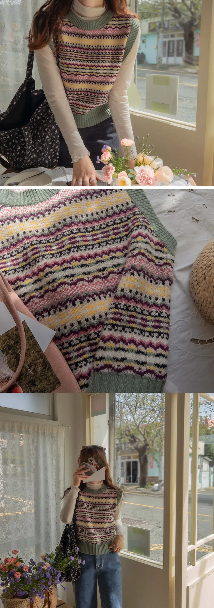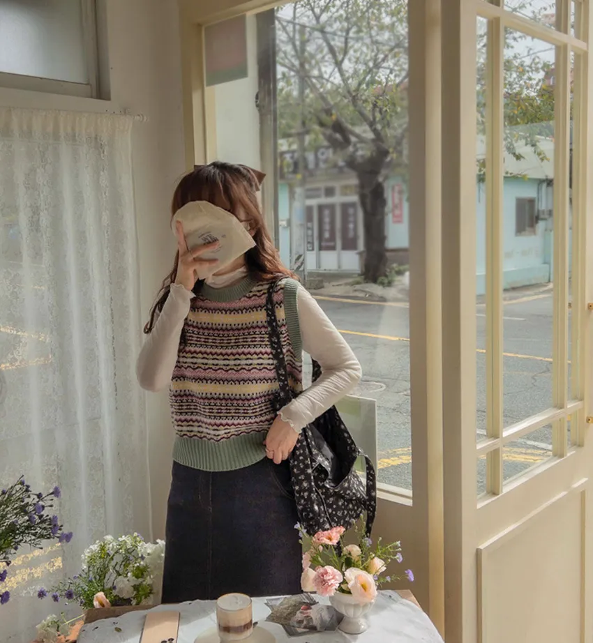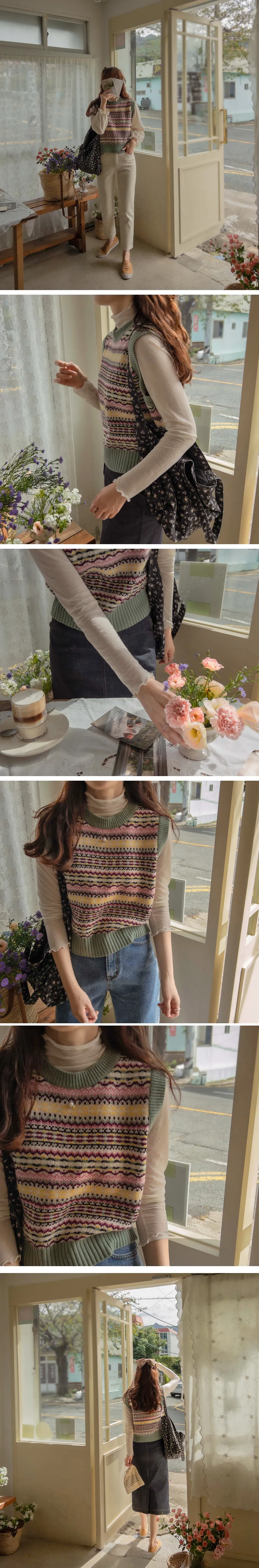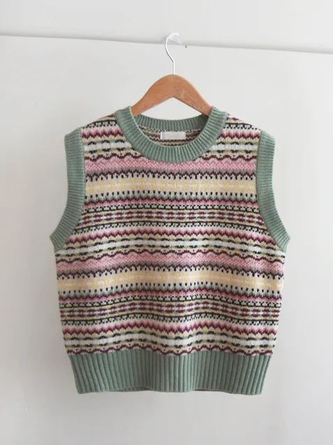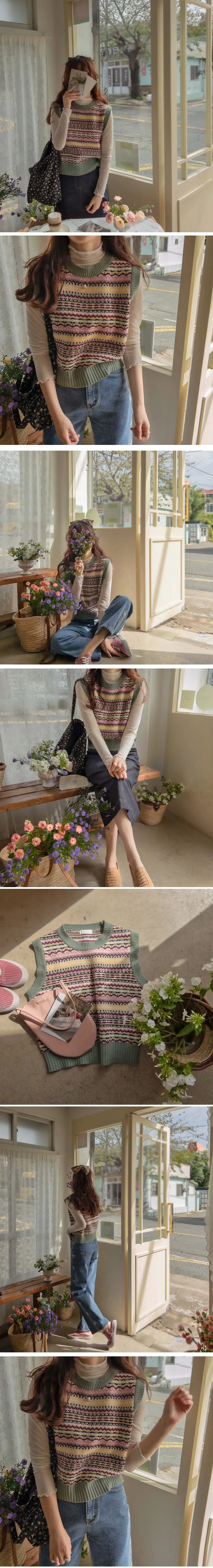 清新色彩線條針織背心