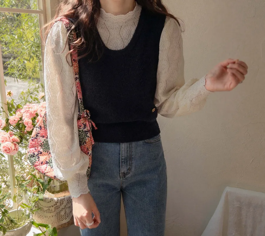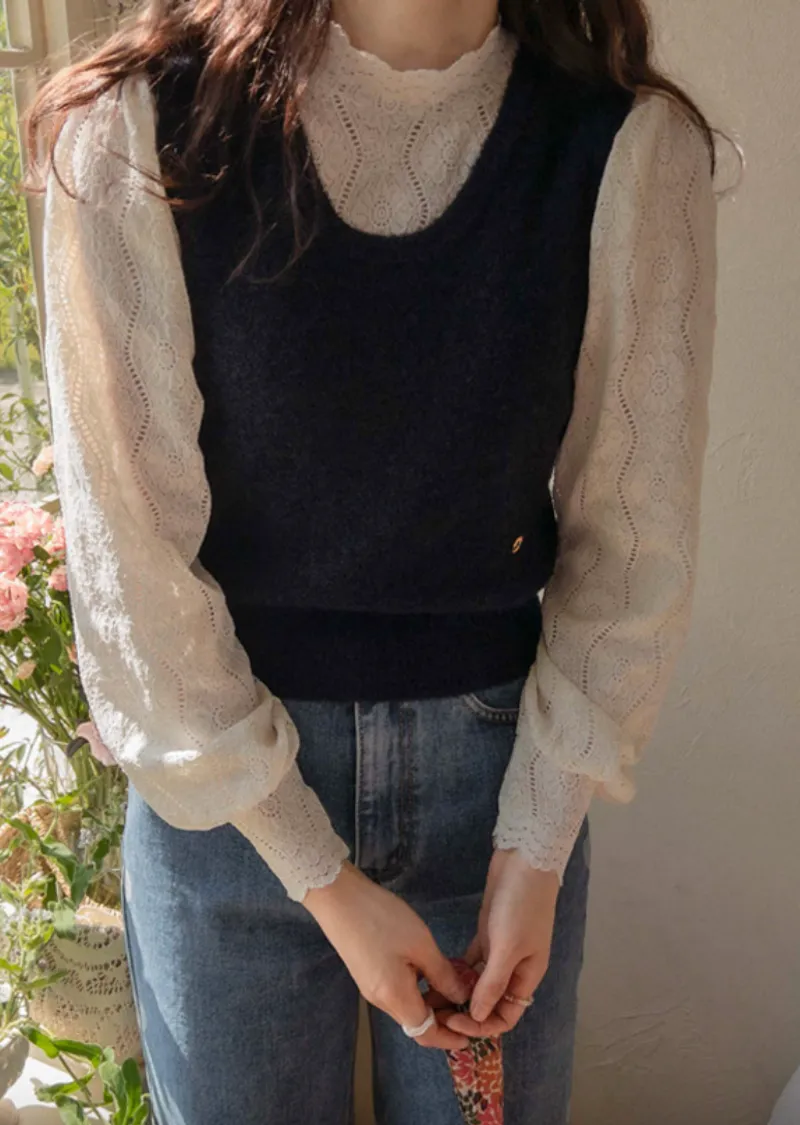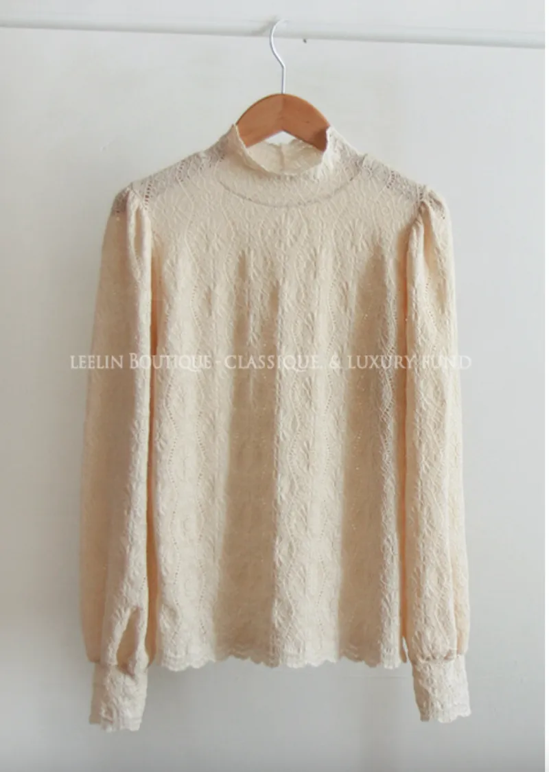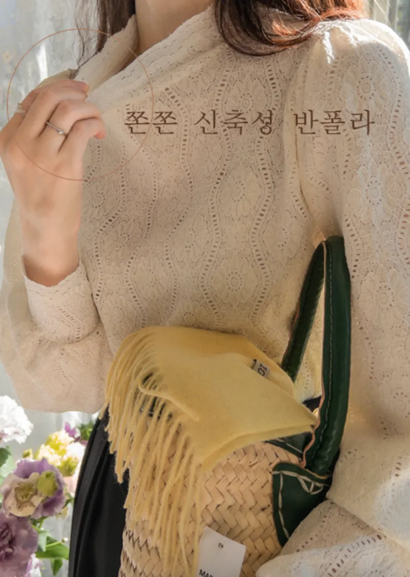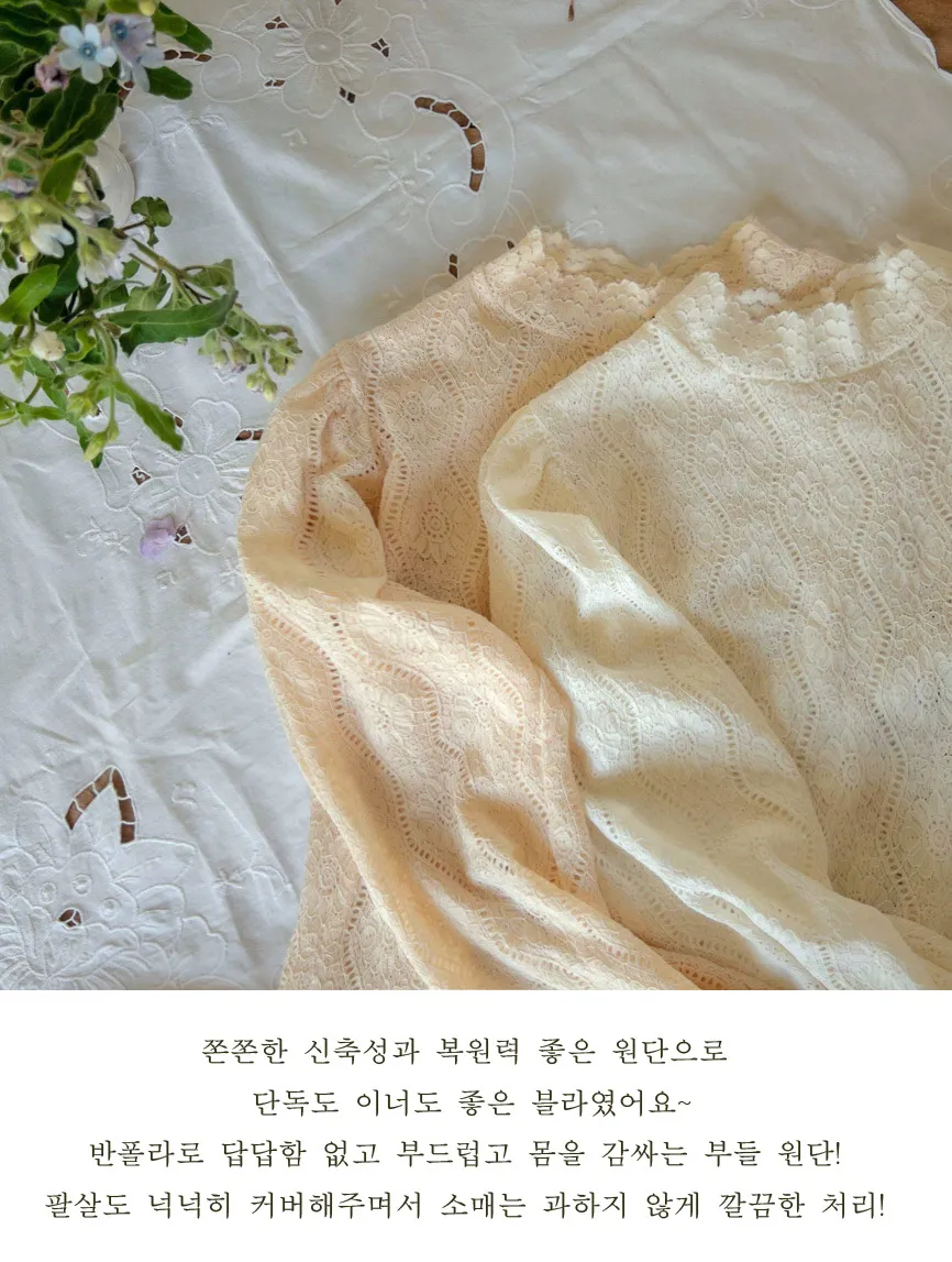 浪漫蕾絲花朵柔軟彈性可內搭半高領上衣