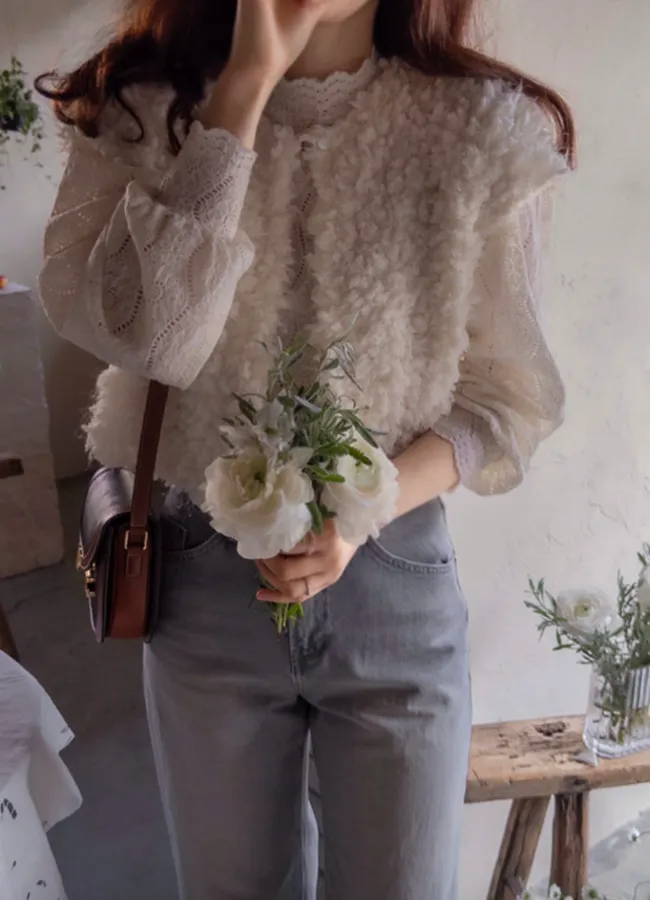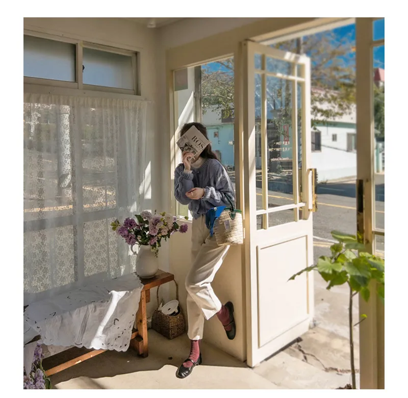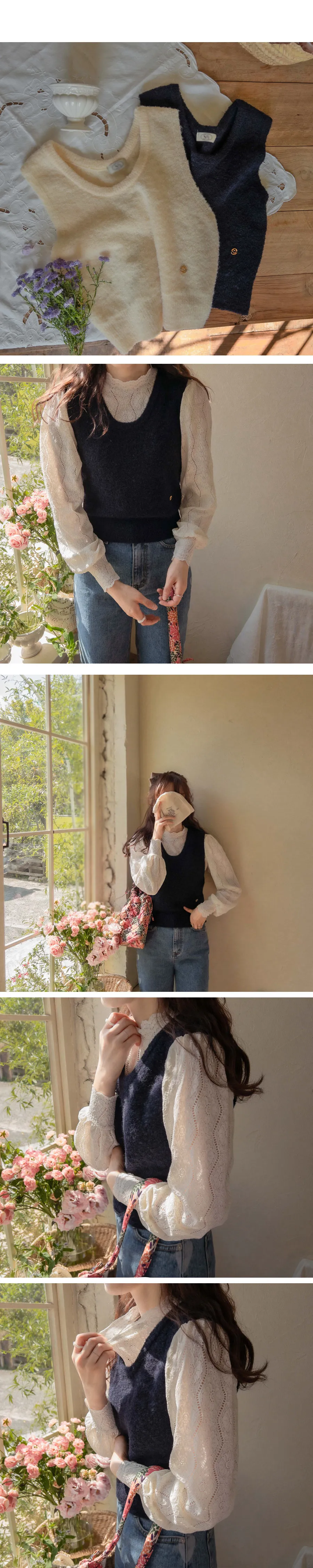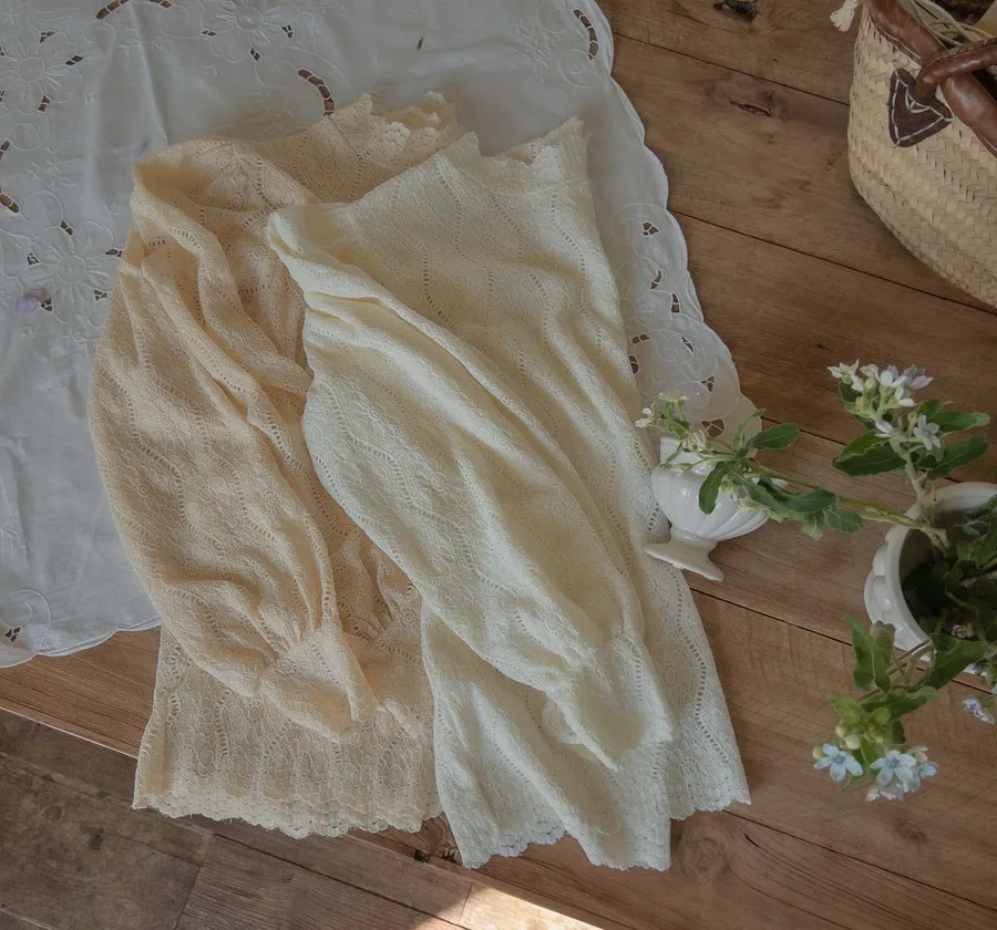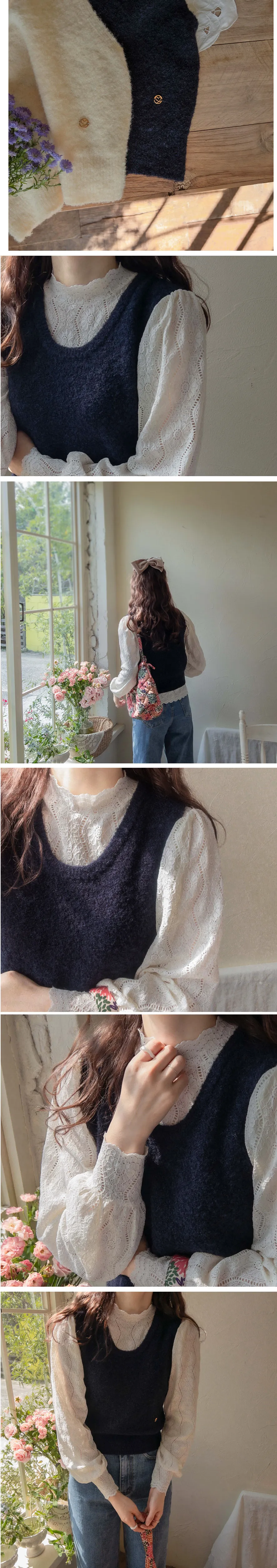 浪漫蕾絲花朵柔軟彈性可內搭半高領上衣