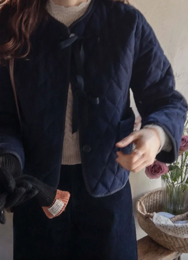 可愛獨特綁帶設計絎縫鋪棉保暖外套
