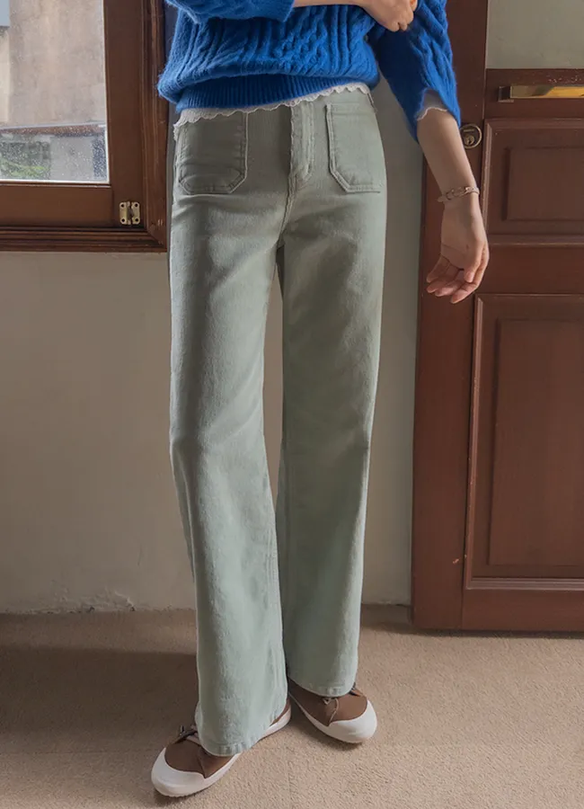 秋冬日常舒適前口袋設計燈芯絨休閒褲