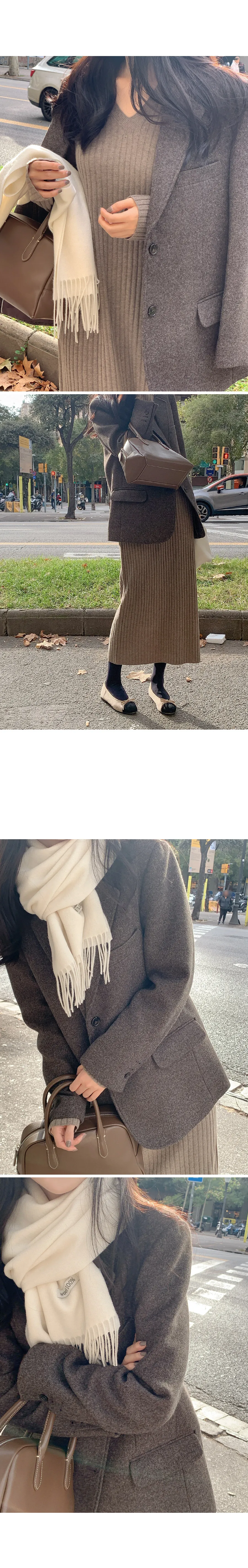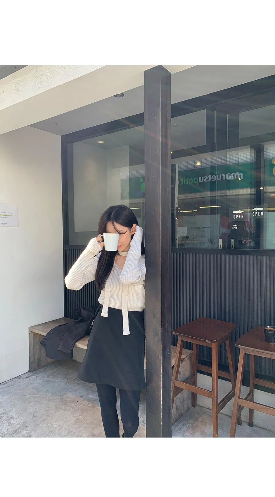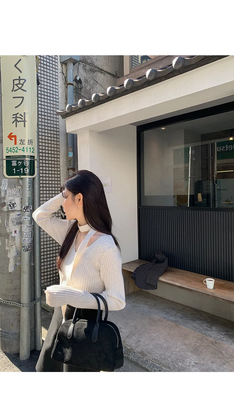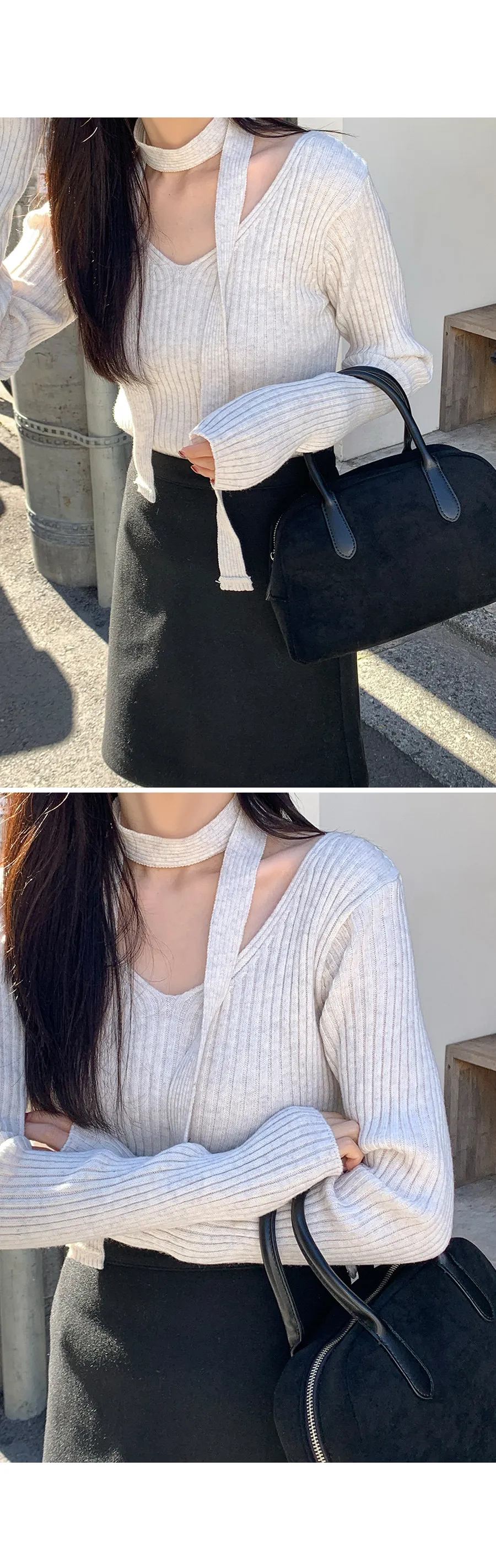 感性柔美V領圍巾羅紋修身版型針織上衣