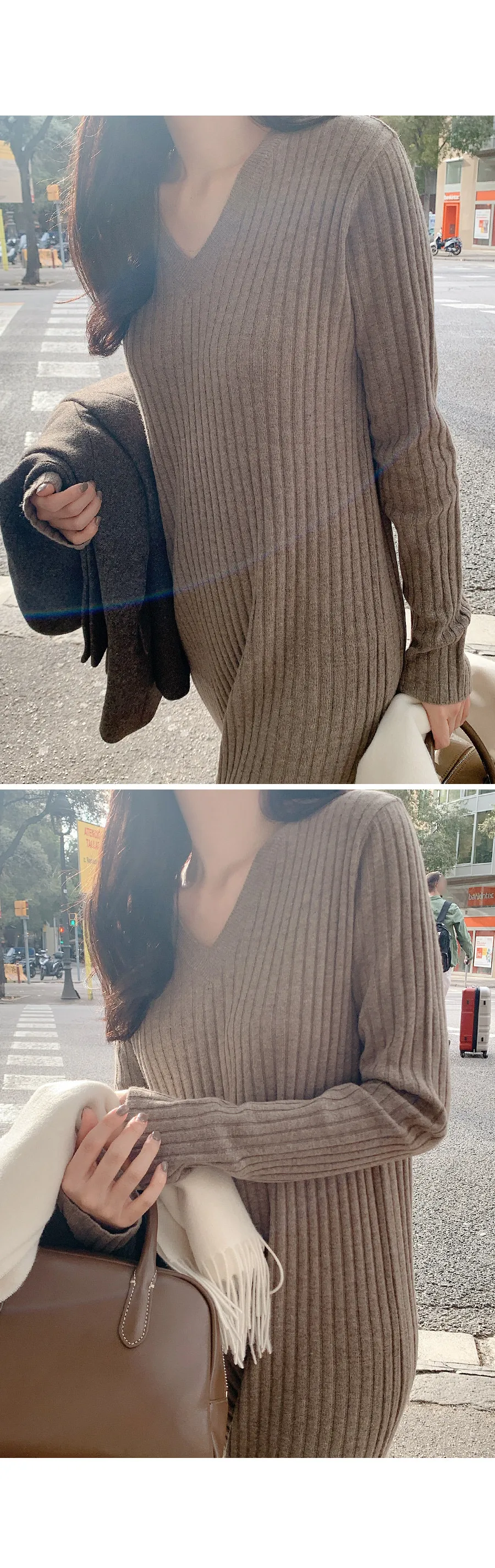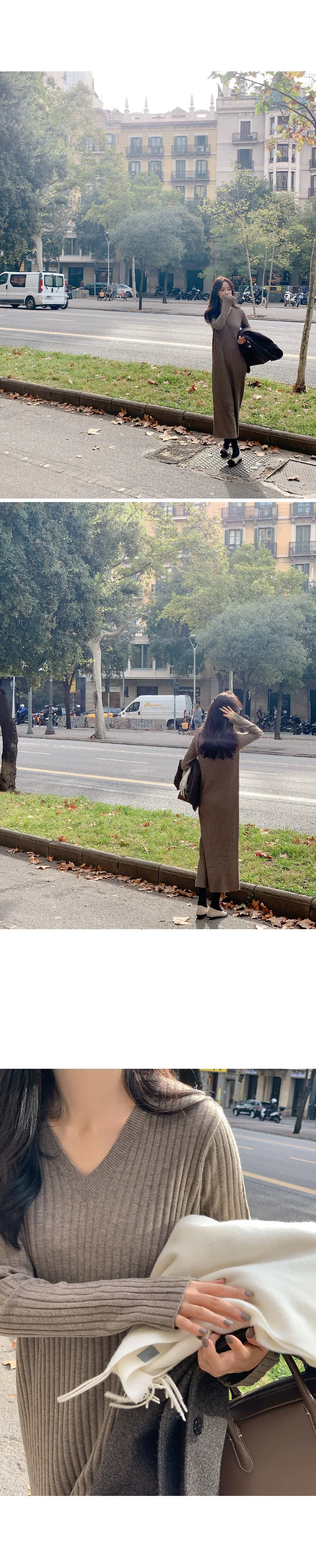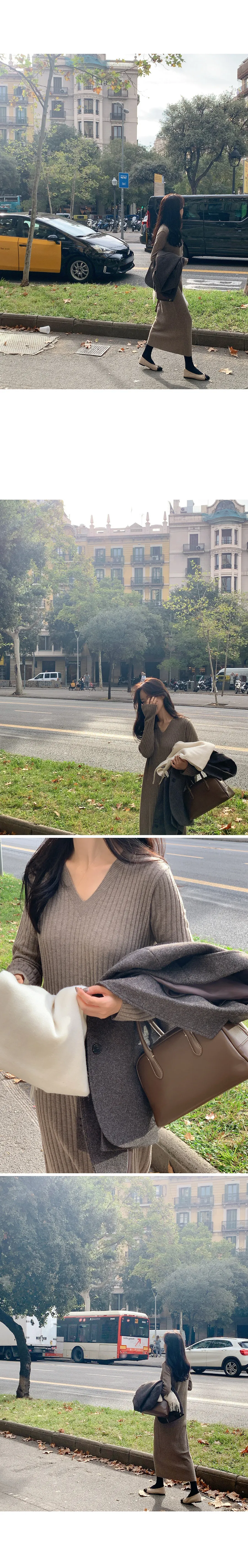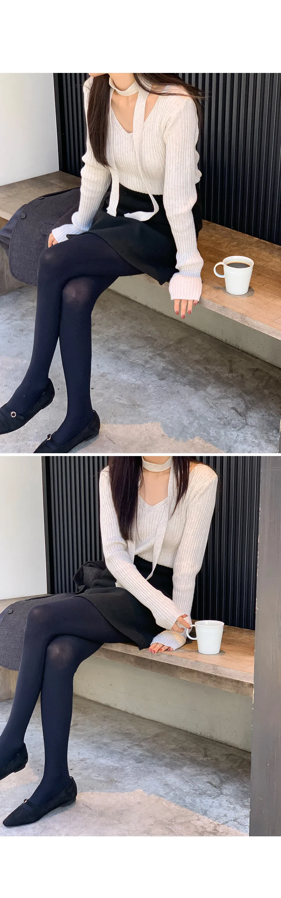 感性柔美V領圍巾羅紋修身版型針織上衣