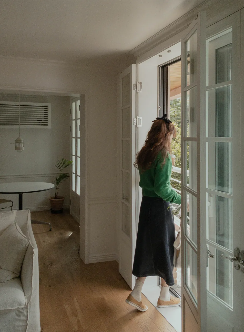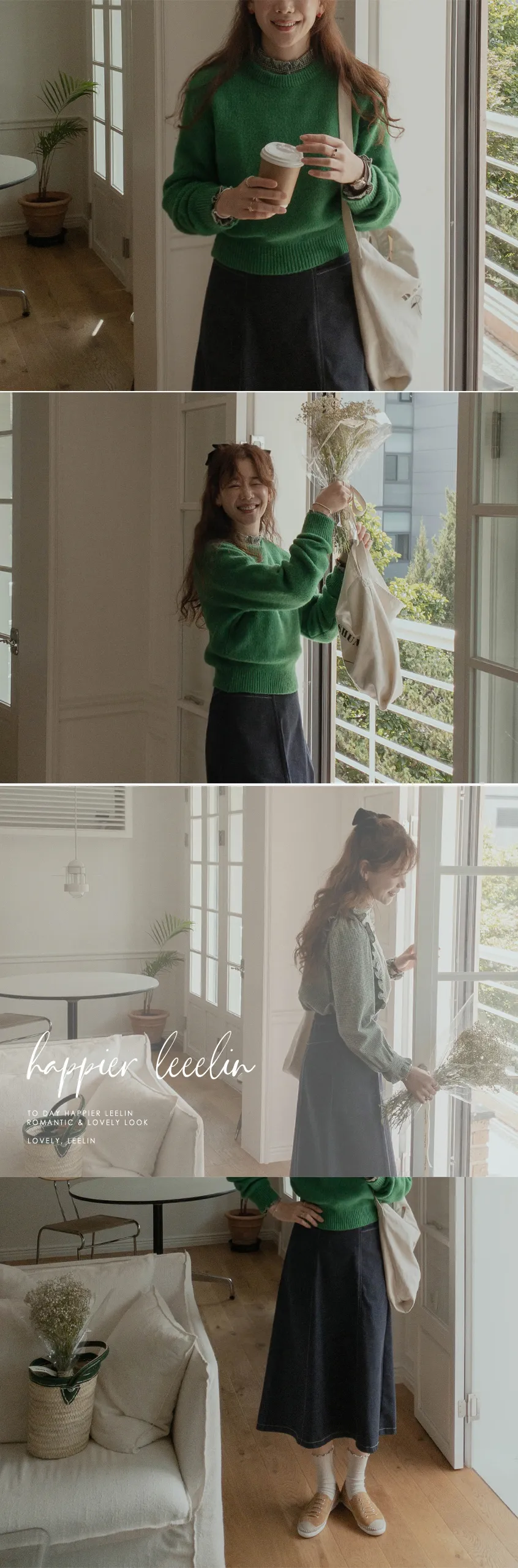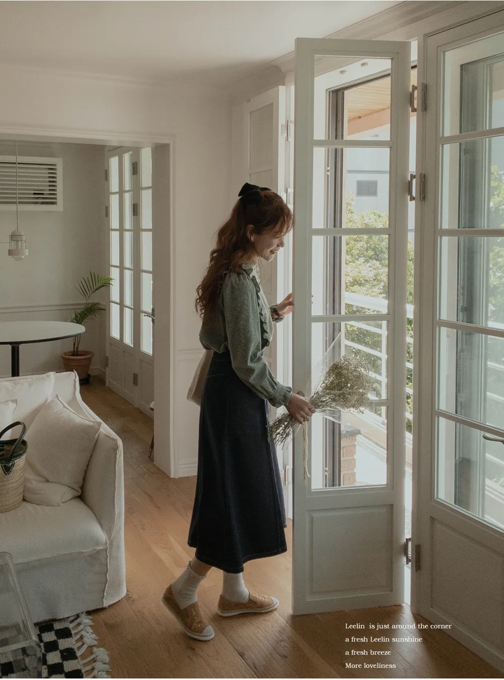 [格紋圖案排扣上衣][可愛的褶邊細節][即使在冬天也很享受的羊毛材質][即使接觸裸露的皮膚也很柔軟~]