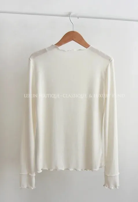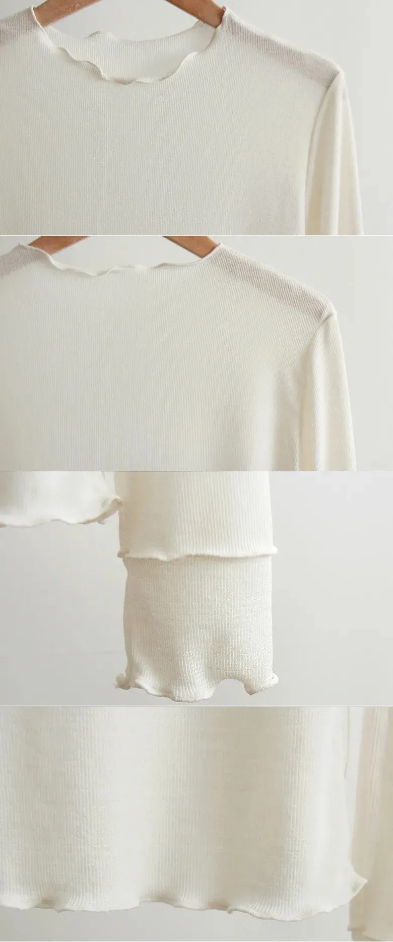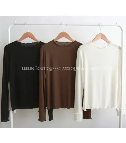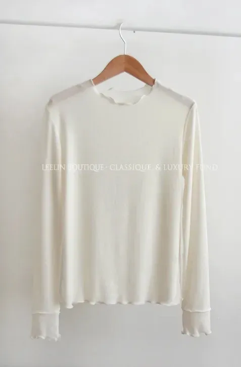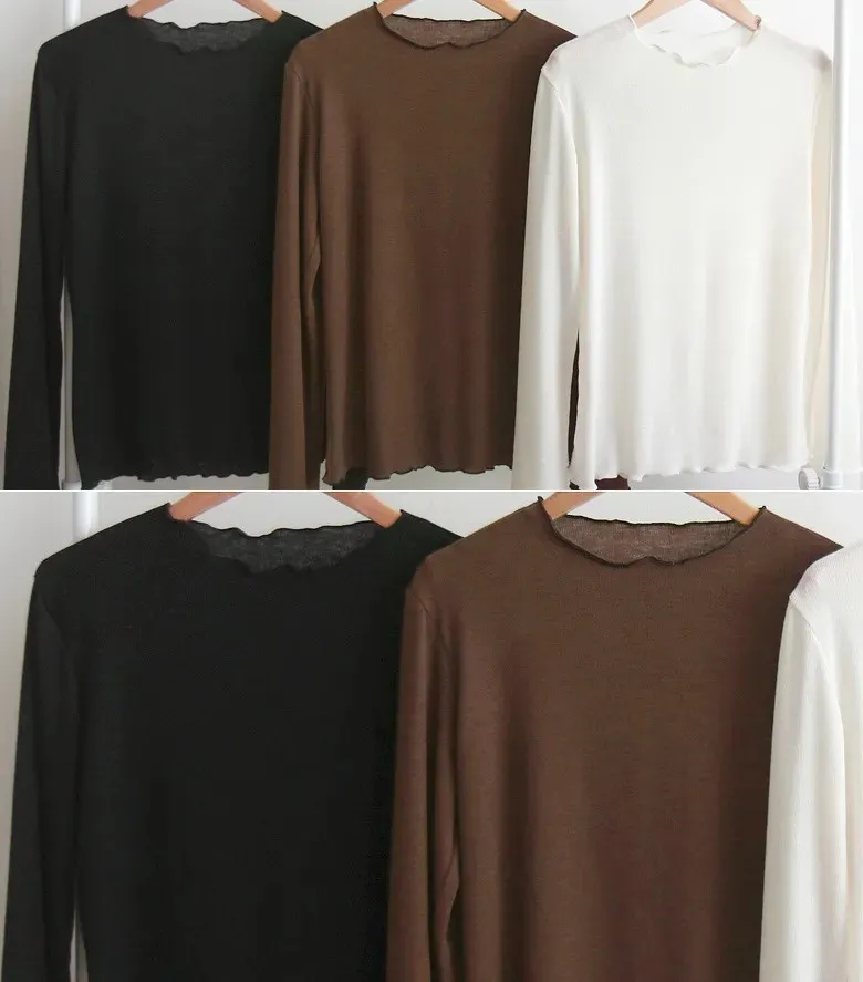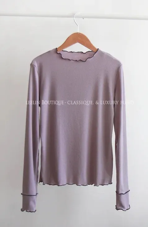 [頸部和袖子:波浪邊上衣] [7%氨綸彈性] [單穿也很適合的緊彈性上衣] [秋天的顏色,舒適合身的基本款]