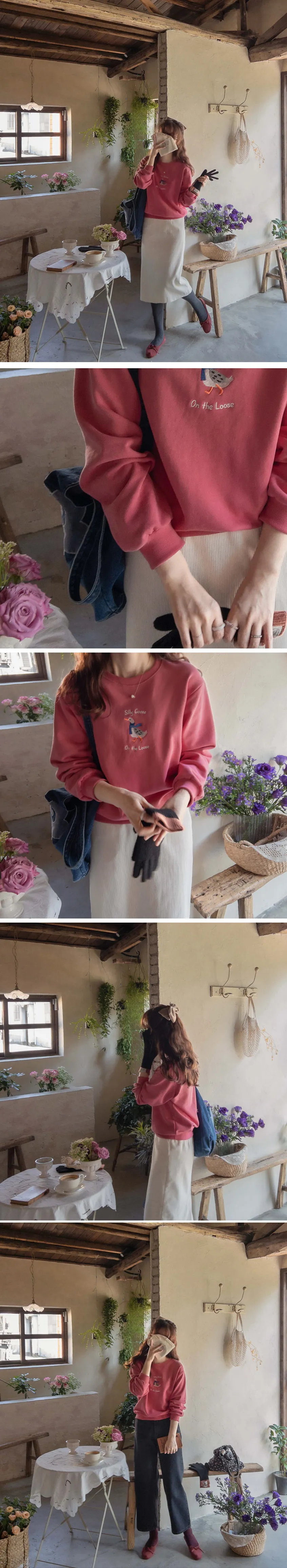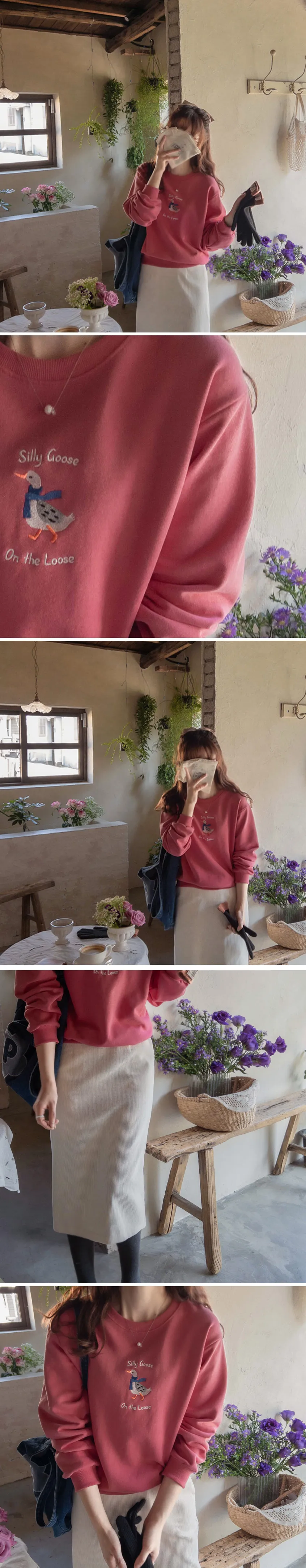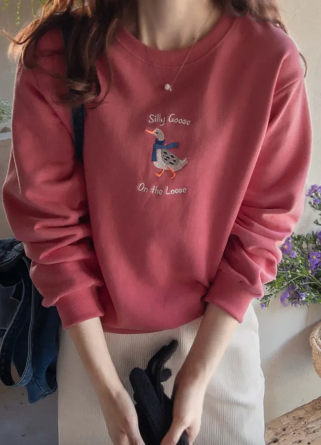 可愛戴圍巾的鴨子刺繡休閒上衣