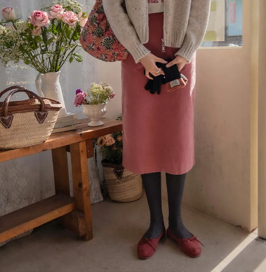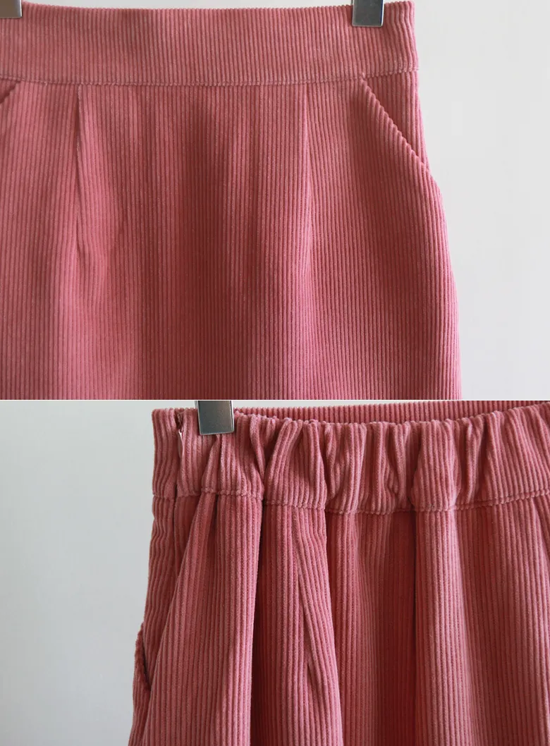 [舒適合身,長度不會太長,讓您可以無拘無束地穿著!][聚酯纖維襯裡][腰部後部有靈活的帶子,舒適][側拉鍊配置][燈芯絨面料,即使在即將到來的季節也保暖][修身線條感!