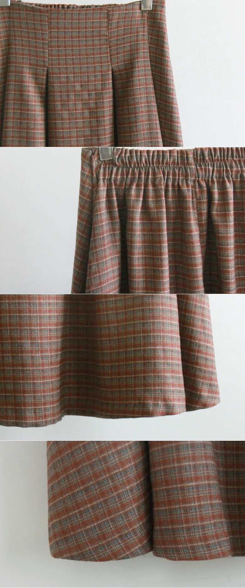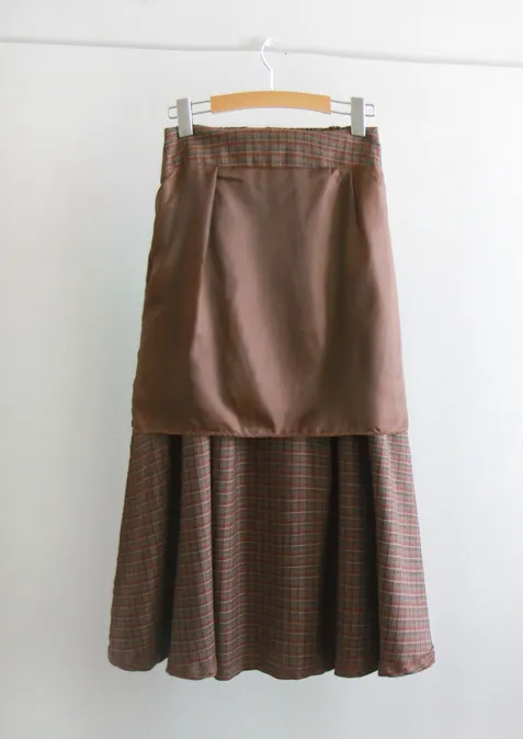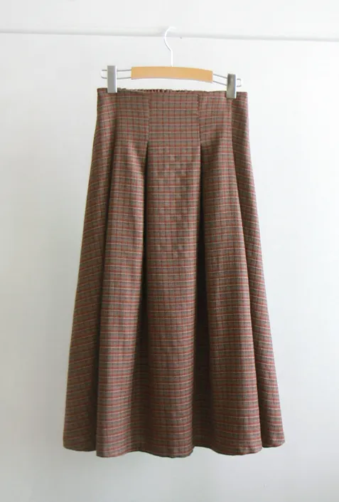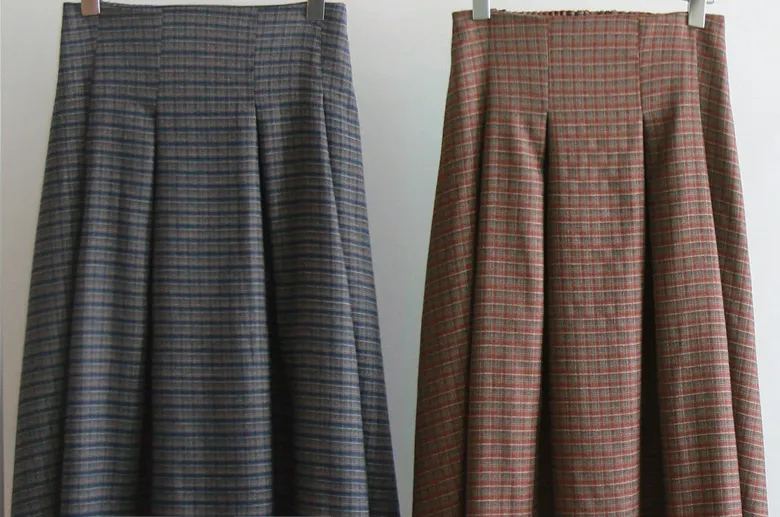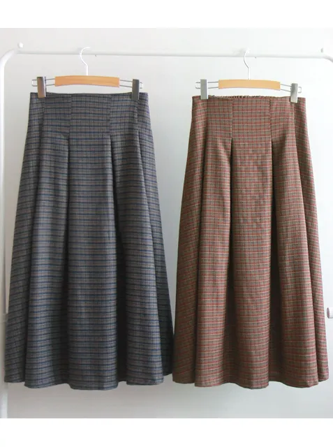 [聚酯襯裡][側拉鍊配置][腰部後帶處理][裙子前面半褶皺,打造邊緣貼合][精緻的設計,帶有季節性的格紋圖案][非常適合與時尚的色彩搭配] [推薦作為提升風格的單品]