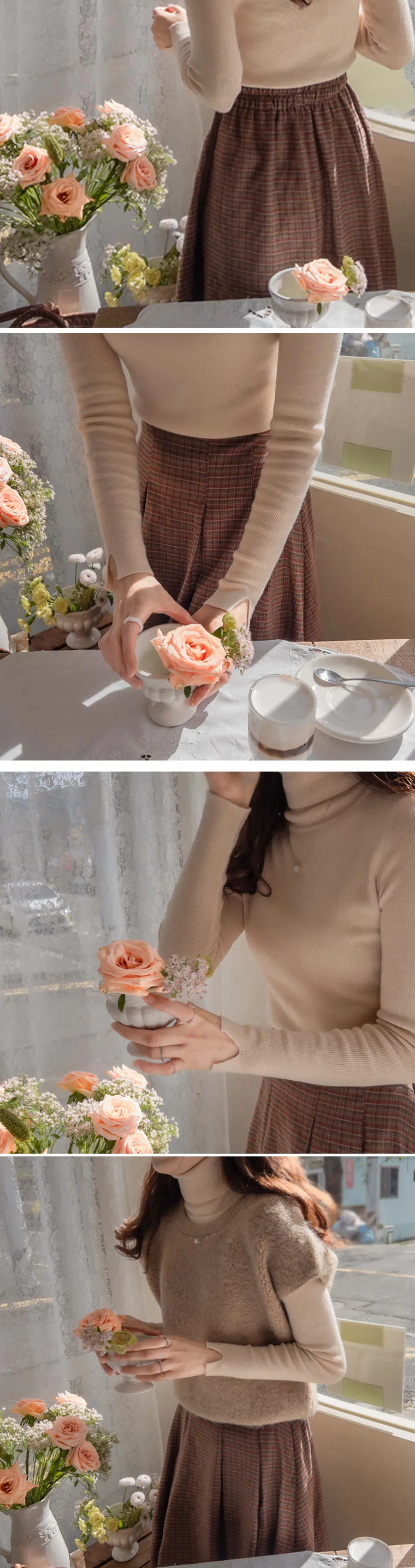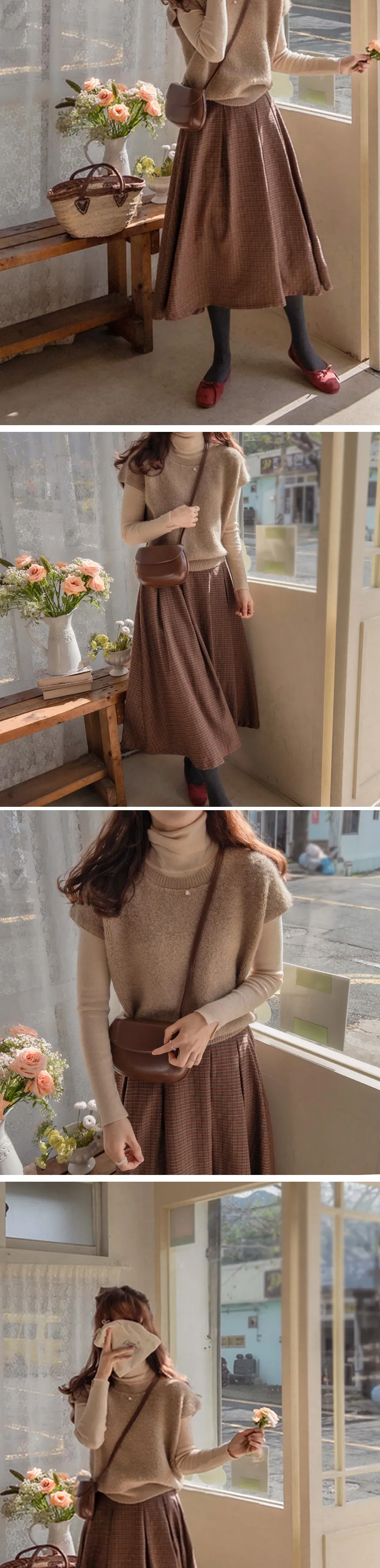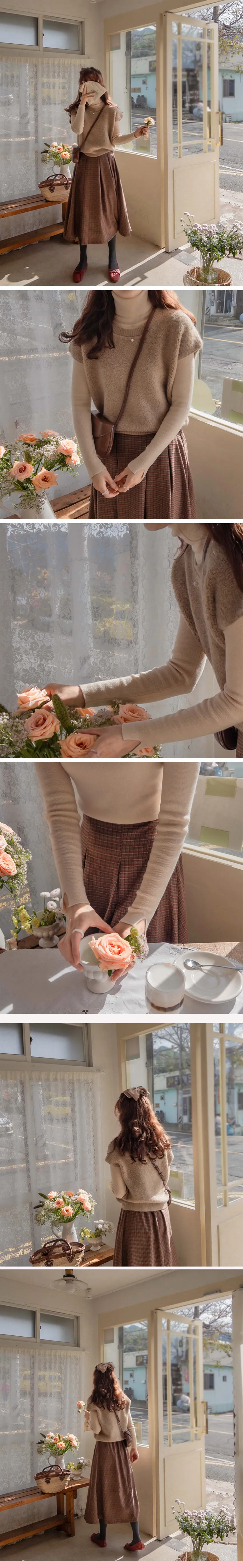 精緻風格圓潤摺邊格紋中長裙