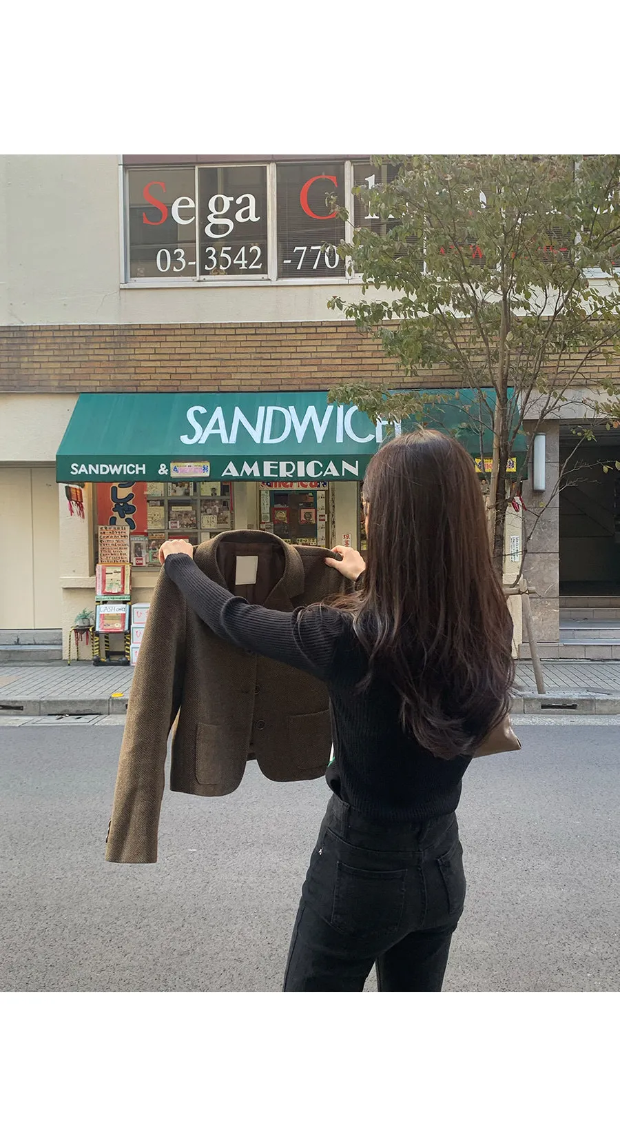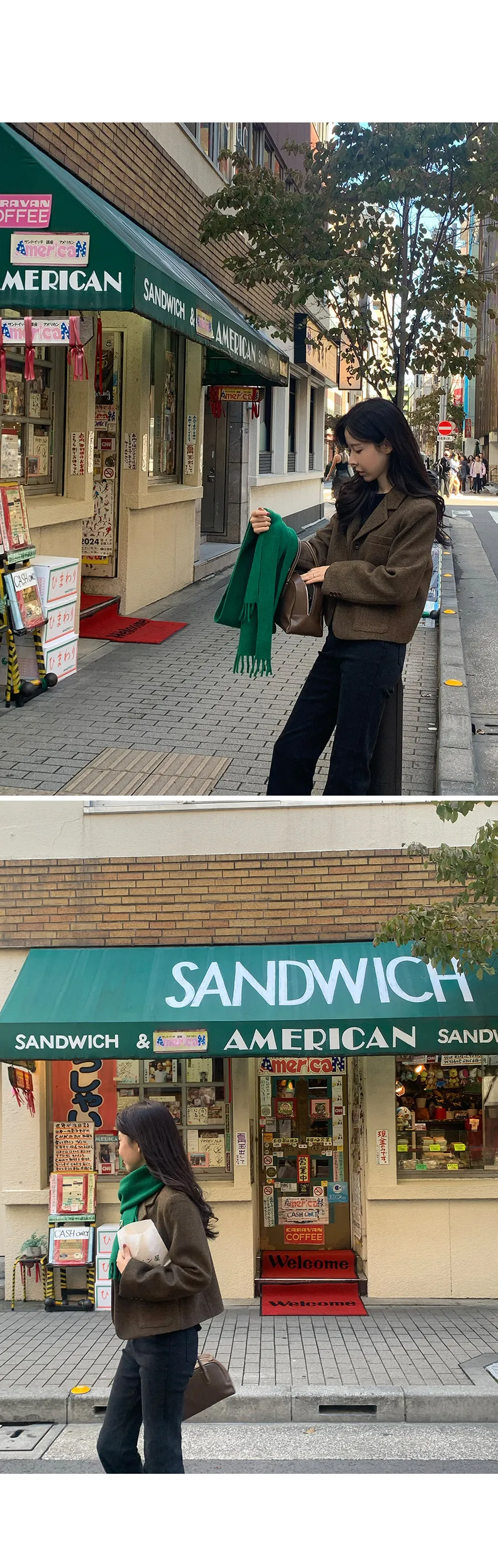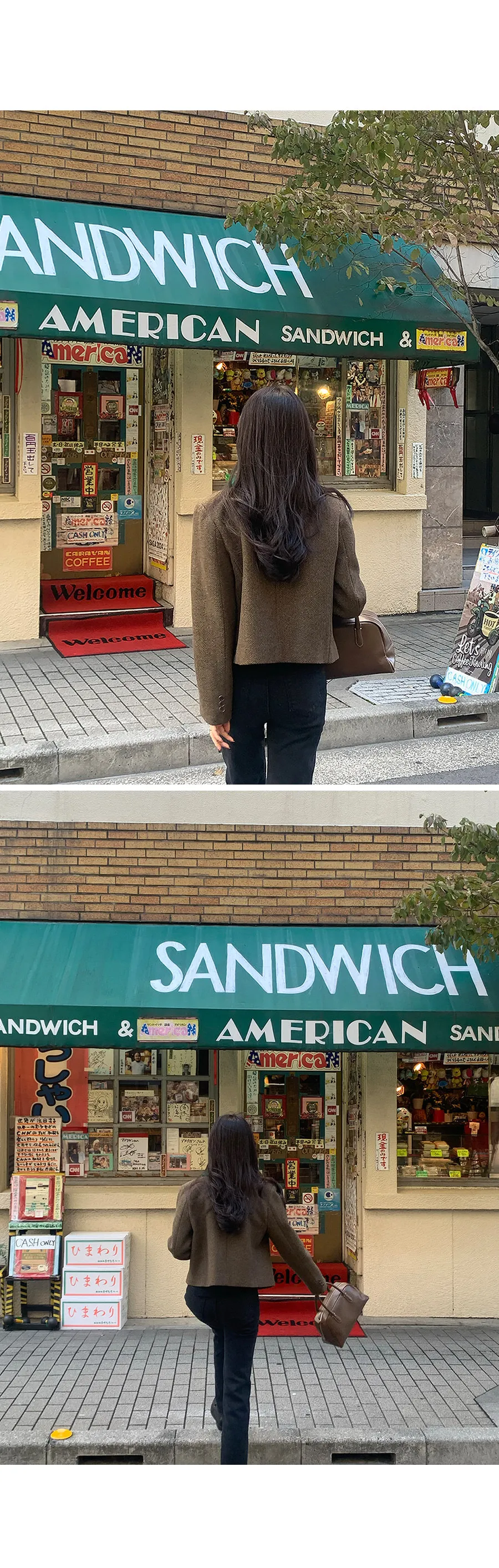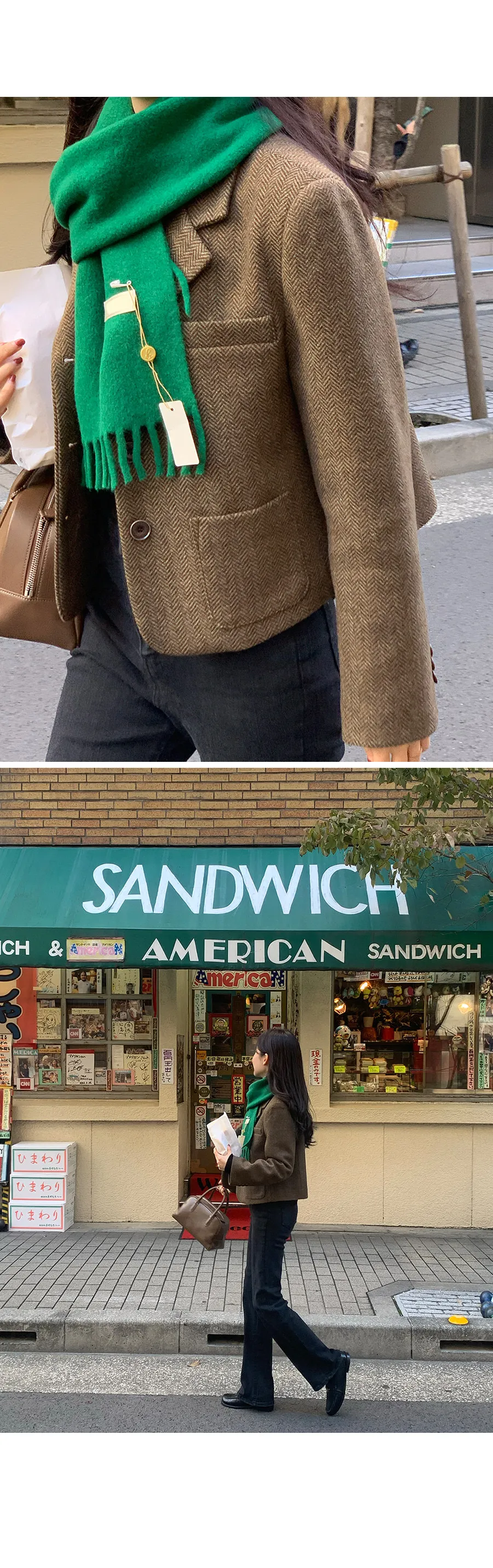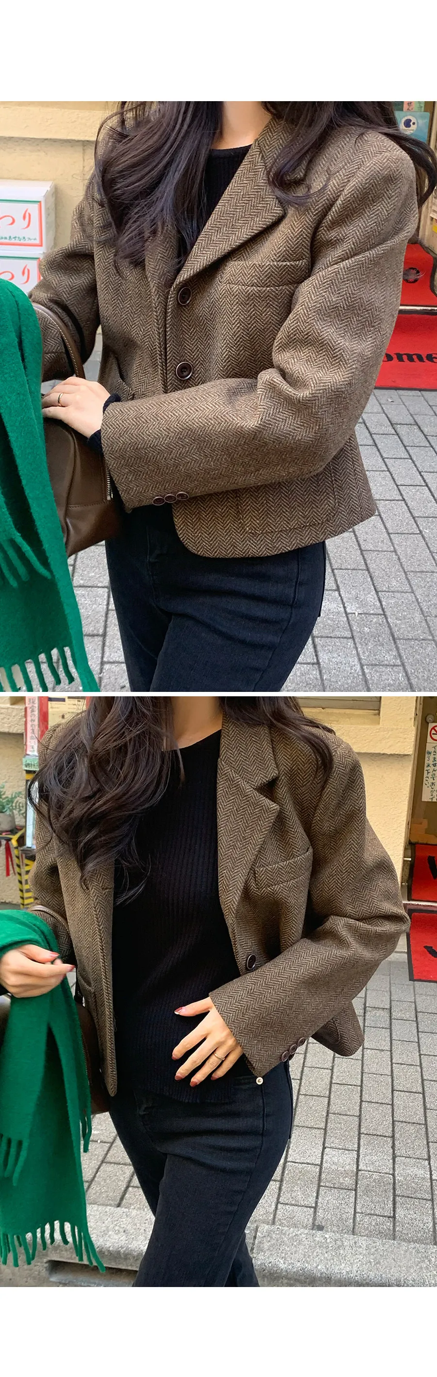 【80%羊毛】羊毛外套搭配時尚穿搭!微妙的人字形圖案因其奢華感而引人注目,半短款的長度使其非常適合感官協調:)