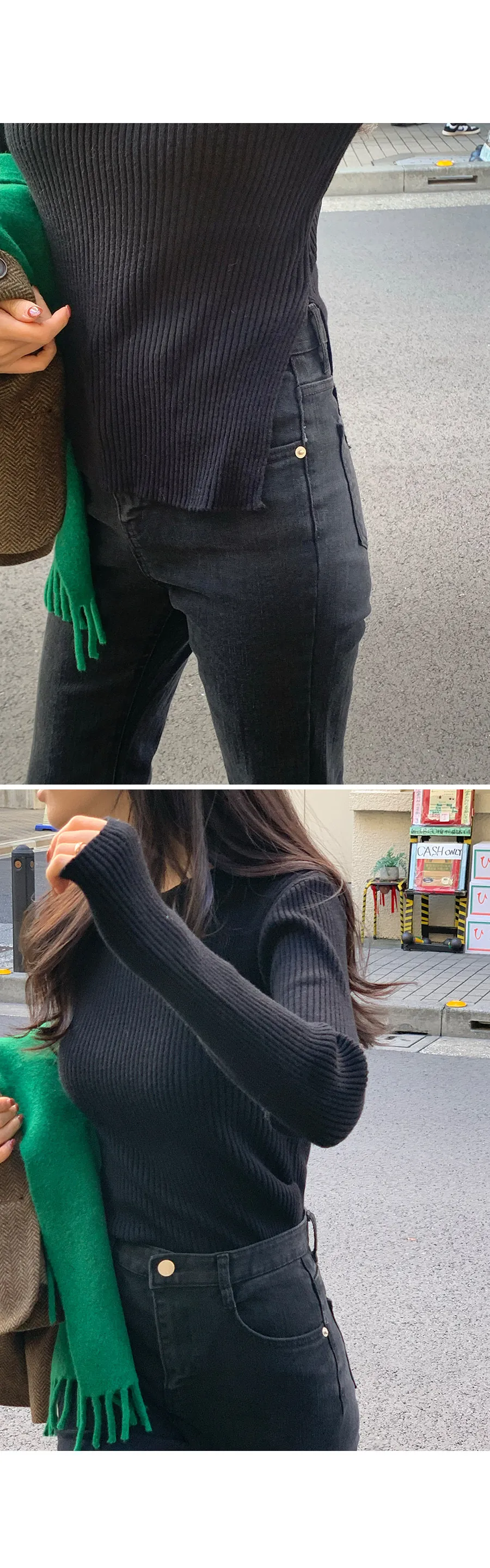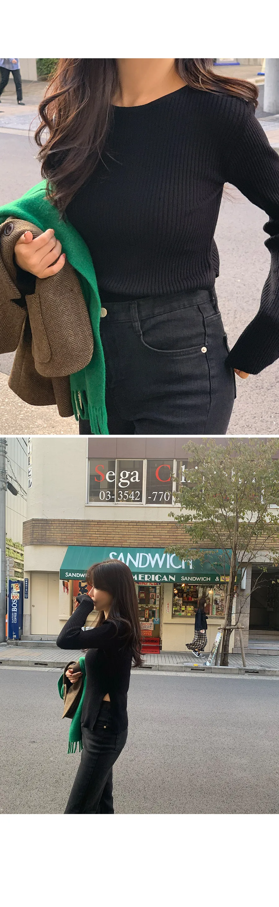 簡潔線條側開衩修身羅紋針織上衣