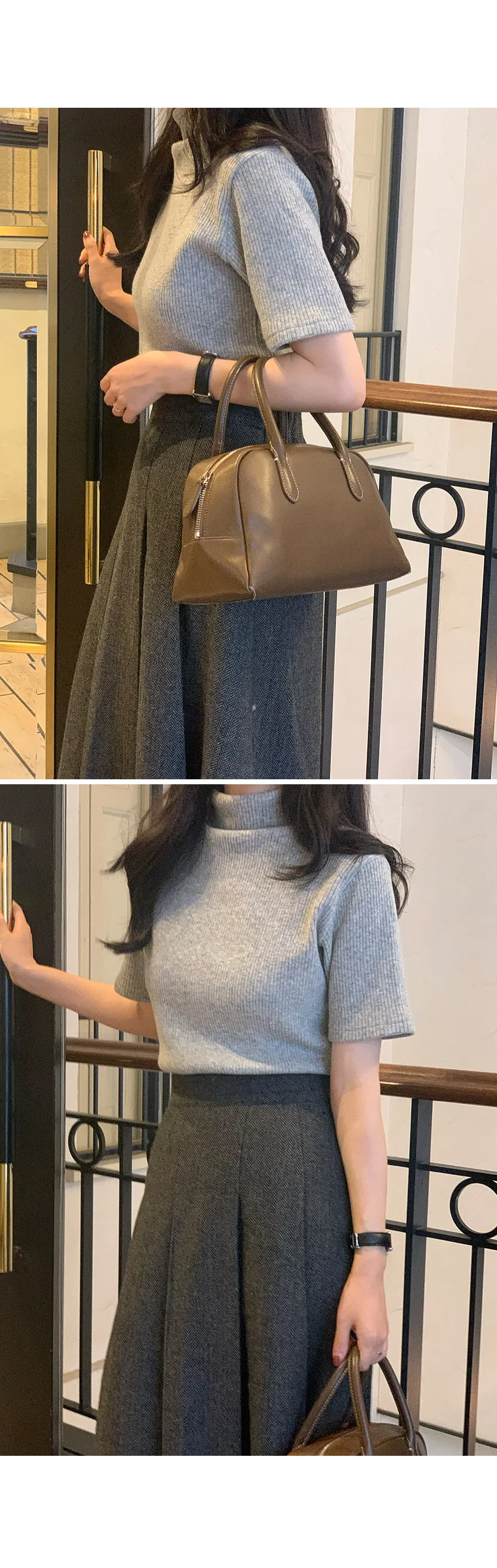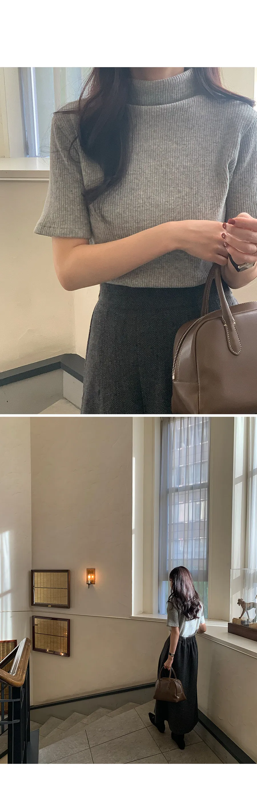 別緻氛圍厚實保暖半高領羅紋針織上衣