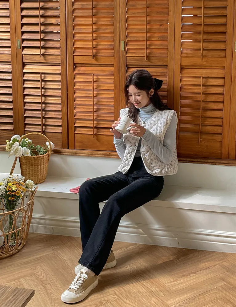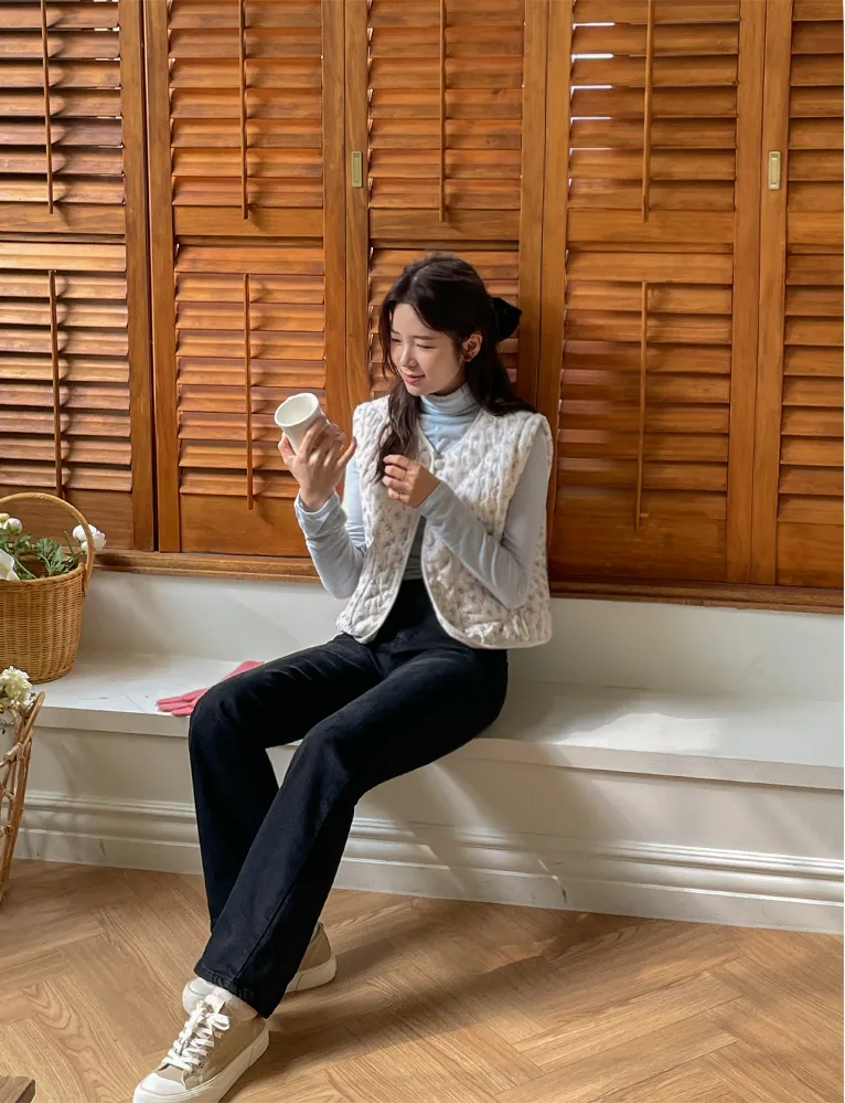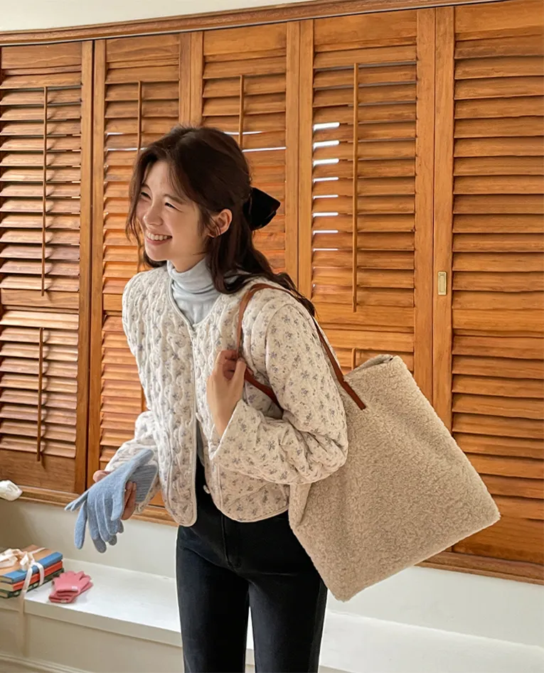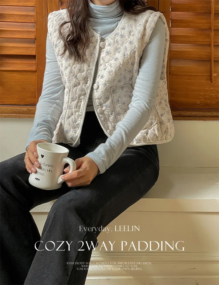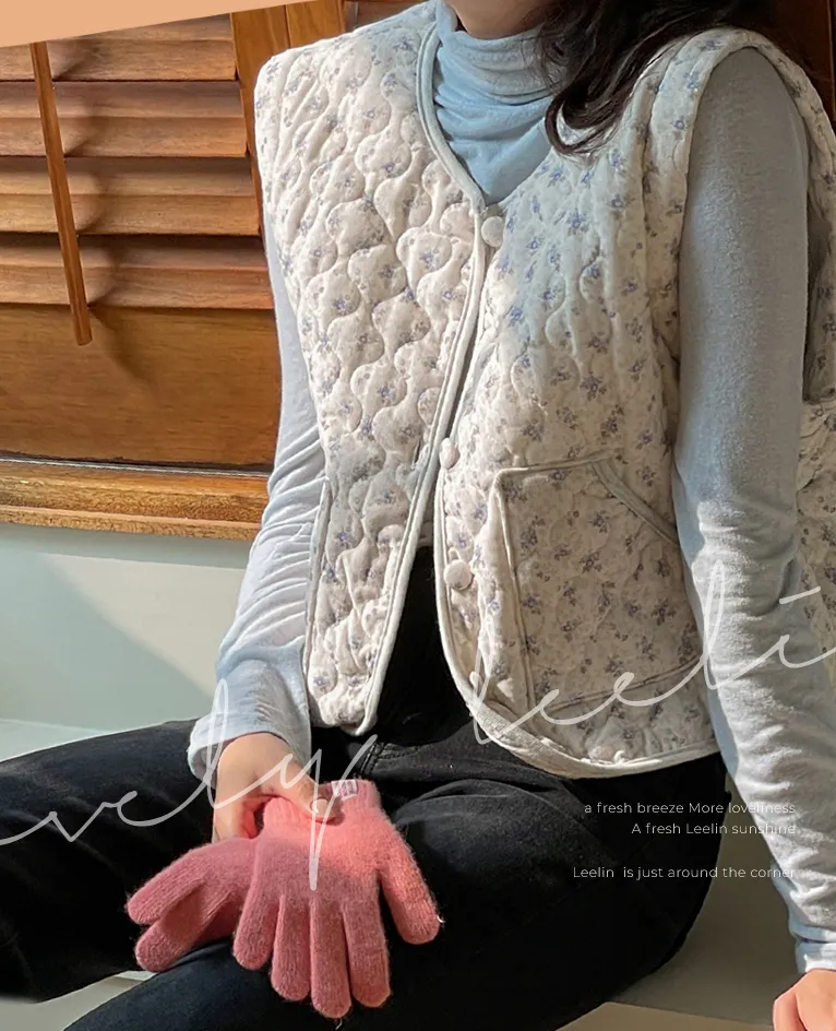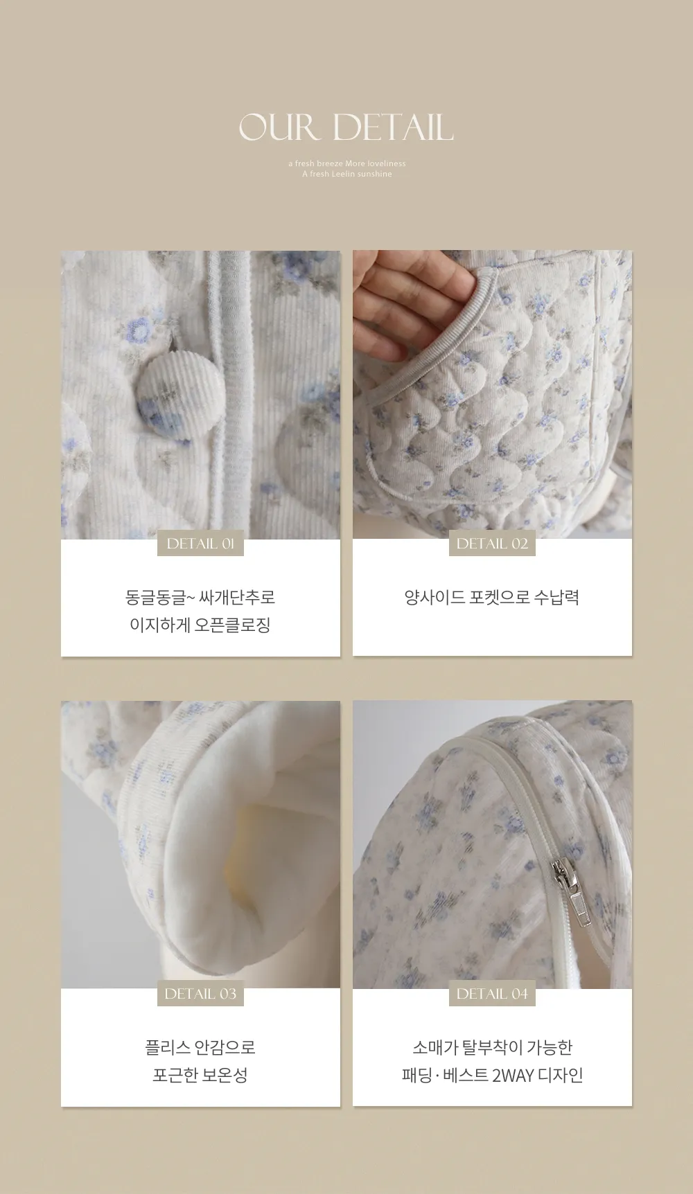 兩穿可拆式溫暖柔和花朵燈芯絨內襯背心外套