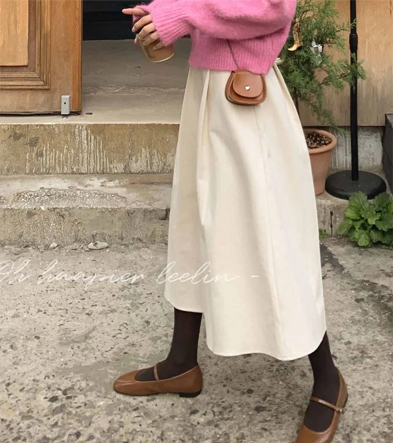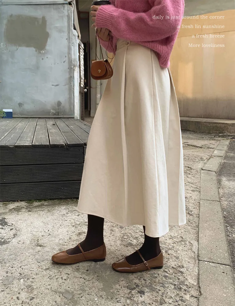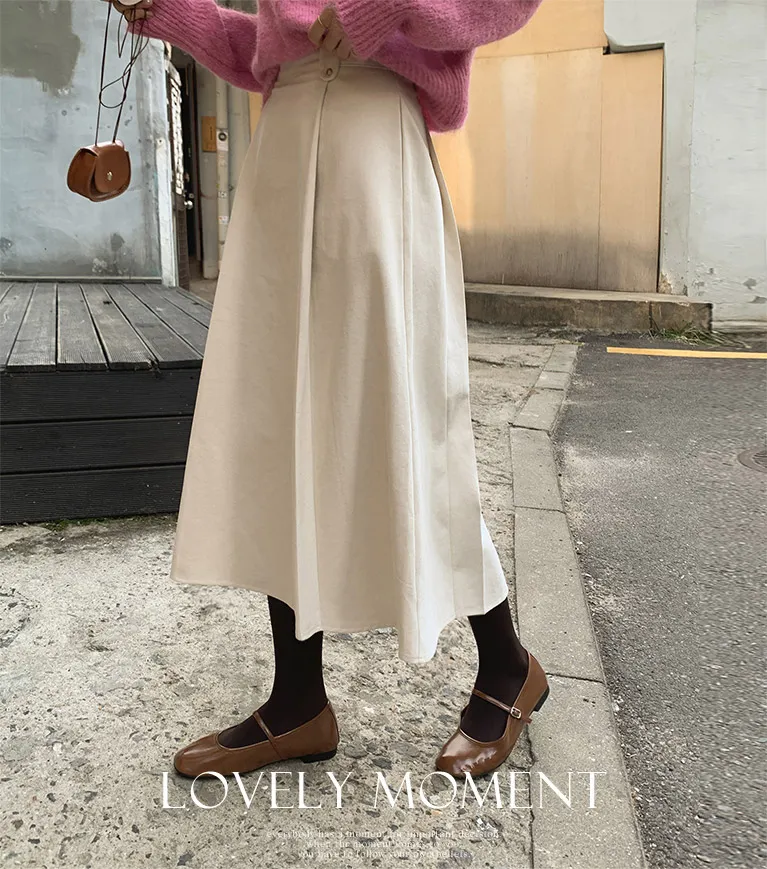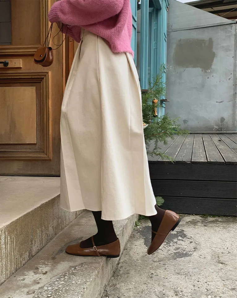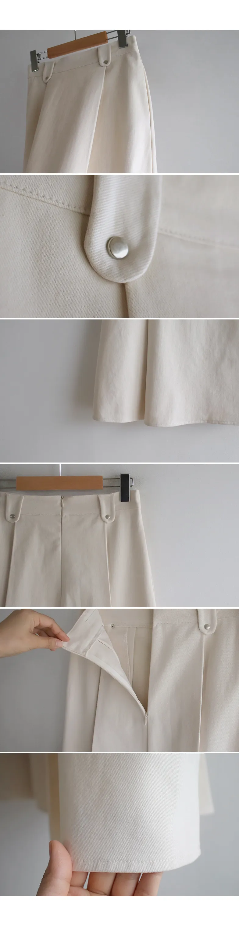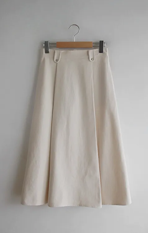 獨特鉚釘皮帶線A字輪廓針褶中長裙 現貨M米白