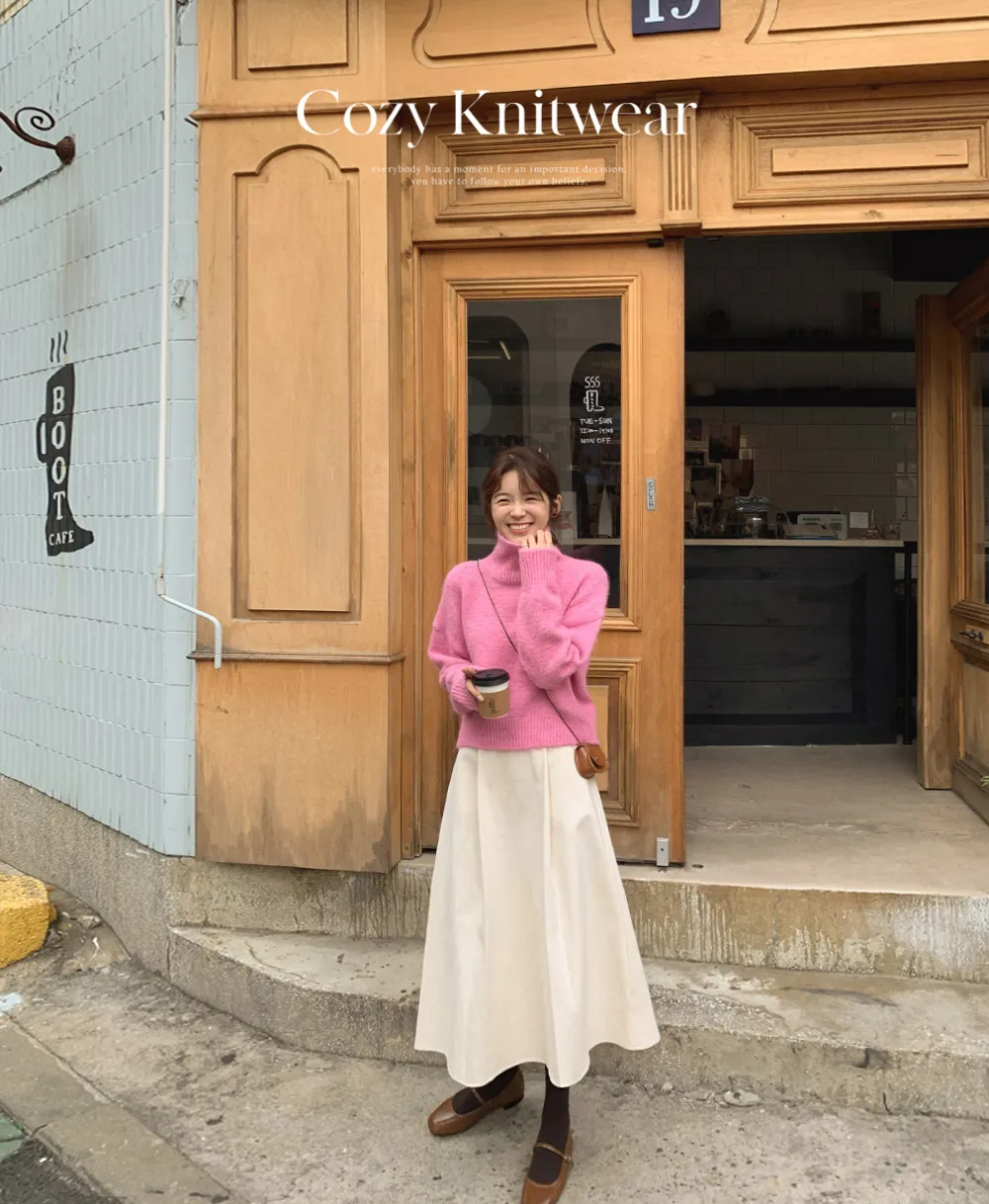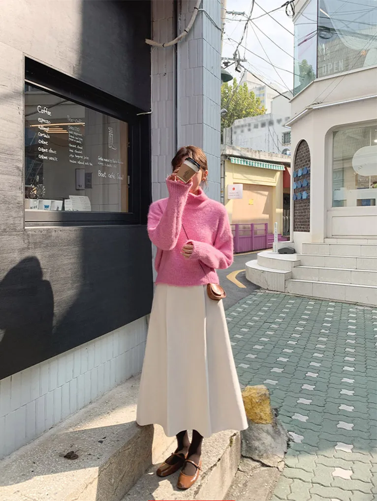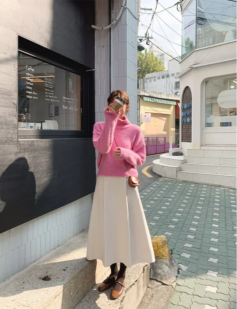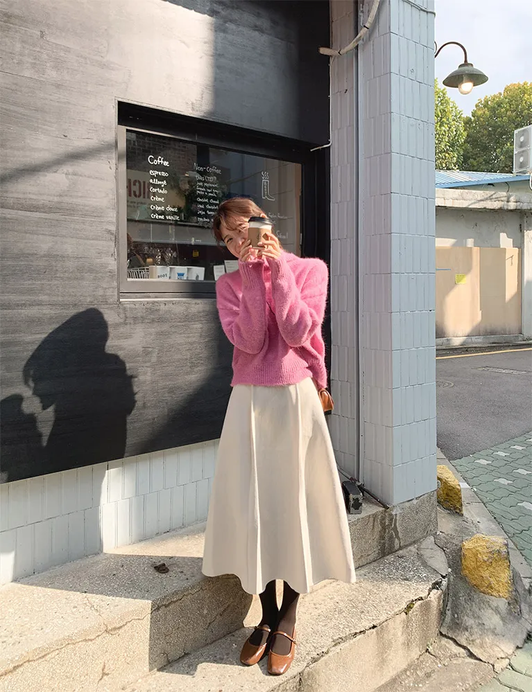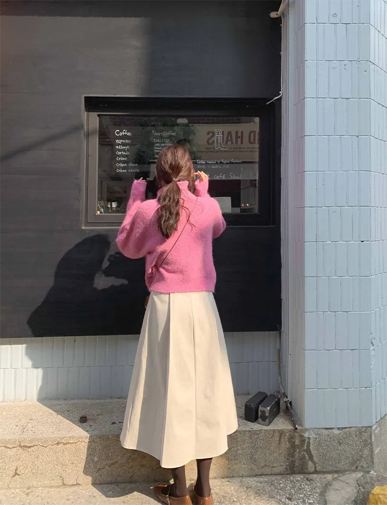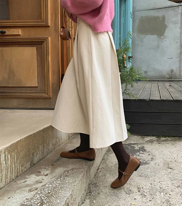 獨特鉚釘皮帶線A字輪廓針褶中長裙 現貨M米白