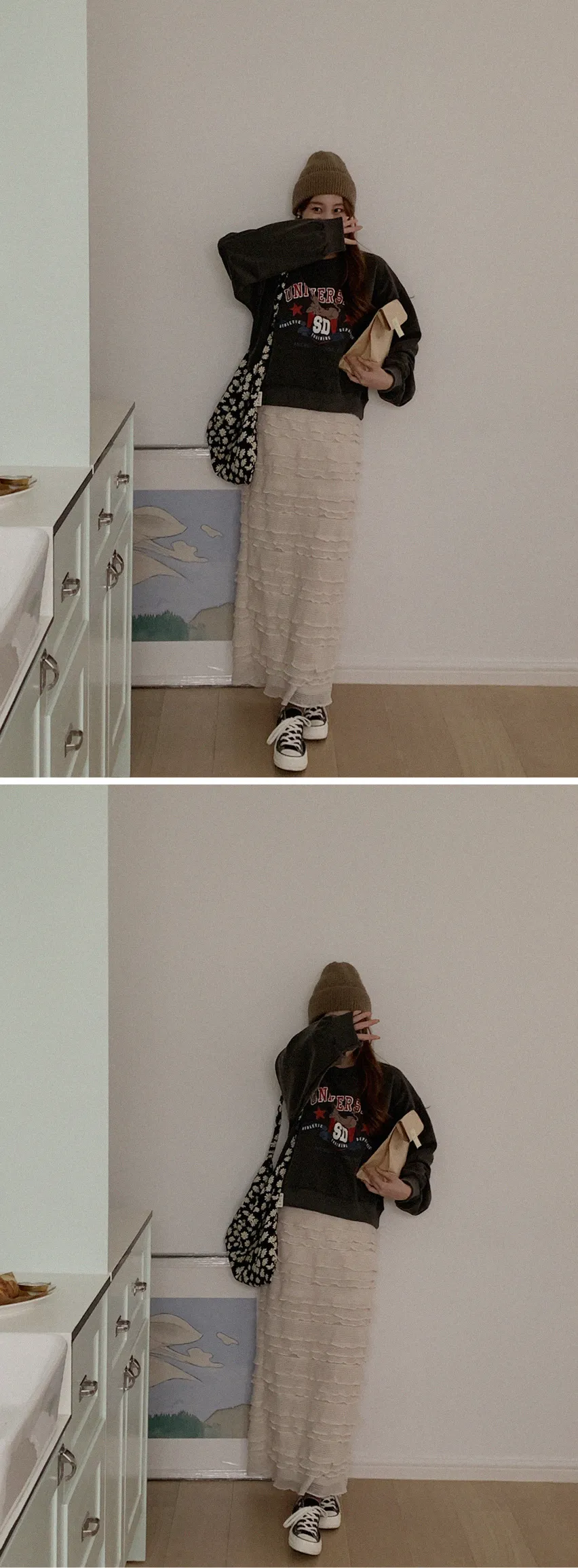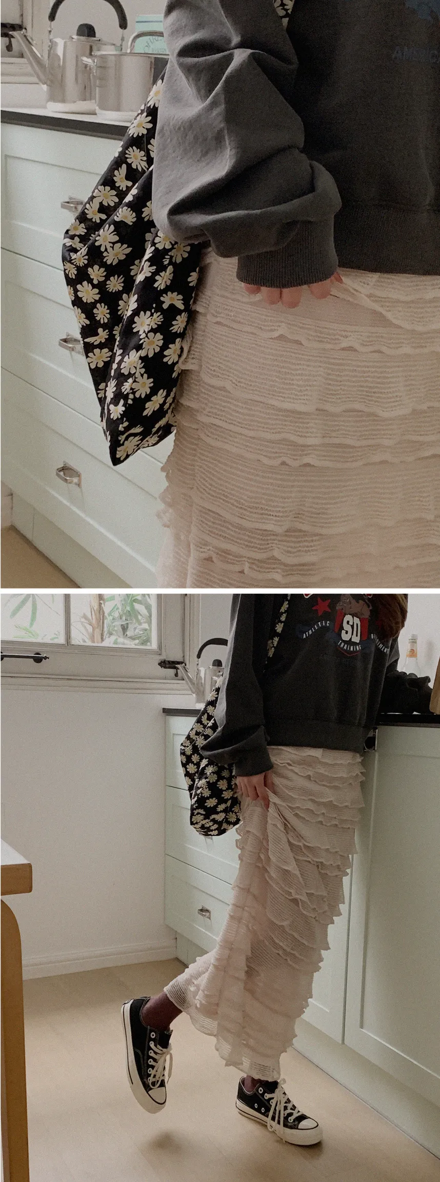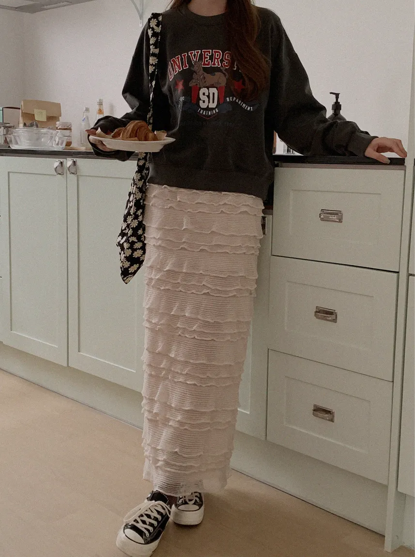像蕾絲一樣的層次裙擺。與休閒上衣穿搭