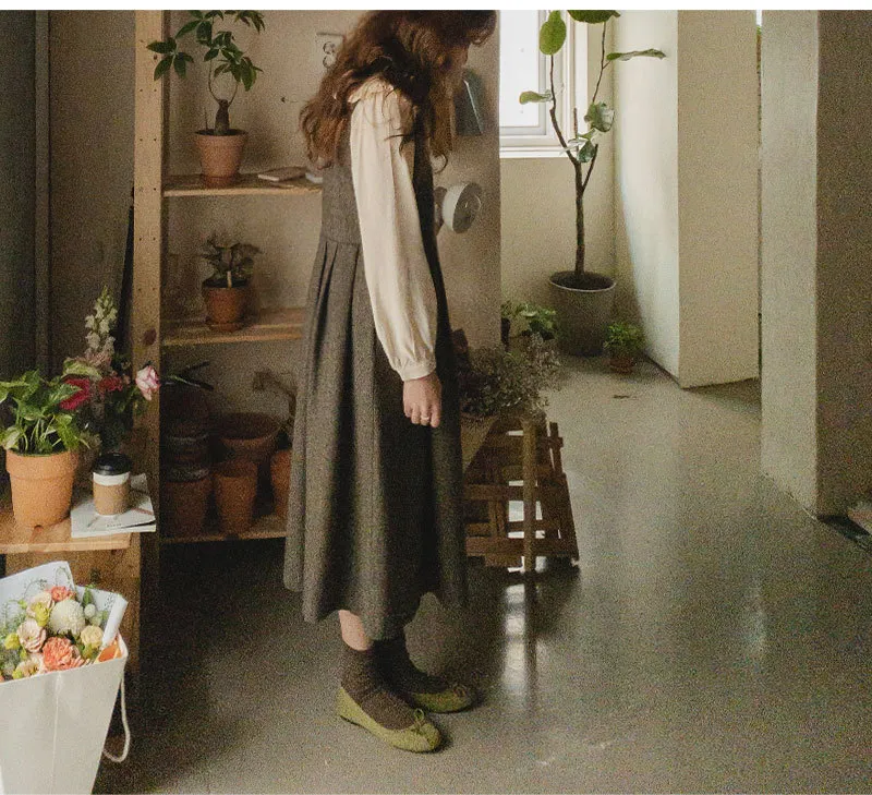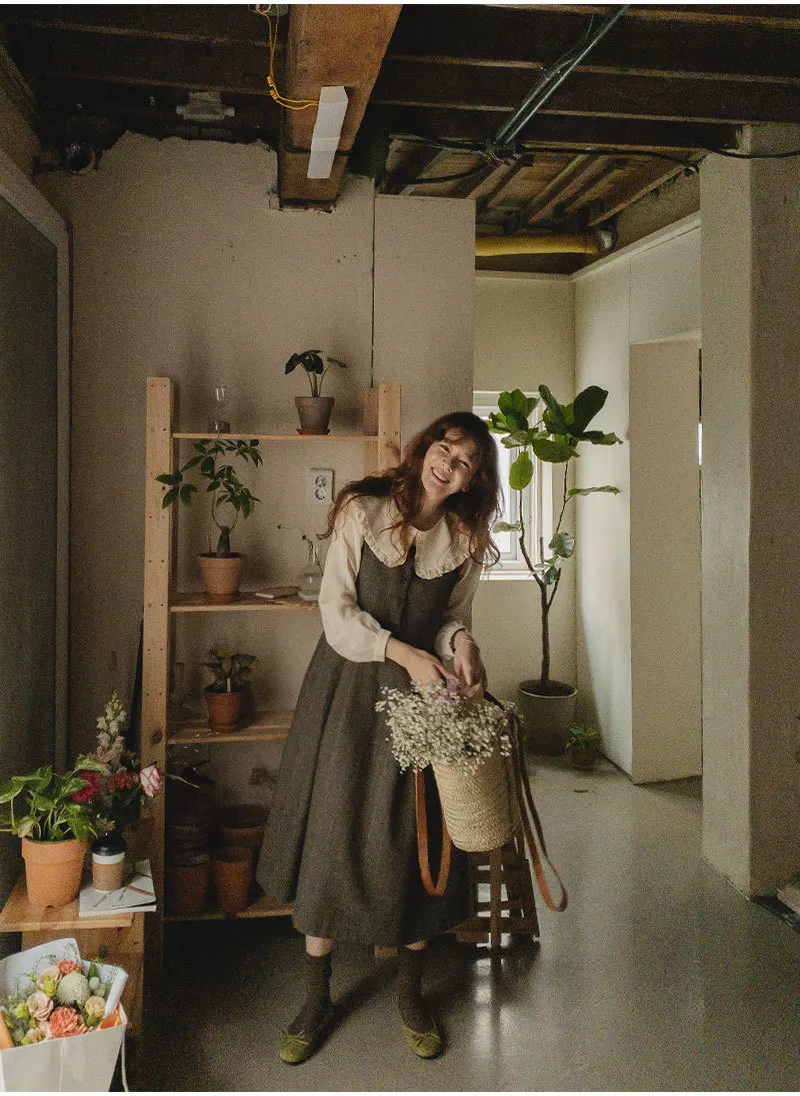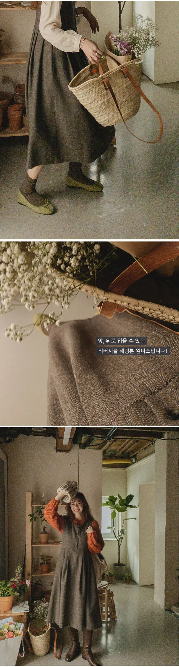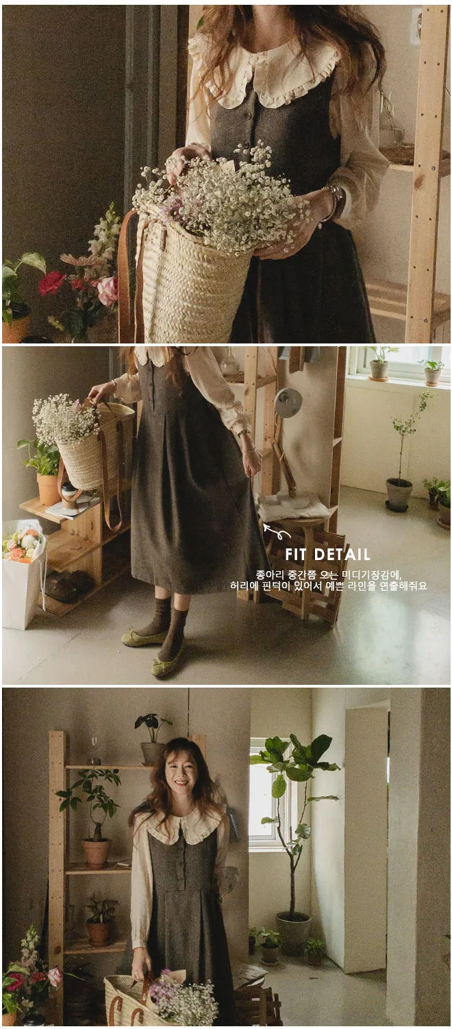前後兩穿排扣細摺人字紋連身裙