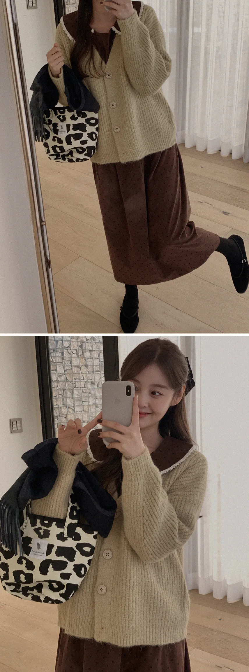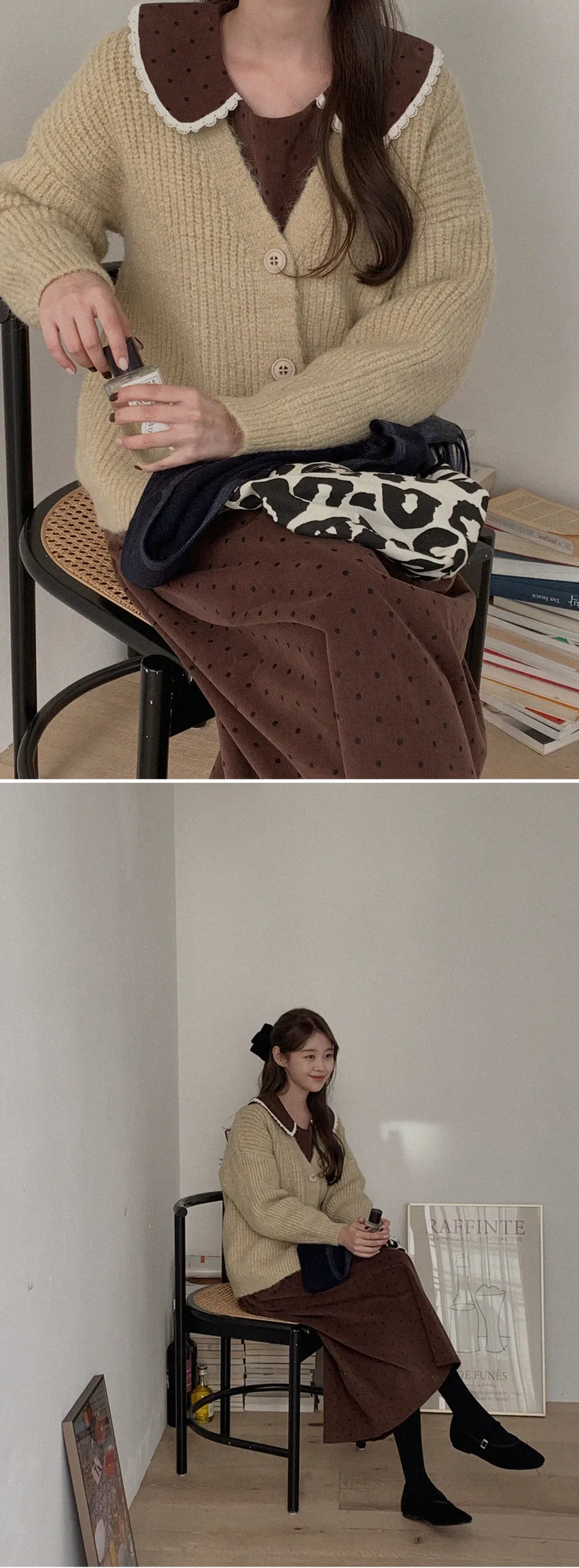 可愛的連身裙,採用柔軟的燈芯絨面料和可愛的迷你圓點:)這是一種即使在冬天也可以穿著溫暖可愛的面料。適度寬鬆的領口和可愛的蕾絲平領,為臉型帶來柔和可愛的感覺。這是一款寬敞的傘擺裙,而且腰線相當寬鬆,因此您可以舒適地穿著一整天。更好的是,您可以透過腰帶調整貼合度。圓點圖案沉穩,給人一種自然可愛的感覺。可以搭配開衫,也可以與外套或襯墊完美搭配,這樣您就可以穿整個冬天♡
