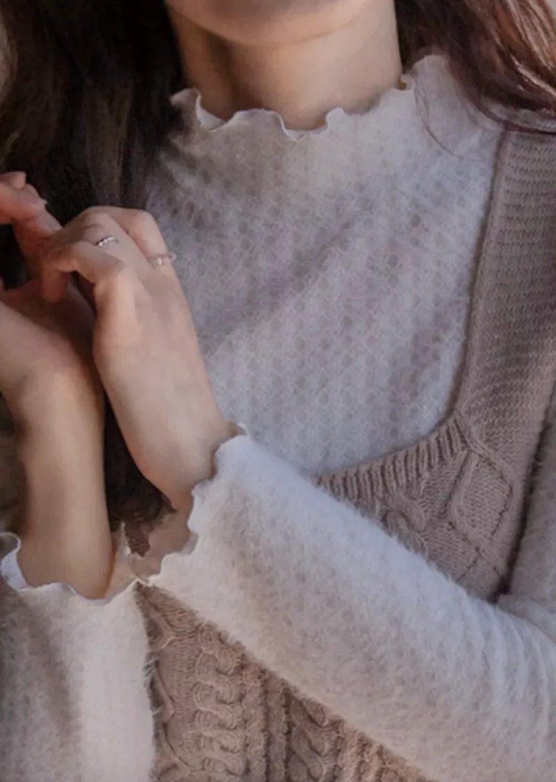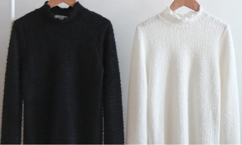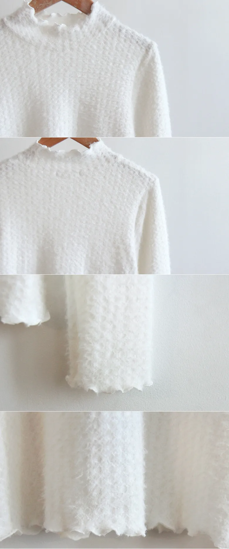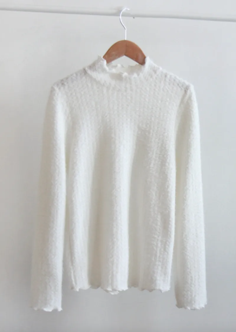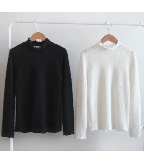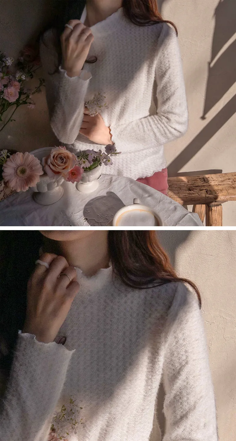 感性蓬鬆柔軟木耳邊彈性保暖高領上衣