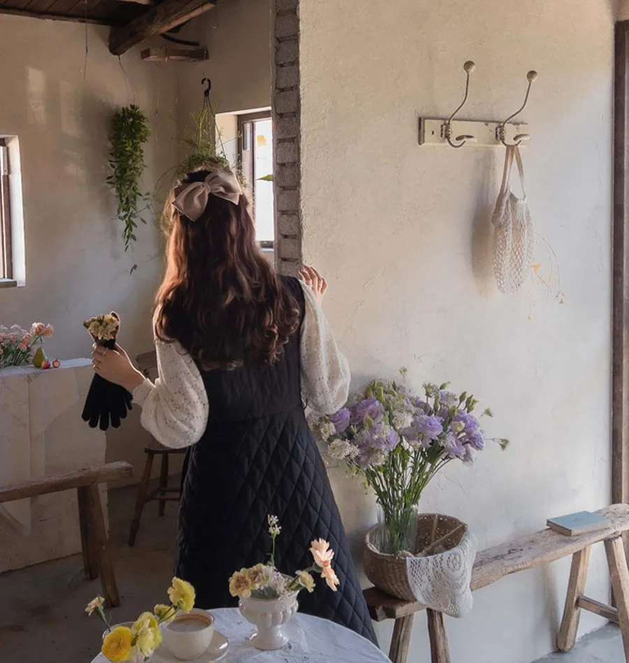 [舒適溫暖的拉絨感覺][半極性波領,帶有漂亮柔軟的拉絨花朵][最佳搭配單品!外套或開襟衫!